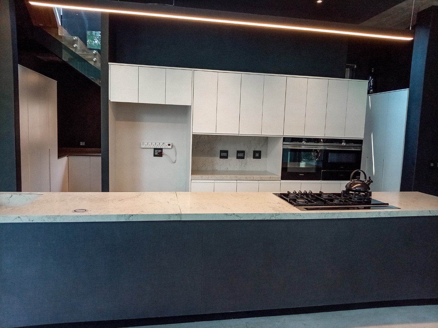 The stylish kitchen with island flows seamlessly into the dining and lounge areas, complete with an integrated fireplace — perfect for entertaining. Upstairs offers three generous bedrooms with full-wall built-in cupboards, air conditioning, and modern bathrooms with rain showers.