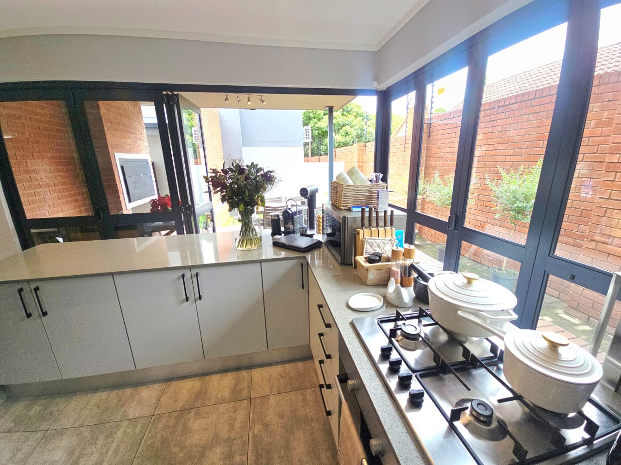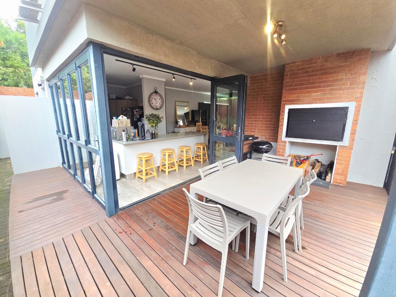Beautiful entertainment space with built-in braai, undercover patio and stack doors: perfect for indoor-outdoor living