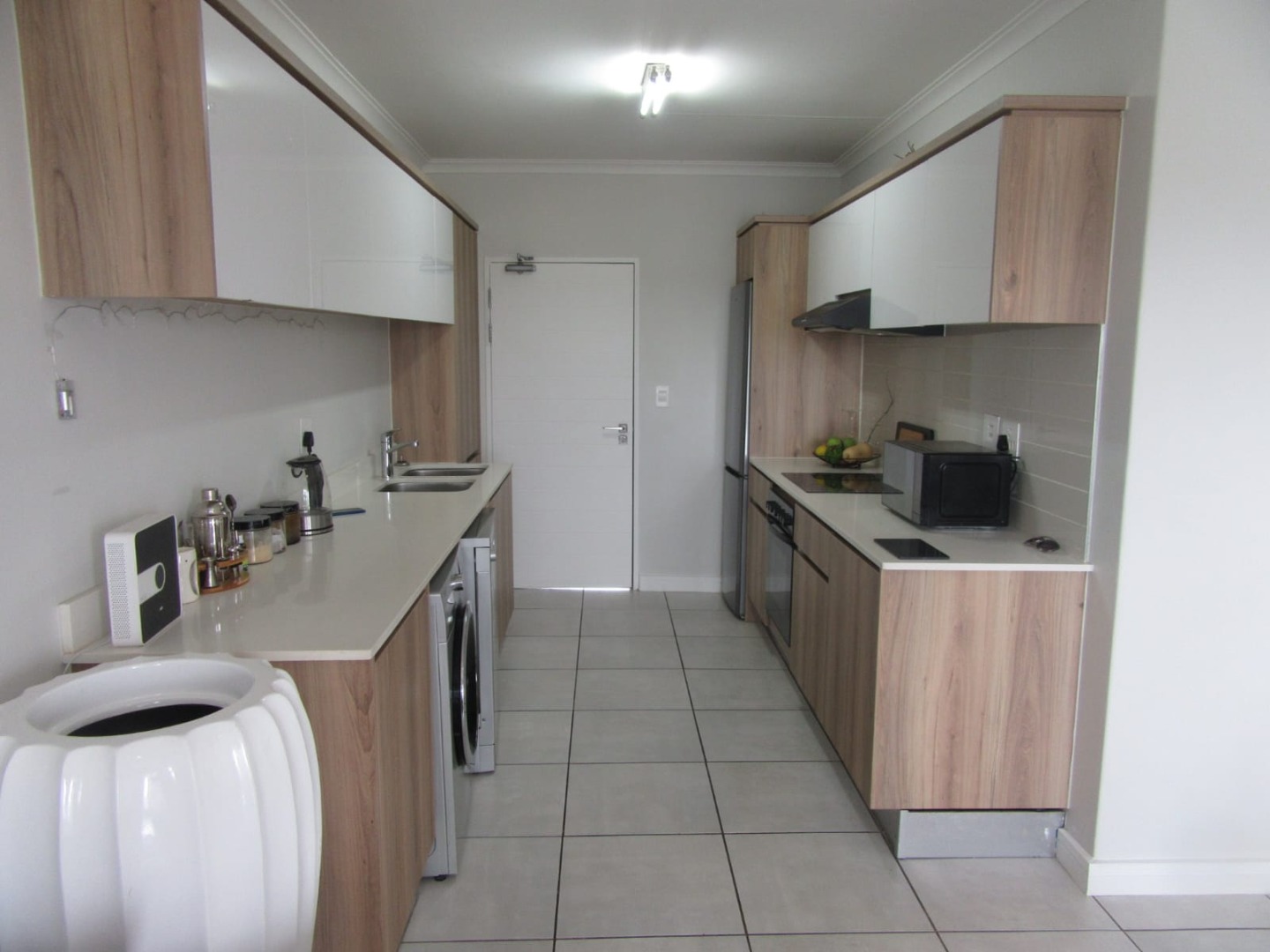 Modern open-plan kitchen with high-end appliances: fridge,washing machine, and dishwasher
