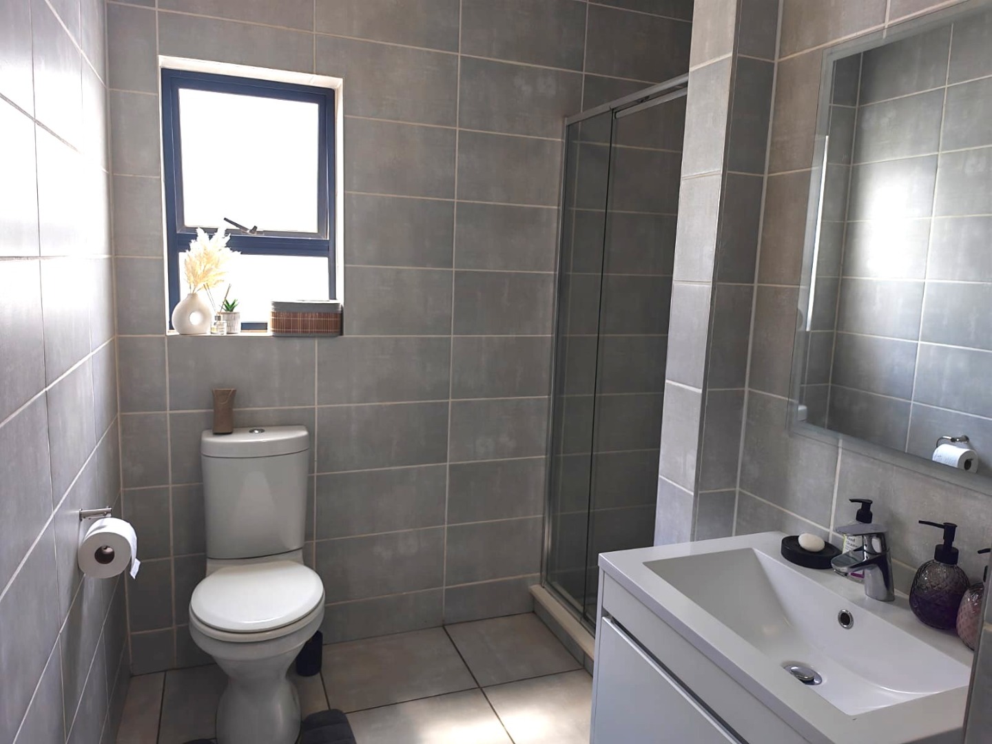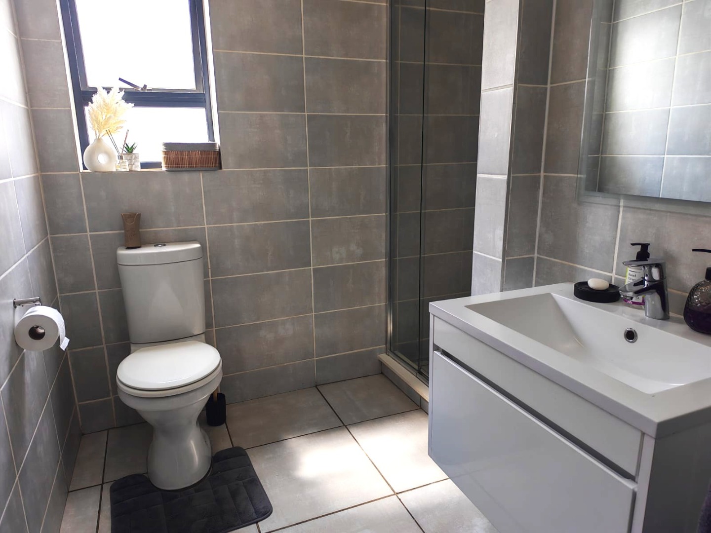 1 spacious bedroom with a separate bathroom