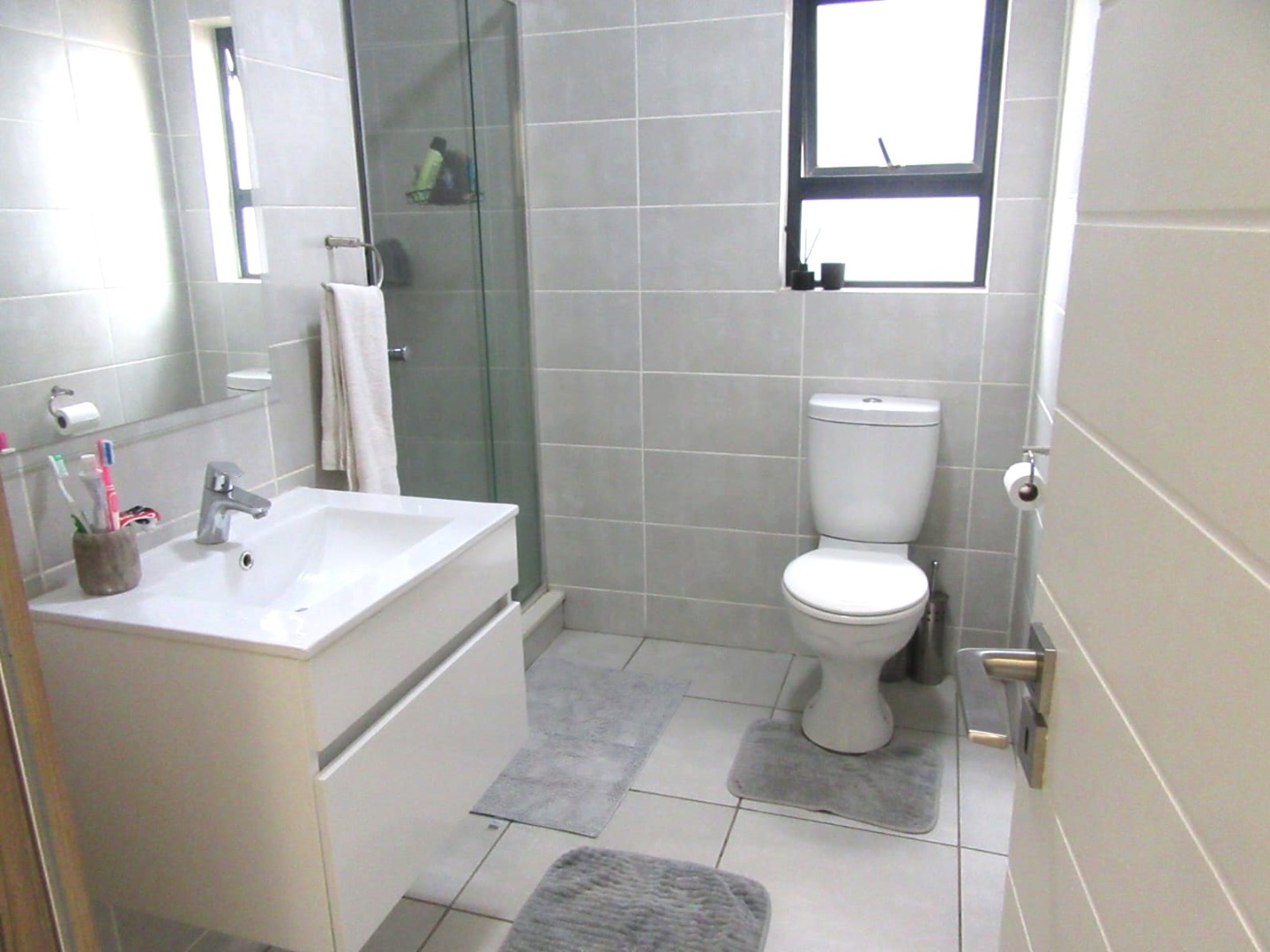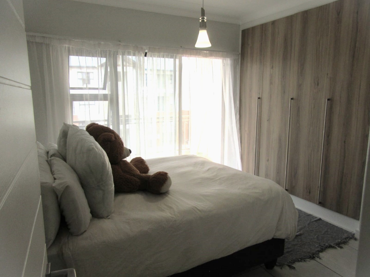 1spacious bedroom with separate bathroom