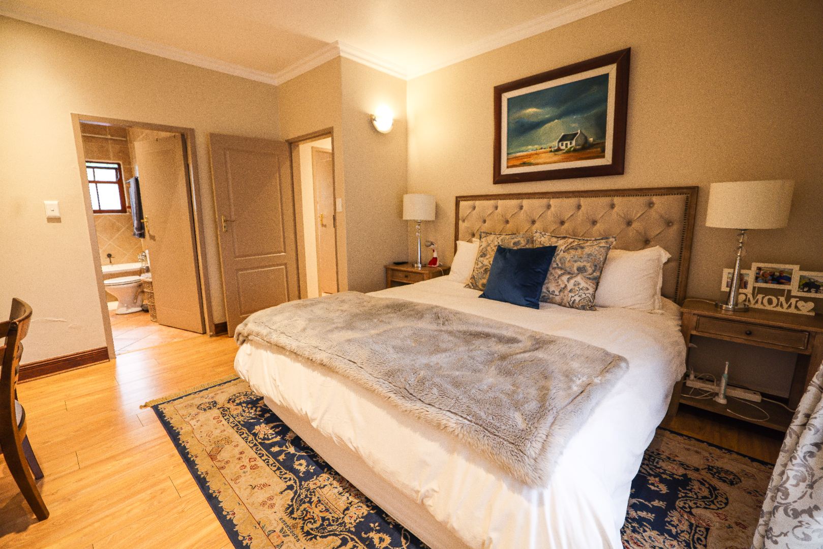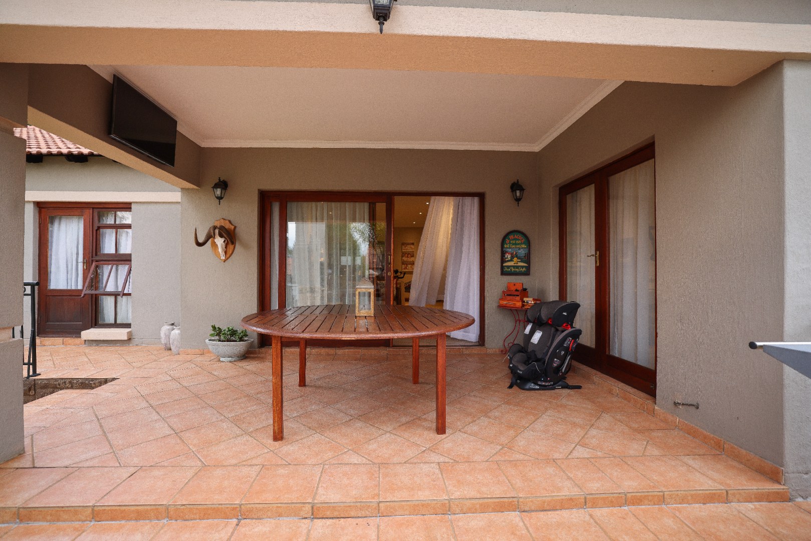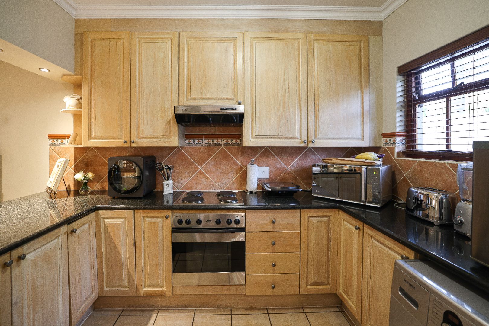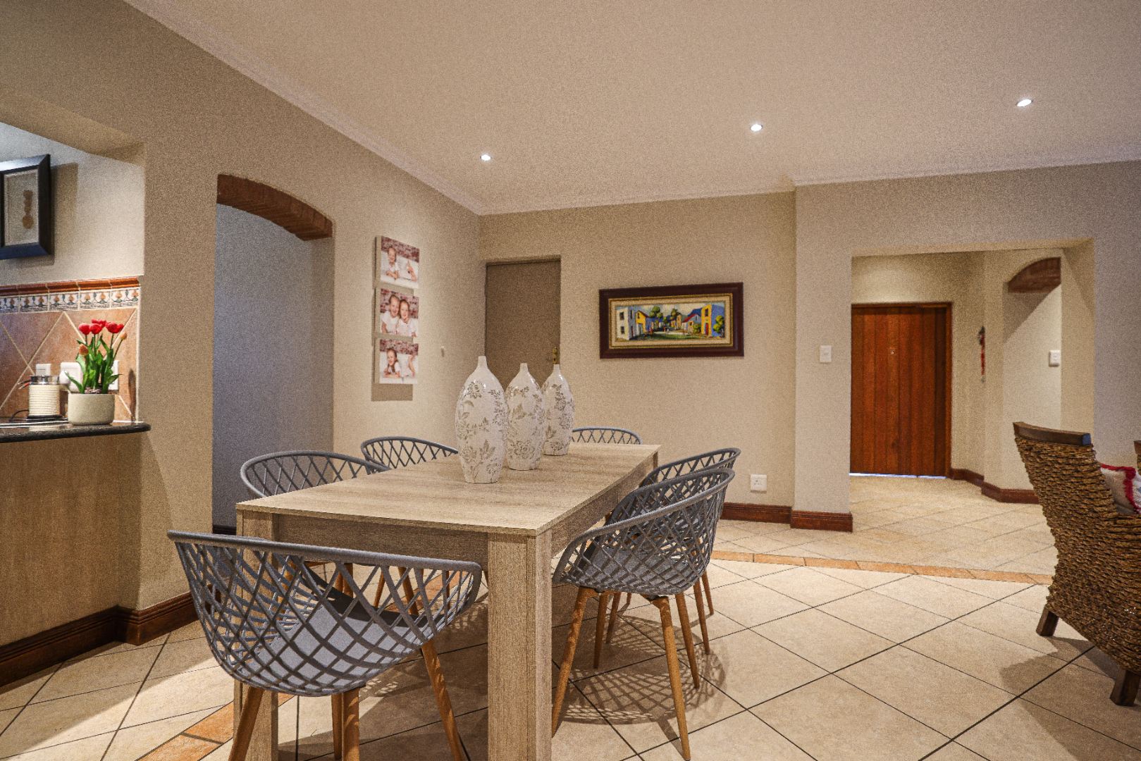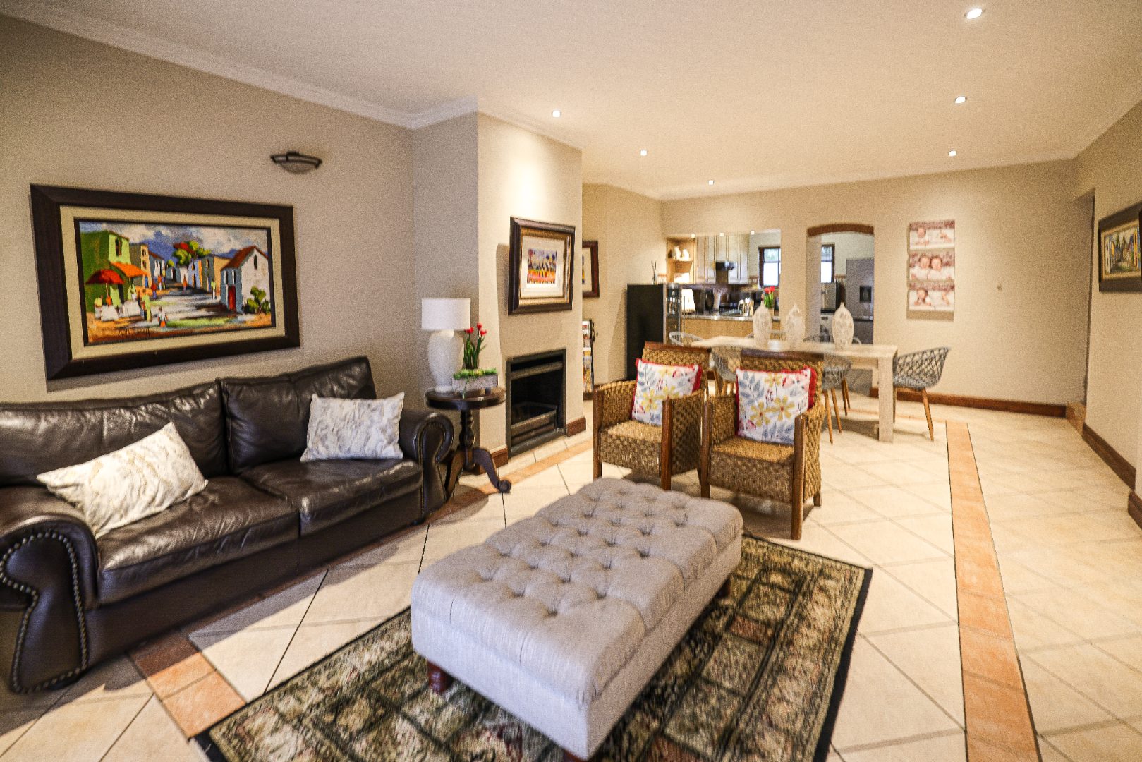 This elegant home in pristine condition features 4 bedrooms, 3 bathrooms, spacious living area, covered patio with built-in-braai, large garden.