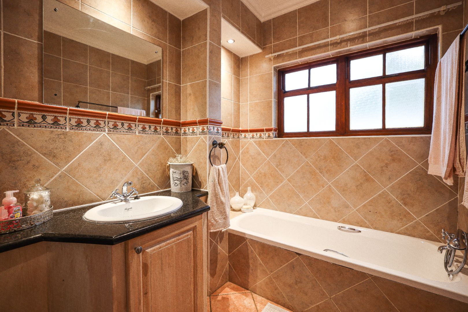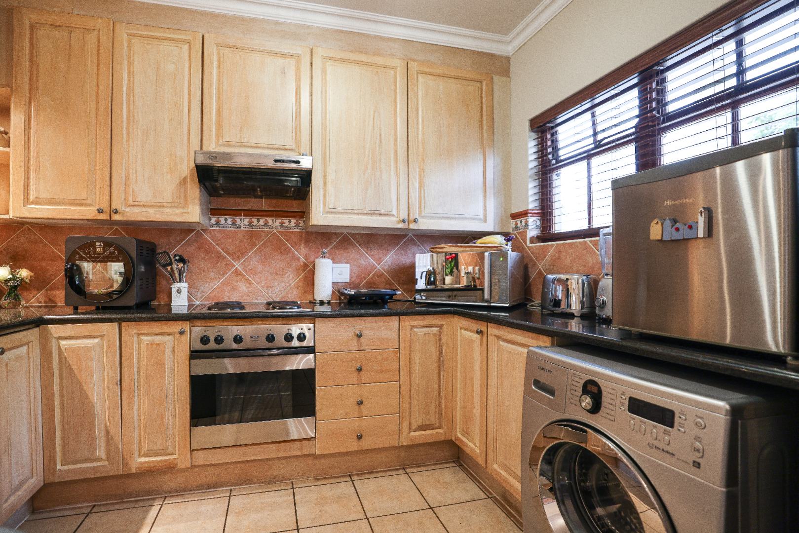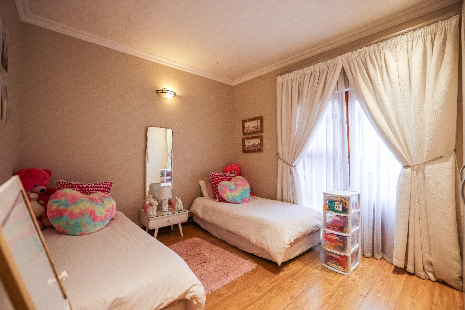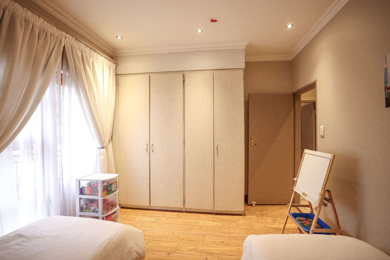 This elegant home in pristine condition features 4 bedrooms, 3 bathrooms, spacious living area, covered patio with built-in-braai, large garden.