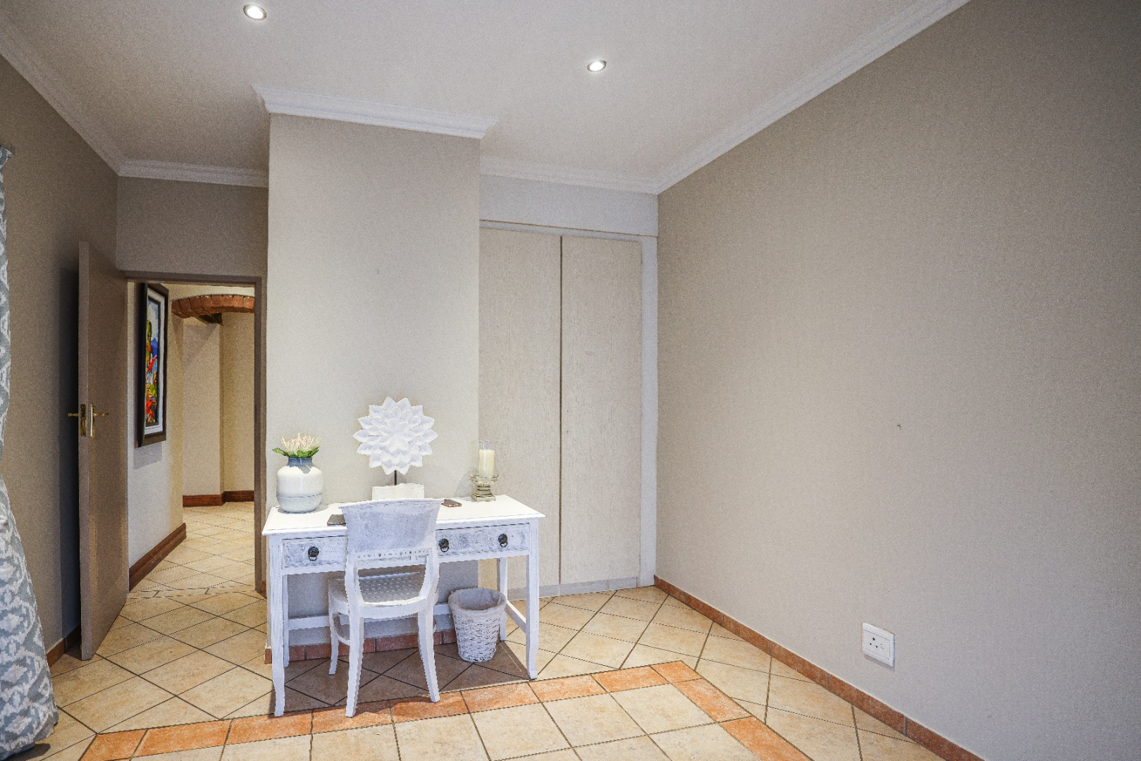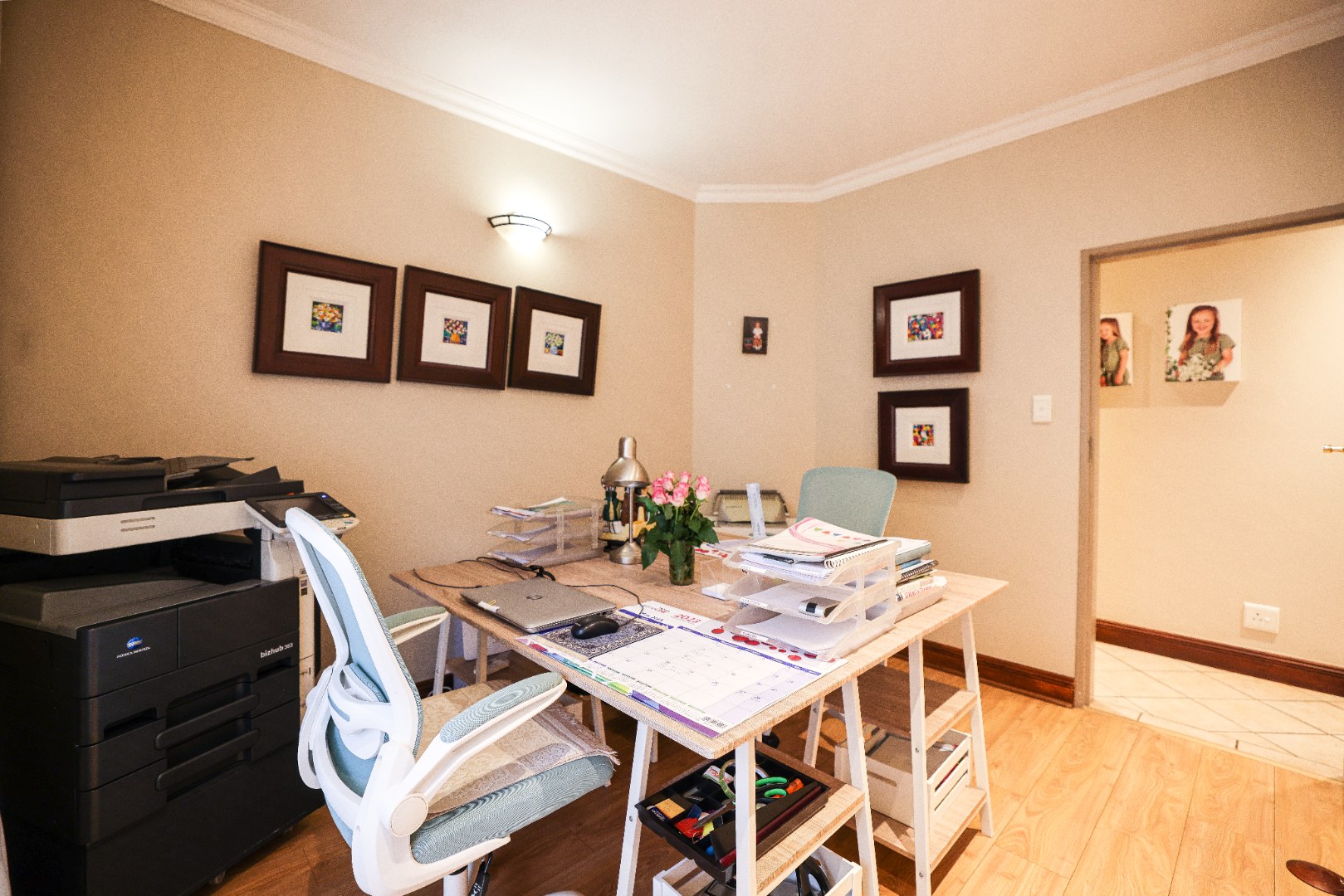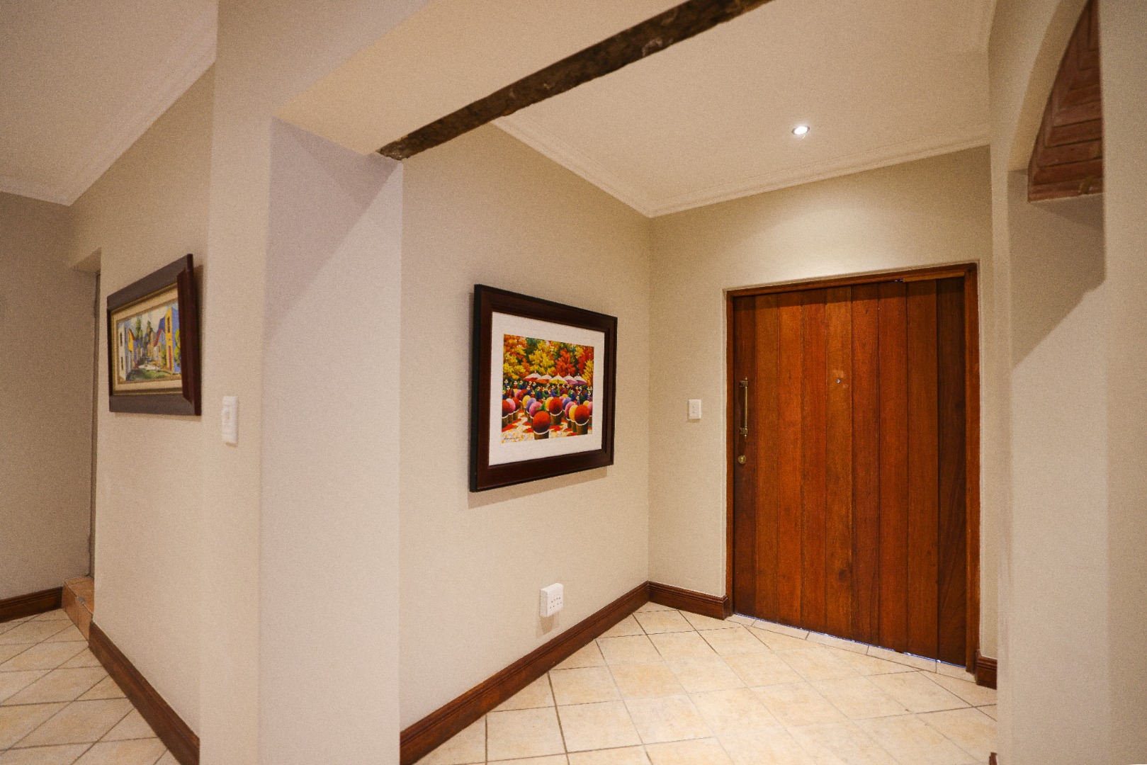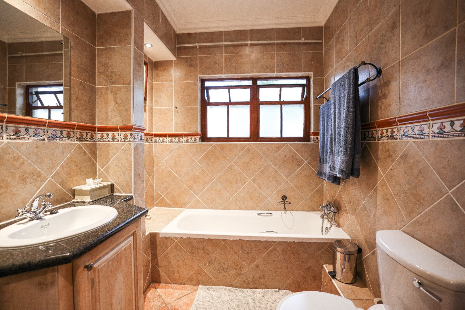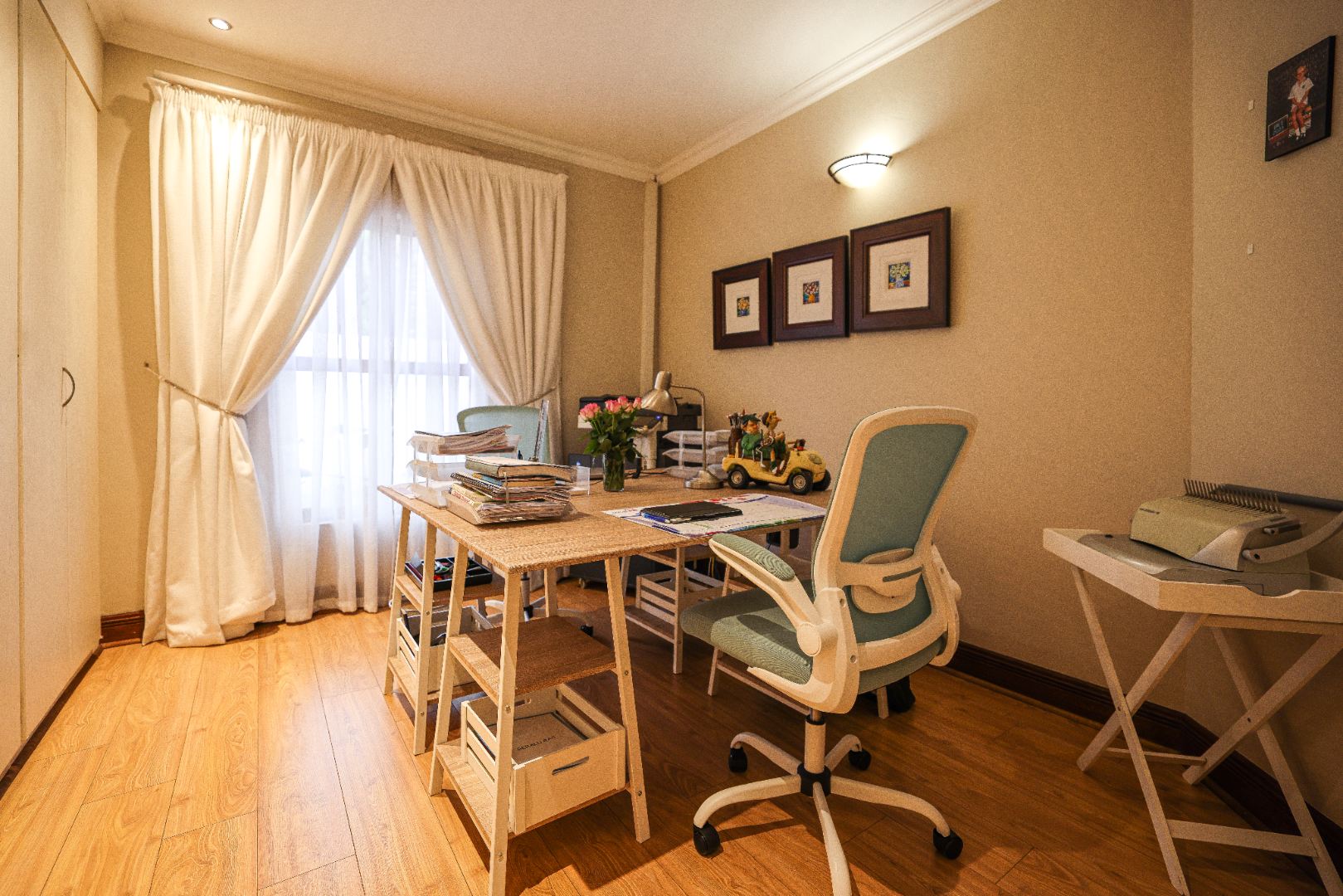 This elegant home in pristine condition features 4 bedrooms, 3 bathrooms, spacious living area, covered patio with built-in-braai, large garden.