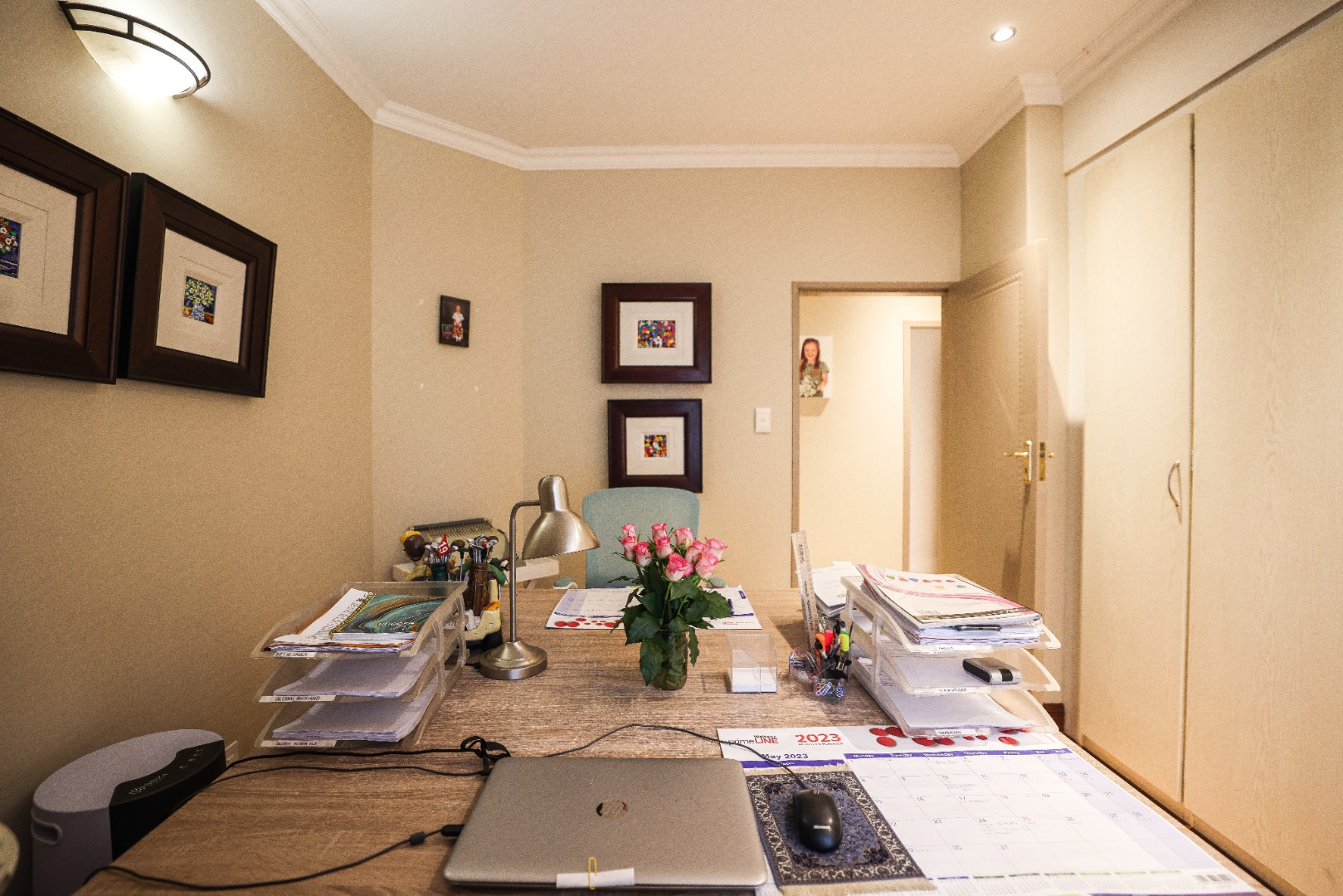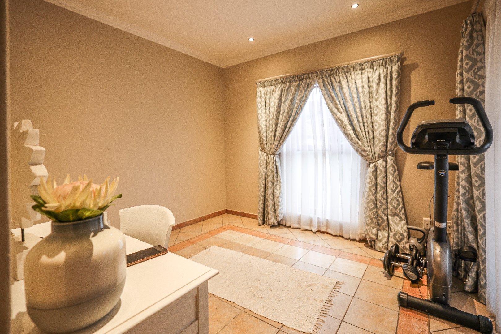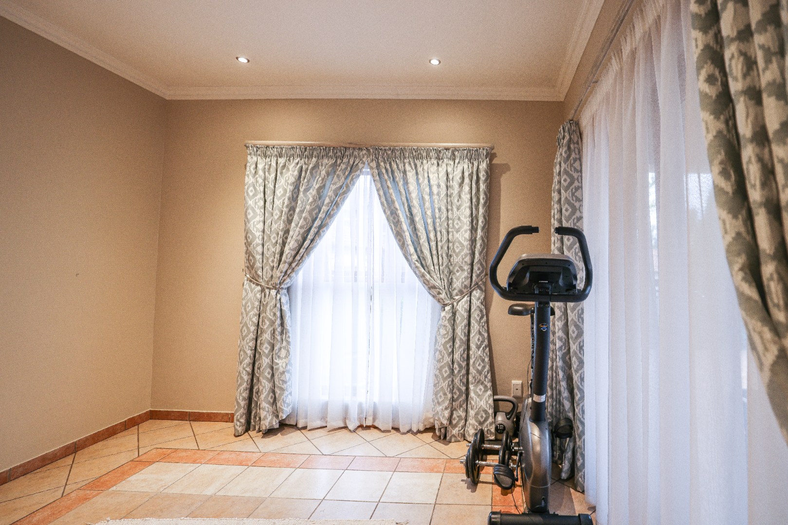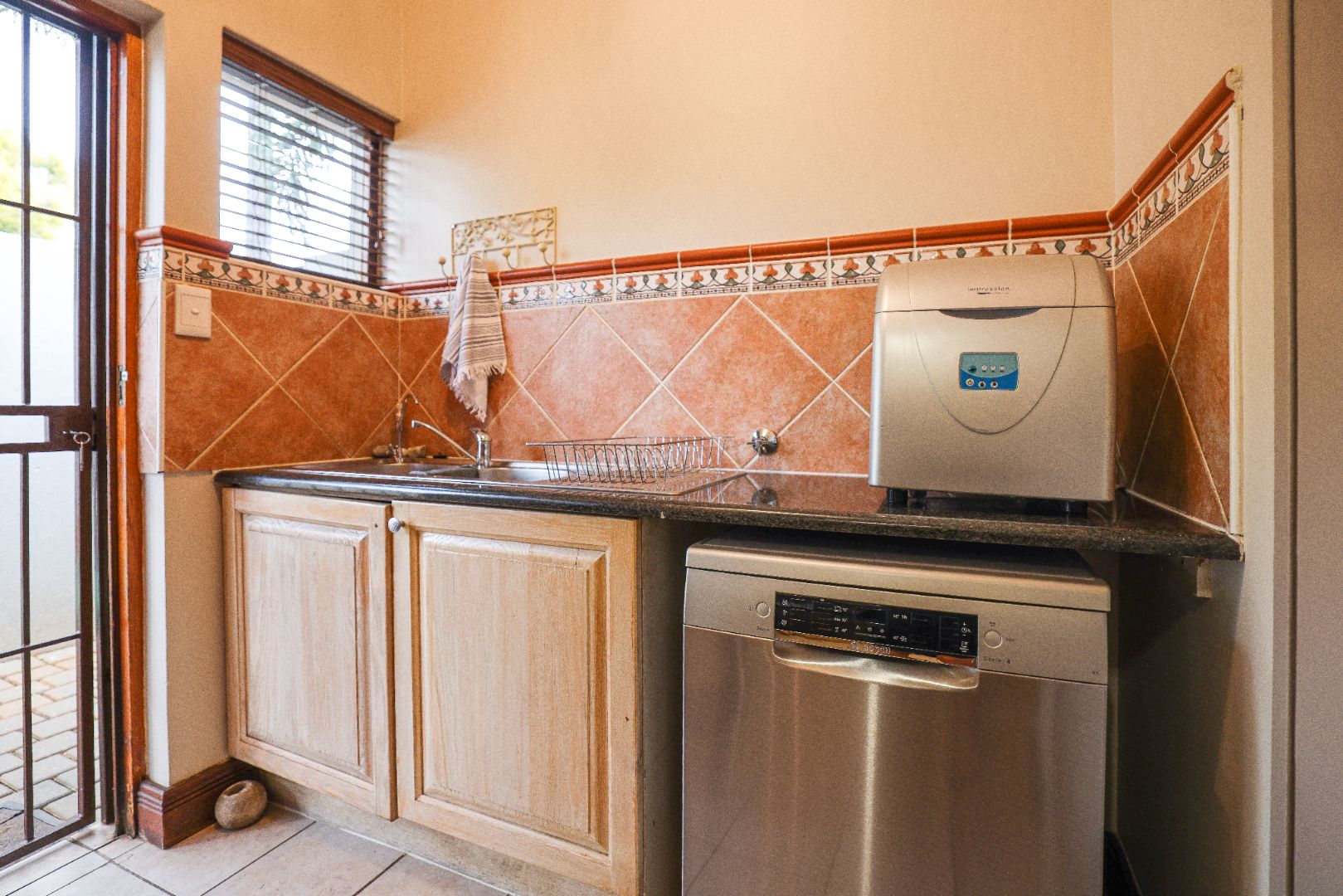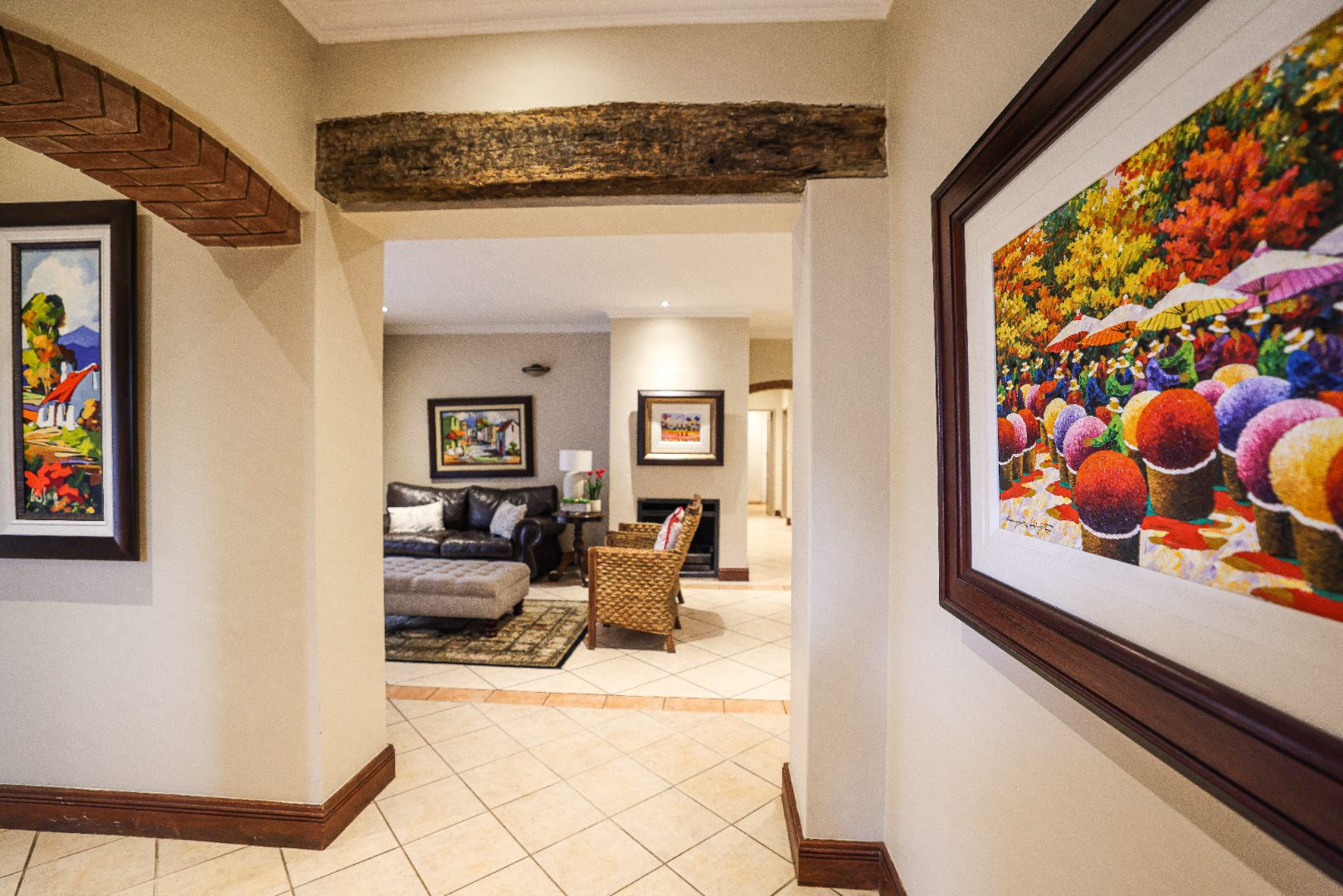 This elegant home in pristine condition features 4 bedrooms, 3 bathrooms, spacious living area, covered patio with built-in-braai, large garden.