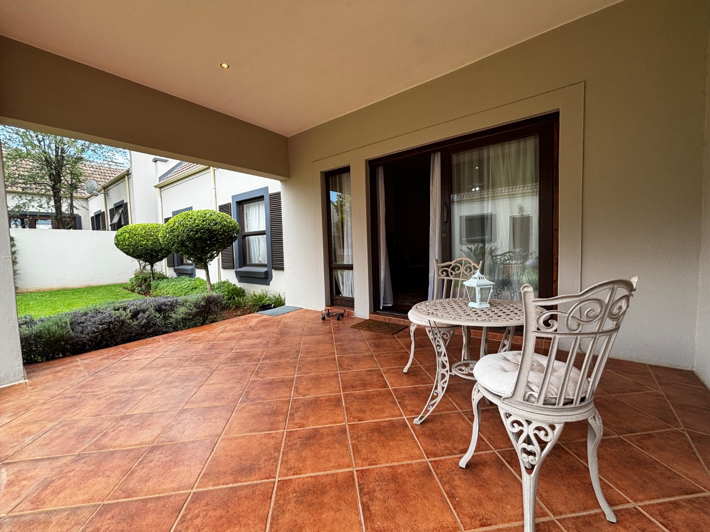 Step outside to a stunning patio overlooking a large, well-maintained garden and private courtyard—perfect for relaxing, entertaining guests, or enjoying outdoor living in a tranquil setting.