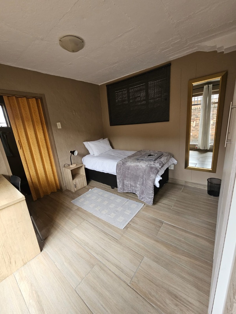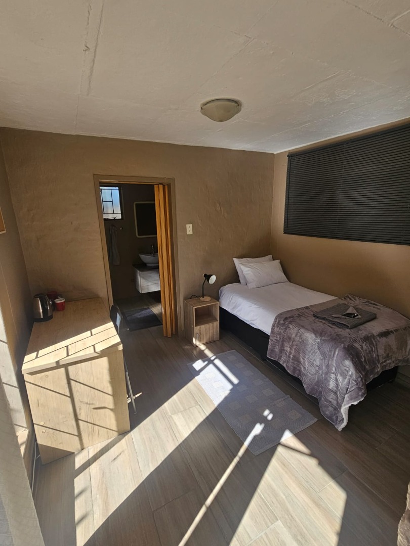 This cozy room comes equipped a single bed (linen included), built-in cupboards and desk and a private en-suite bathroom with a shower.