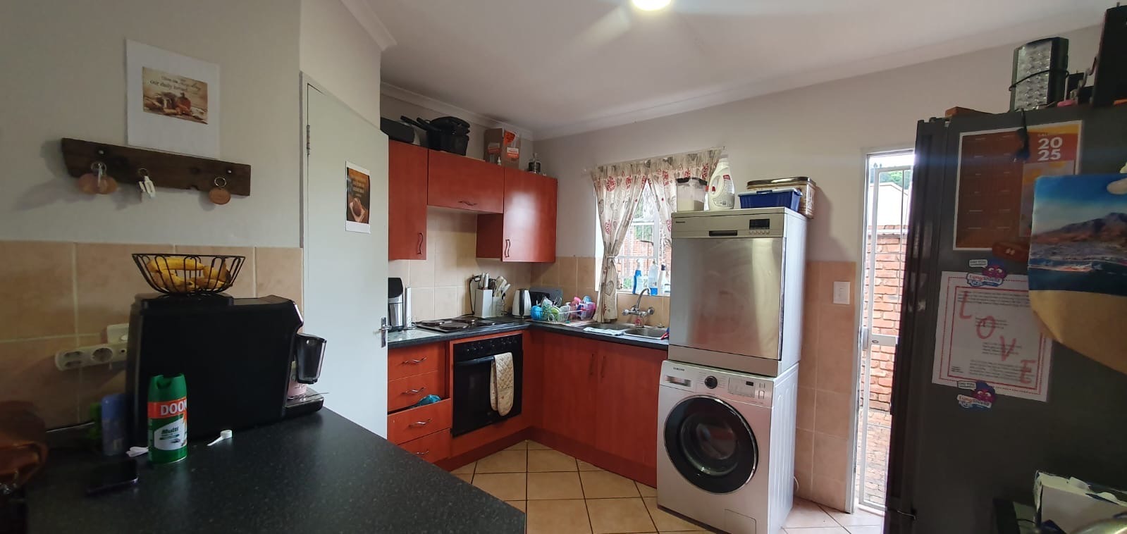 This inviting 110 sqm townhouse offers comfortable living within a secure estate in Elarduspark, Pretoria. Featuring two well-proportioned bedrooms, each with built-in wardrobes, and a single full bathroom equipped with both a shower cubicle and a bathtub, this home caters to practical needs. The open-plan living area, complete with tiled flooring, seamlessly connects to the kitchen, creating a spacious and functional environment. The kitchen is fitted with a built-in oven and hob, ample cabinetry, and provides dedicated space for a washing machine and dishwasher, ensuring convenience. Large sliding doors in the lounge area lead to a private garden, offering a pleasant outdoor space and natural light. The property also includes a dedicated laundry area. Designed for a secure and convenient lifestyle, this pet-friendly residence is ideal for professionals or small families. The complex benefits from robust security features including an access gate, security post, and electric fencing, providing peace of mind. The unit itself has a security gate for added safety. Fibre connectivity is available, supporting modern communication needs. Located in the desirable suburb of Elarduspark, residents can enjoy a scenic view and the benefits of a well-maintained community. The property includes a single garage and an additional parking space, with paved driveways throughout the estate. Key Features: * 2 Bedrooms with built-in wardrobes * 1 Bathroom with shower and bath * Open-plan lounge and kitchen * Built-in oven and hob * Dedicated laundry area * Private garden access via sliding doors * 1 Garage and 1 additional parking * Pet-friendly * Fibre ready * Secure estate living with access control