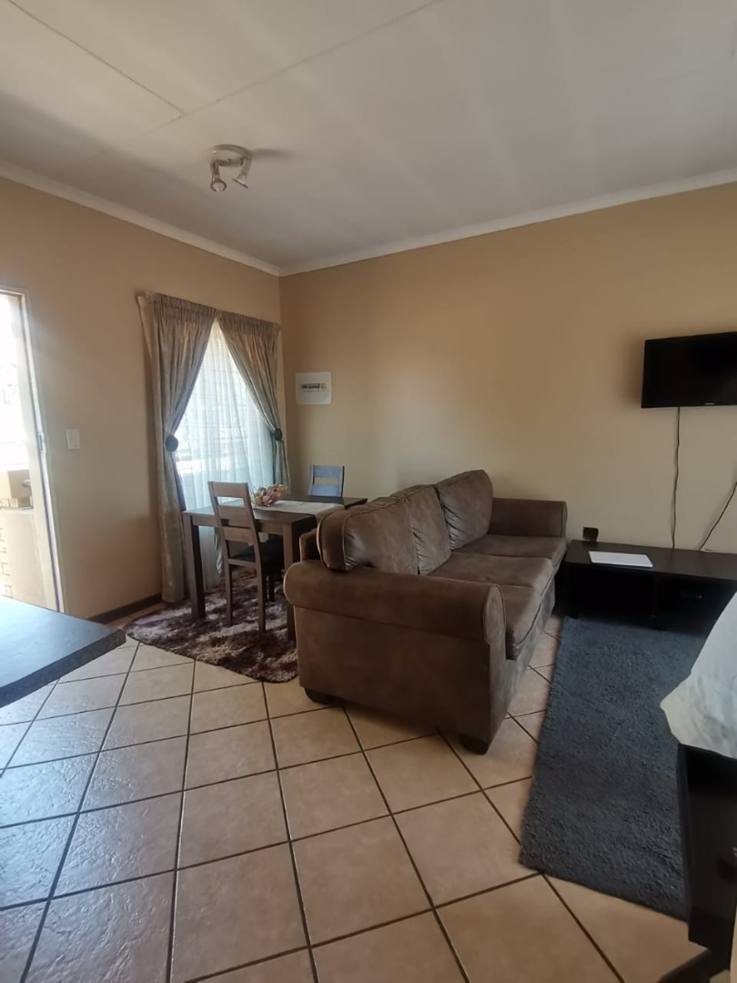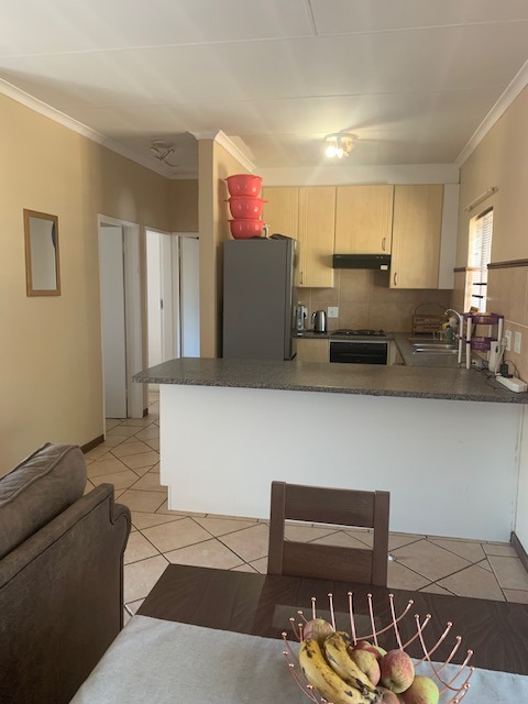 Discover this inviting 78 sqm apartment, perfectly situated within a sought-after security estate in Equestria, Pretoria. This well-appointed unit features two comfortable bedrooms and a single bathroom, designed for modern living. The open-plan layout seamlessly integrates the living area, family TV room, and a functional kitchen, creating a spacious and connected environment. The kitchen is equipped with a , built-in oven, and a convenient breakfast bar, complemented by ample cabinetry and durable tiled flooring throughout.