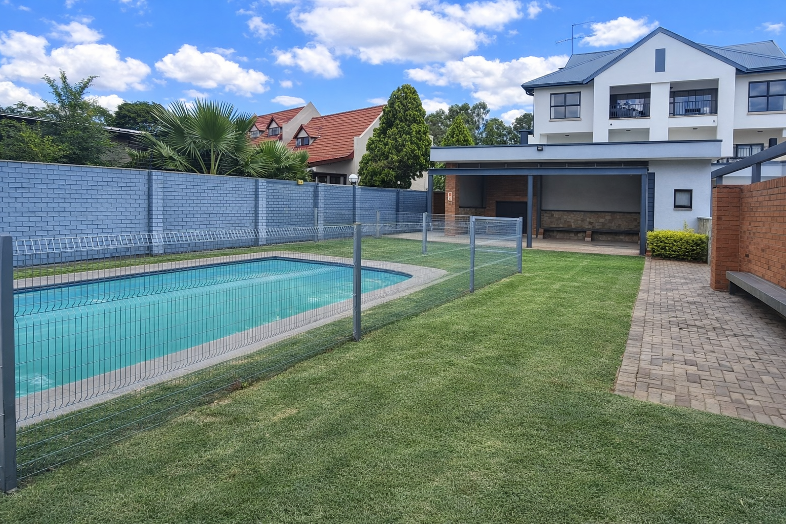 Security is a priority, with features such as an access gate, electric fencing, a security gate, and 24-hour security within the complex, ensuring peace of mind. Practical elements include a gas geyser and two covered parking bays. This unfurnished unit is pet-friendly, making it suitable for a variety of tenants seeking a secure and convenient lifestyle in Pretoria.