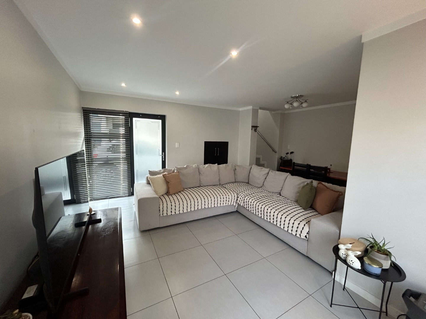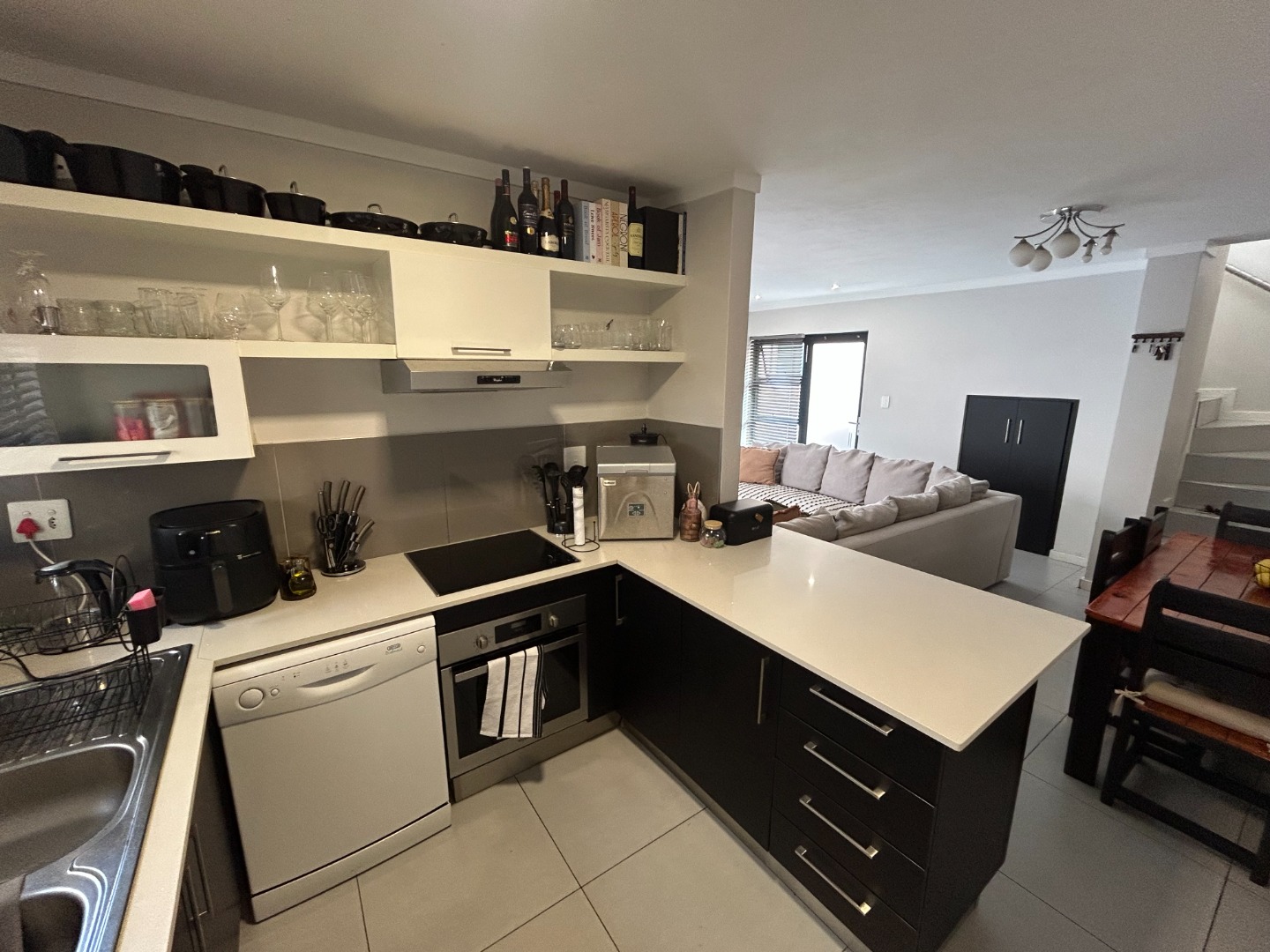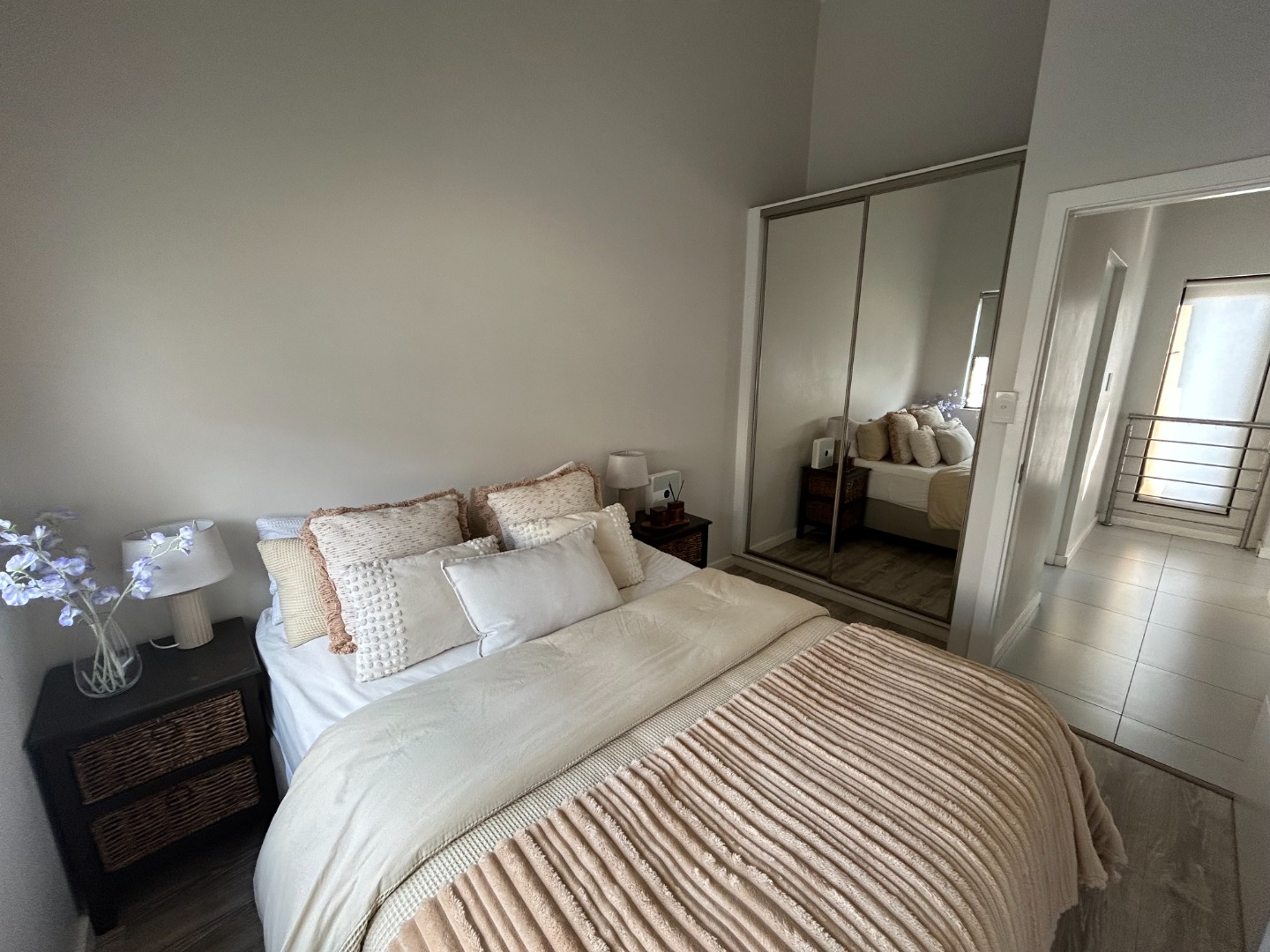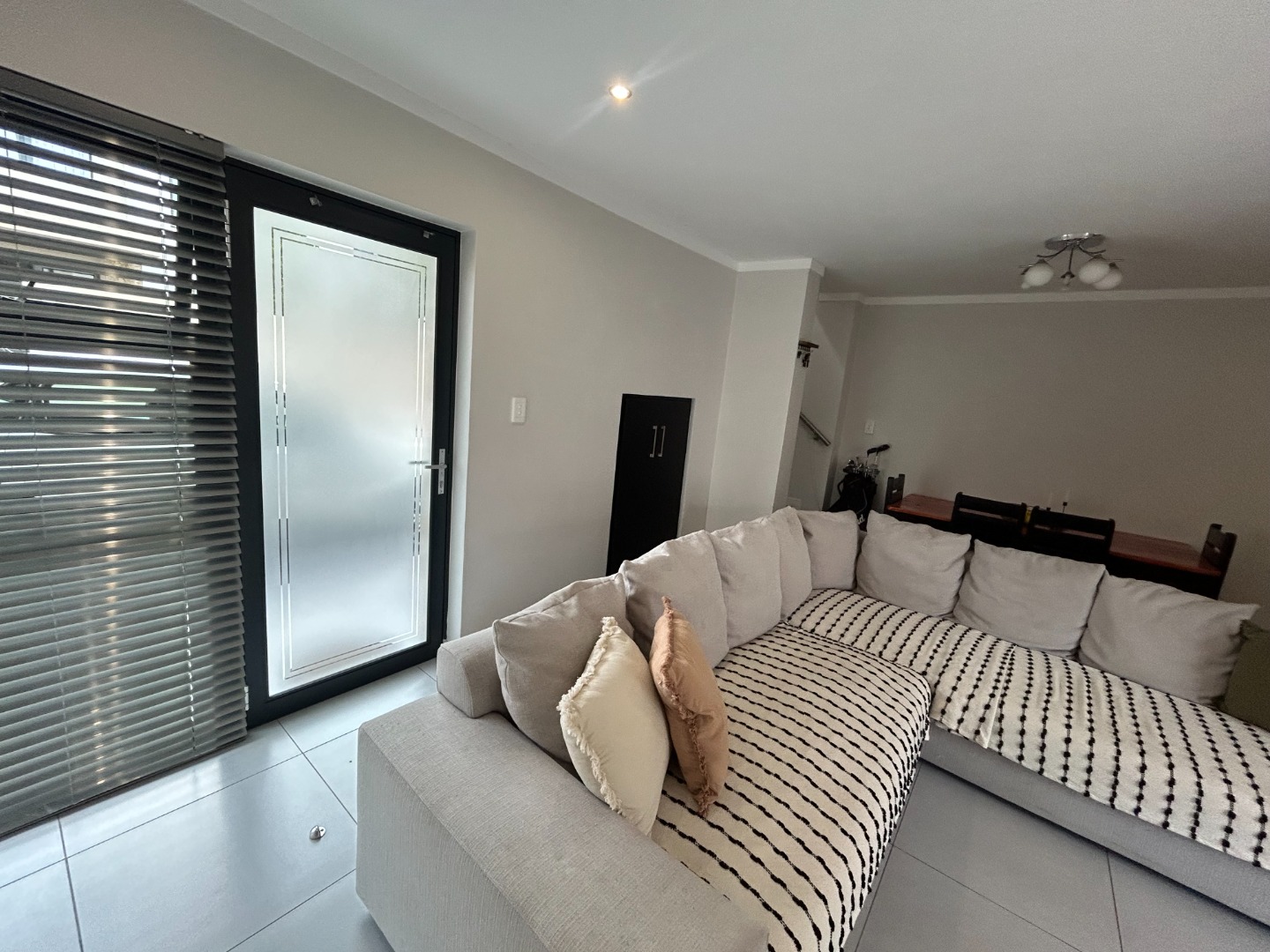 This modern and well-maintained 2 bedroom, 2 bathroom townhouse is ideally located in the sought-after suburb of Equestria. The property offers a spacious open-plan layout, combining the lounge, dining area and kitchen, creating a comfortable and inviting living space. The kitchen features modern finishes, an electric stove and oven, and space for one appliance, with additional space for a second machine conveniently located under the staircase. The lounge leads out to a well-maintained private garden, perfect for relaxing or entertaining.