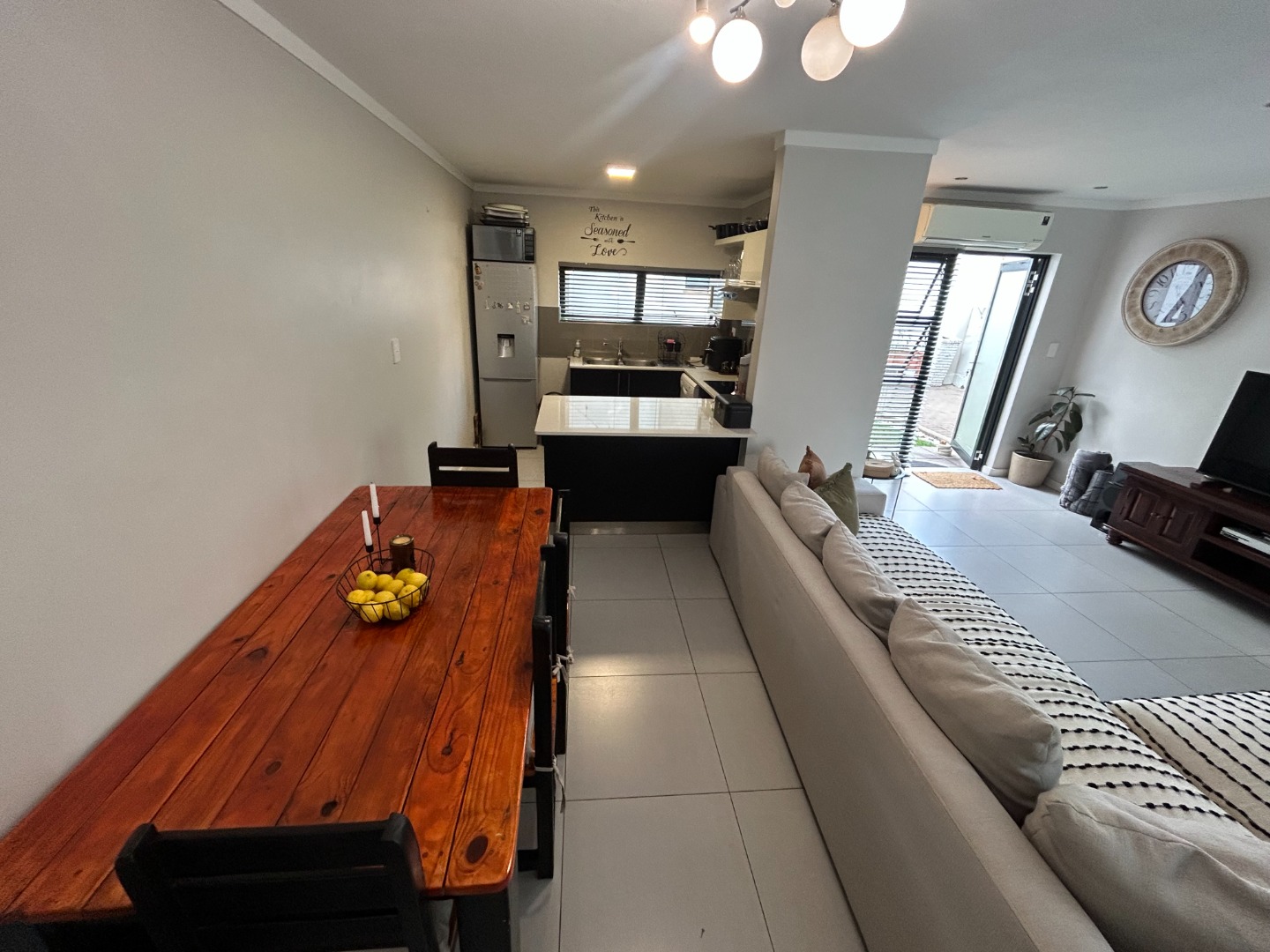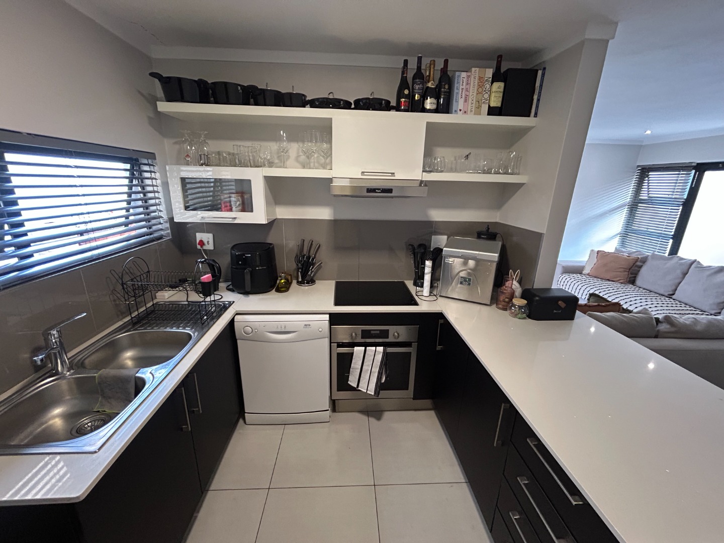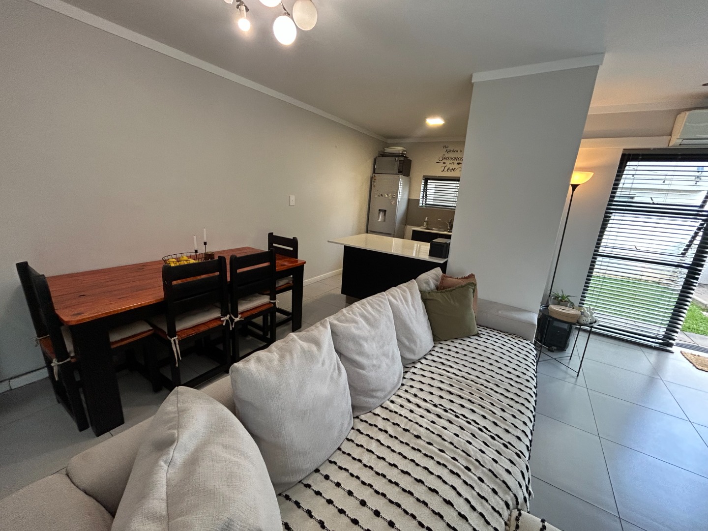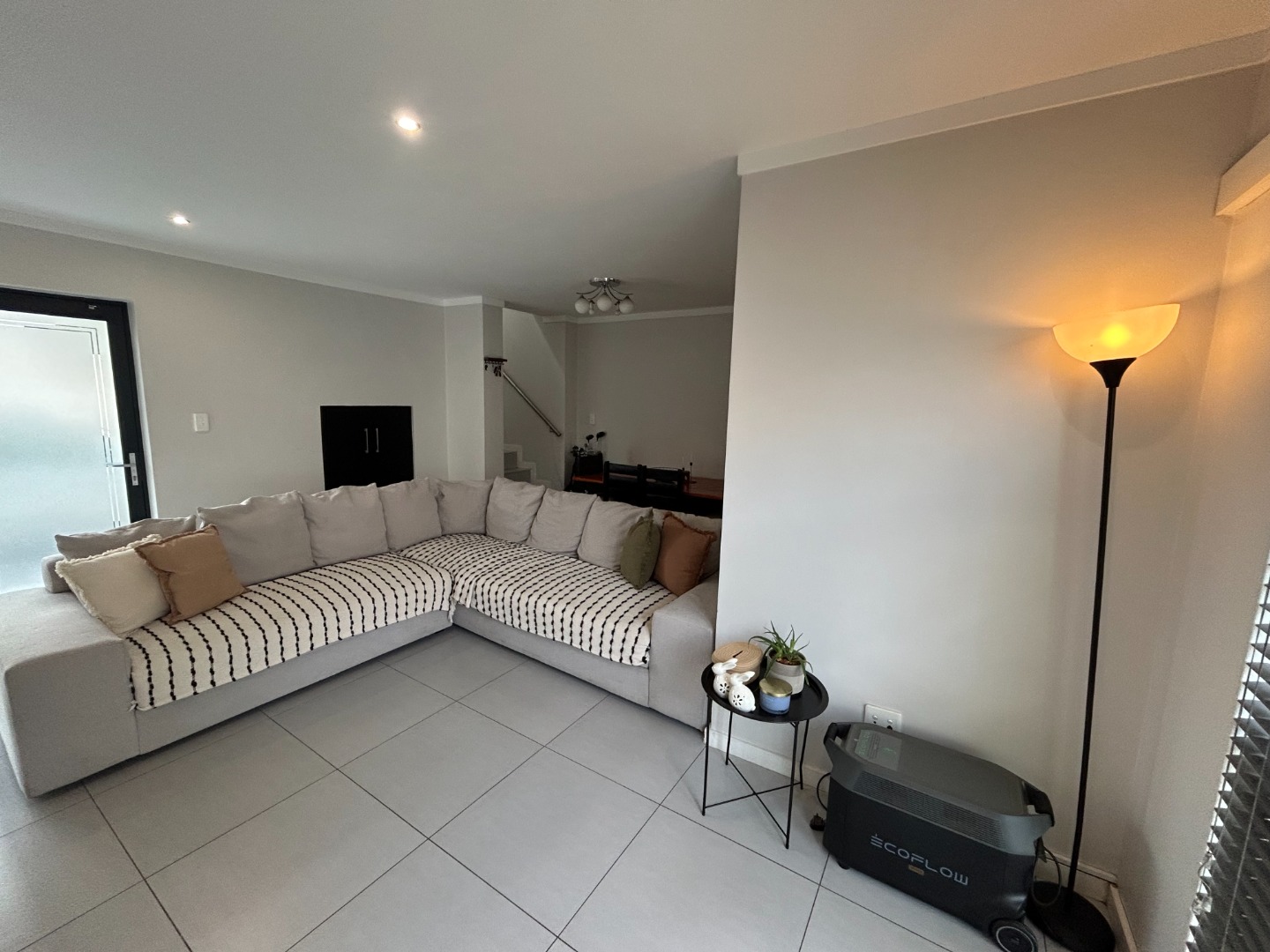 This modern and well-maintained 2 bedroom, 2 bathroom townhouse is ideally located in the sought-after suburb of Equestria. The property offers a spacious open-plan layout, combining the lounge, dining area and kitchen, creating a comfortable and inviting living space. The kitchen features modern finishes, an electric stove and oven, and space for one appliance, with additional space for a second machine conveniently located under the staircase. The lounge leads out to a well-maintained private garden, perfect for relaxing or entertaining.