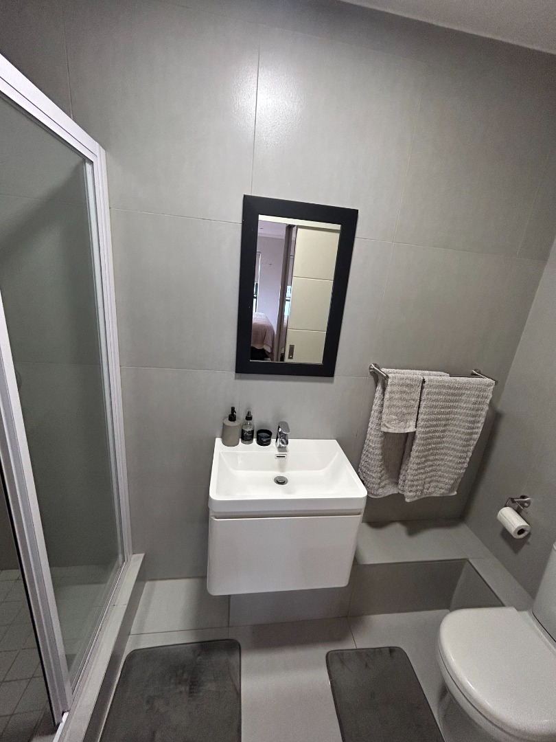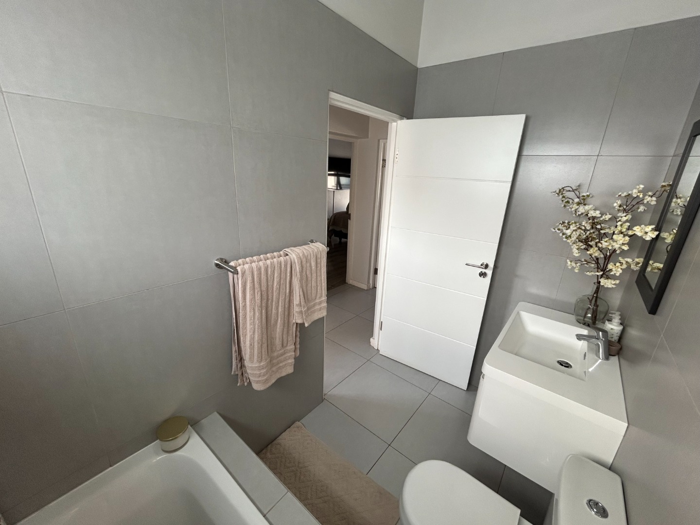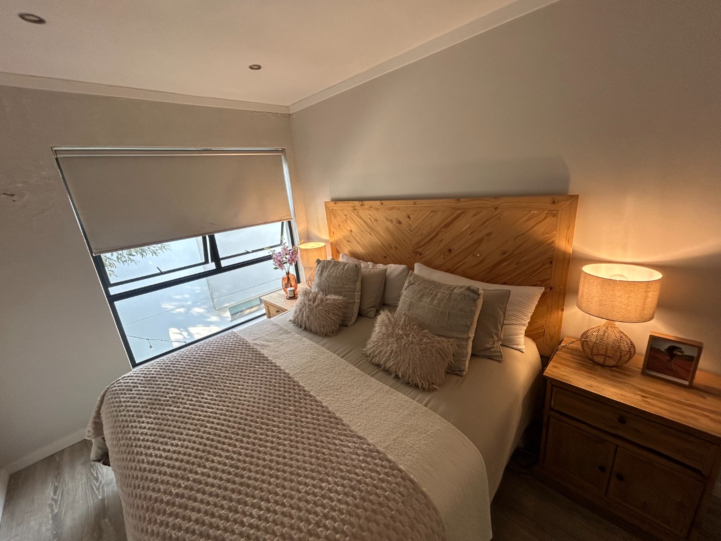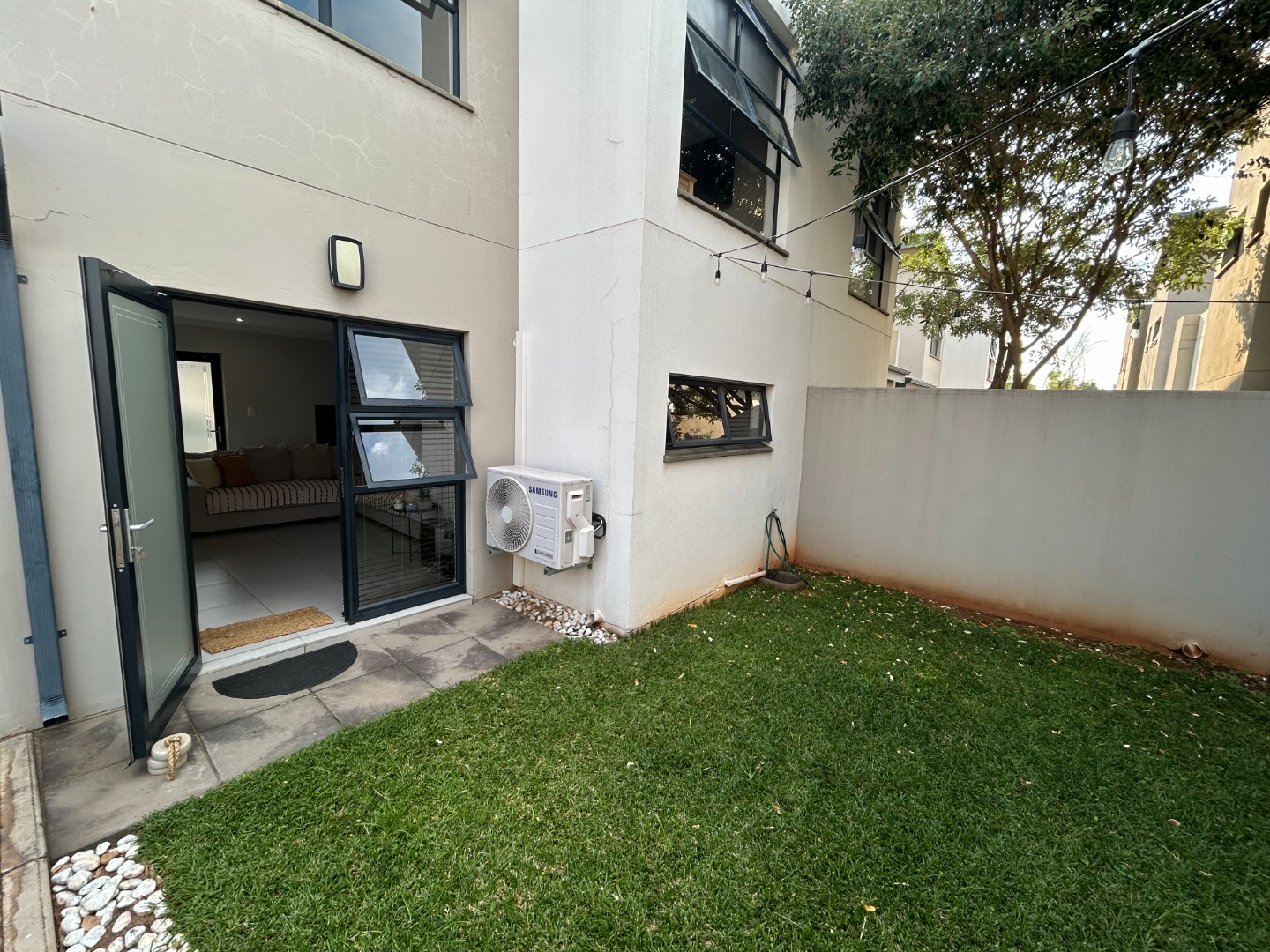 This modern and well-maintained 2 bedroom, 2 bathroom townhouse is ideally located in the sought-after suburb of Equestria. The property offers a spacious open-plan layout, combining the lounge, dining area and kitchen, creating a comfortable and inviting living space. The kitchen features modern finishes, an electric stove and oven, and space for one appliance, with additional space for a second machine conveniently located under the staircase. The lounge leads out to a well-maintained private garden, perfect for relaxing or entertaining.