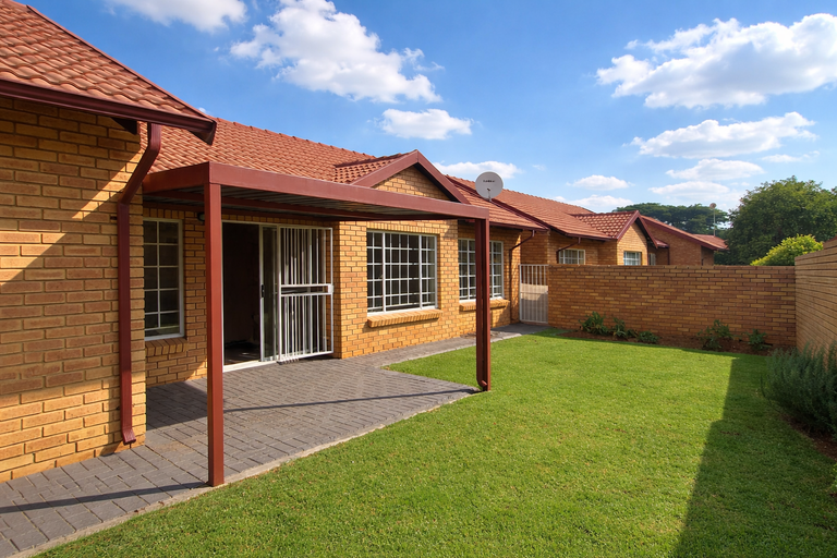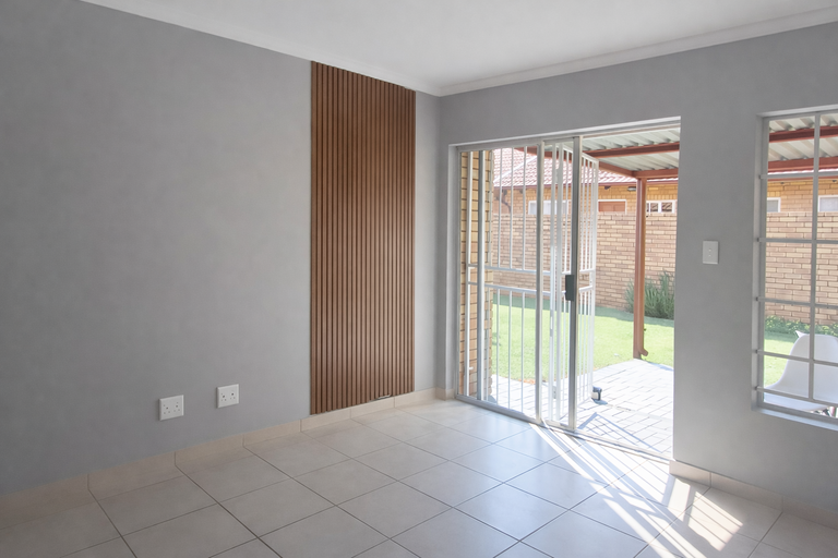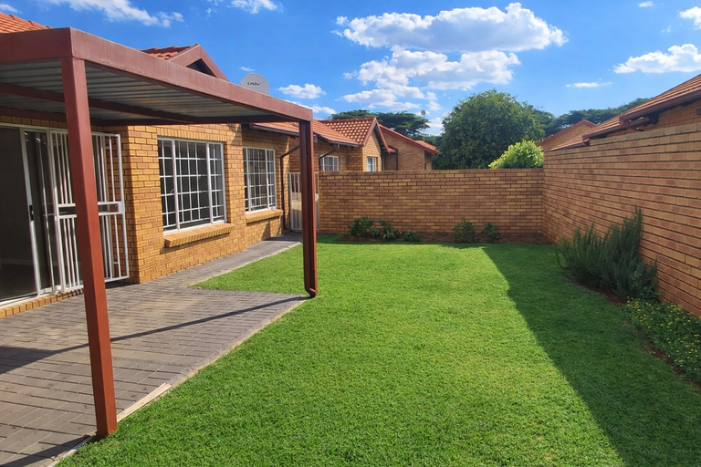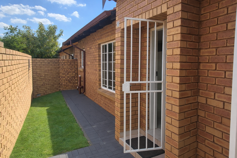 Situated within a secure complex, residents benefit from enhanced peace of mind. The property features 24-hour security, a manned security post, an access gate, electric fencing, and burglar bars. Outside, a private garden offers a pleasant outdoor space. This pet-friendly residence is perfectly positioned in Equestria, providing easy access to local amenities and transport links.