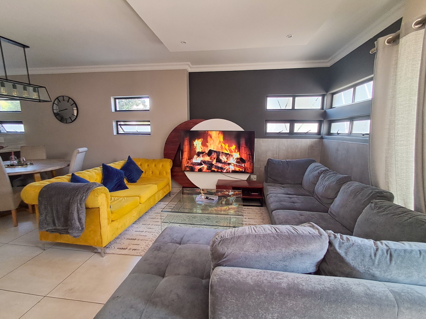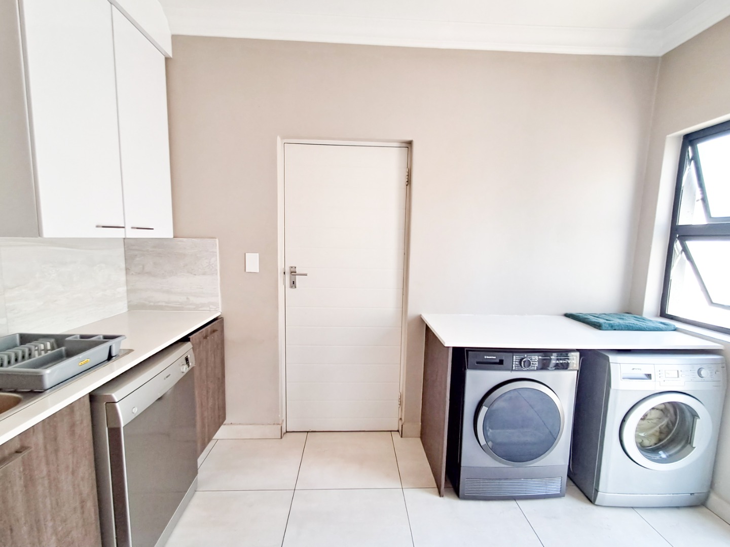 Discover modern living in this stylish 3-bedroom, 3-bathroom residence available for rent within a secure estate in Equestria, Pretoria. Spanning 182 square metres, this contemporary two-story home offers a well-designed layout perfect for comfortable family life or professional couples. The heart of the home features an open-plan living and dining area, complemented by a sleek, modern kitchen. This culinary space boasts two-tone cabinetry, white countertops.