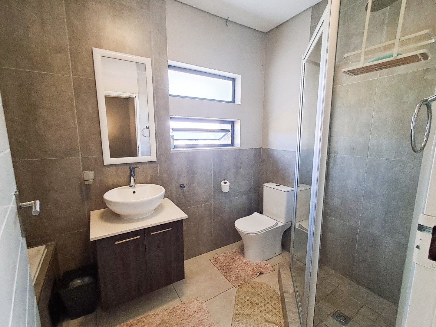 Situated in a secure estate, residents benefit from a security post, access gate, and a clubhouse, fostering a safe and engaging community environment. The property's location in a cul-de-sac further enhances peace and privacy. Equestria, a vibrant metropolitan suburb in Pretoria, South Africa, offers excellent connectivity and access to local amenities, making it a highly desirable rental location.