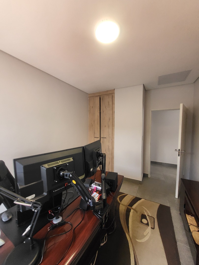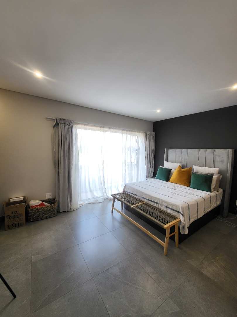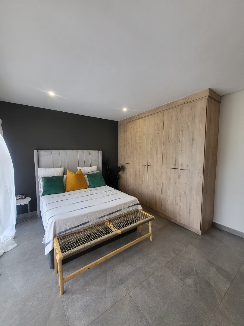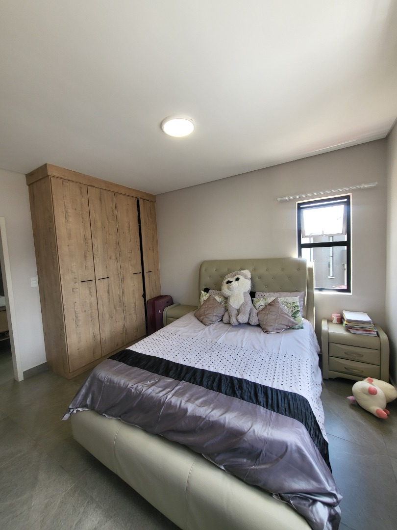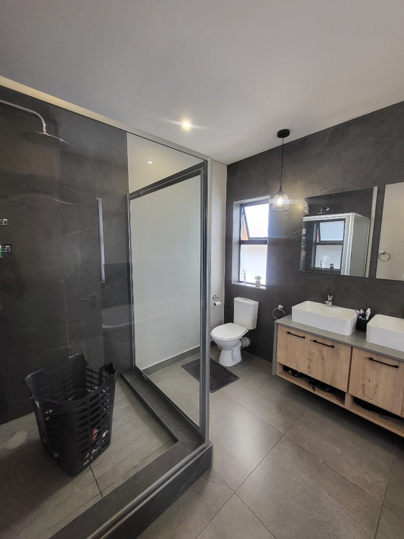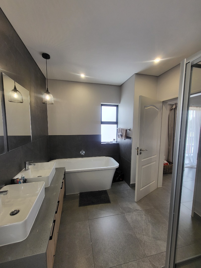 Upstairs, the home offers four well-proportioned bedrooms, each fitted with built-in cupboards. Two bedrooms enjoy en-suite bathrooms, while the remaining two are serviced by a stylish full family bathroom. The main bedroom opens onto a private balcony, creating a peaceful retreat. A dedicated study nook enhances the home’s practicality, making it well-suited for remote work or study.