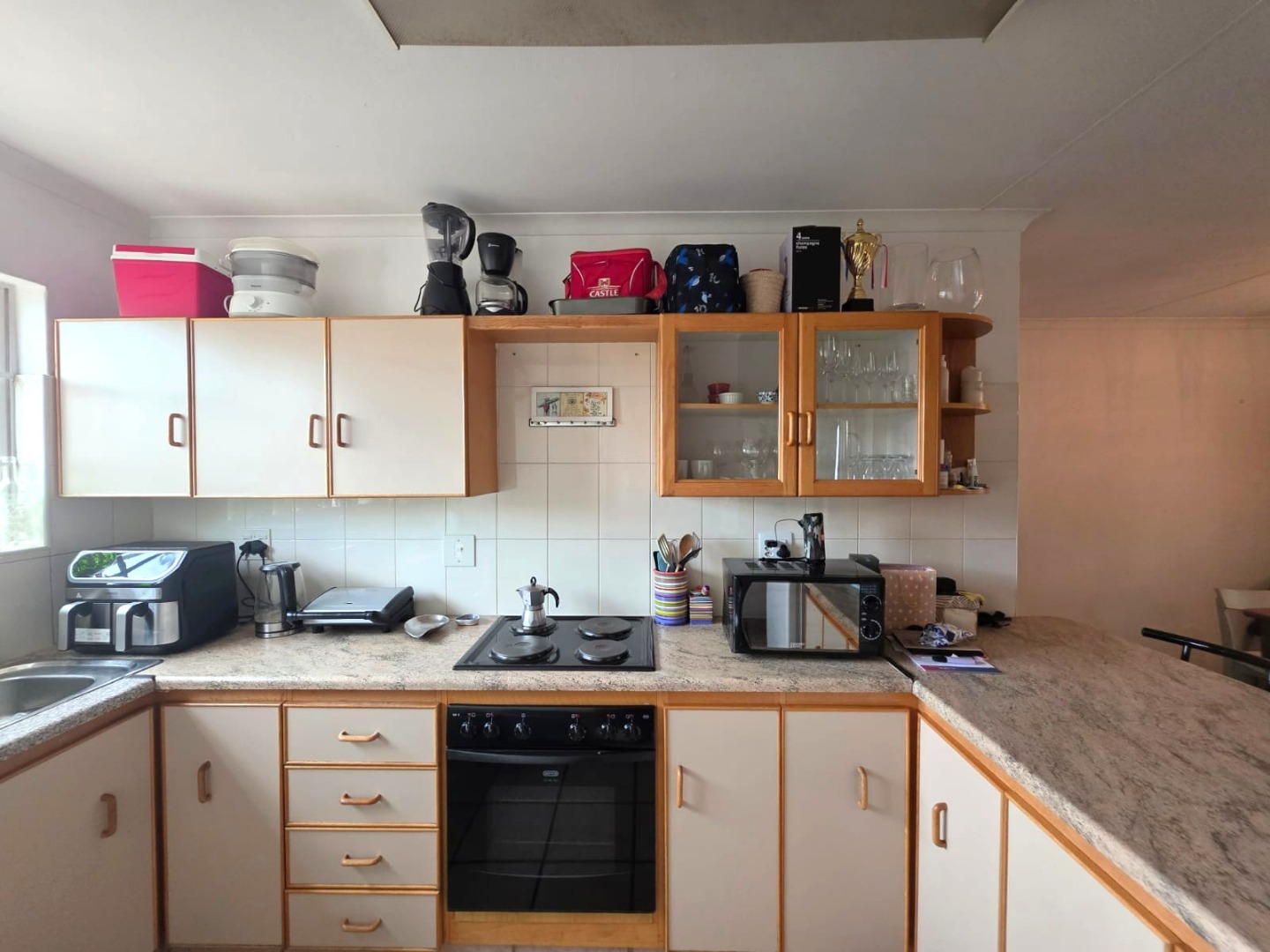 The kitchen is fitted with practical Formica countertops and offers space for all your essential appliances, making everyday living both functional and easy.