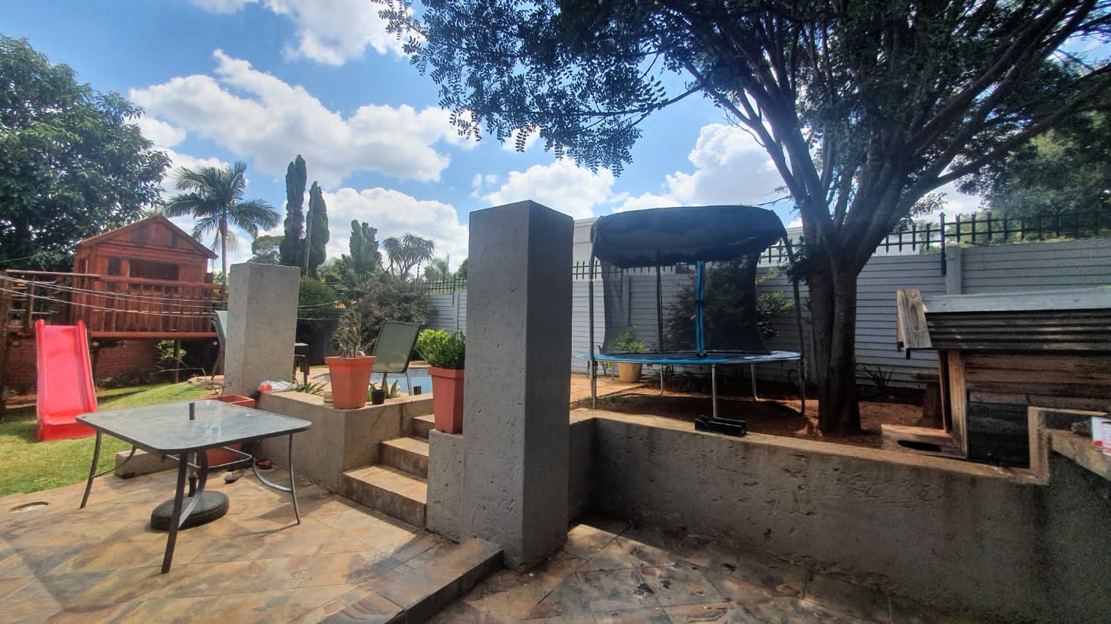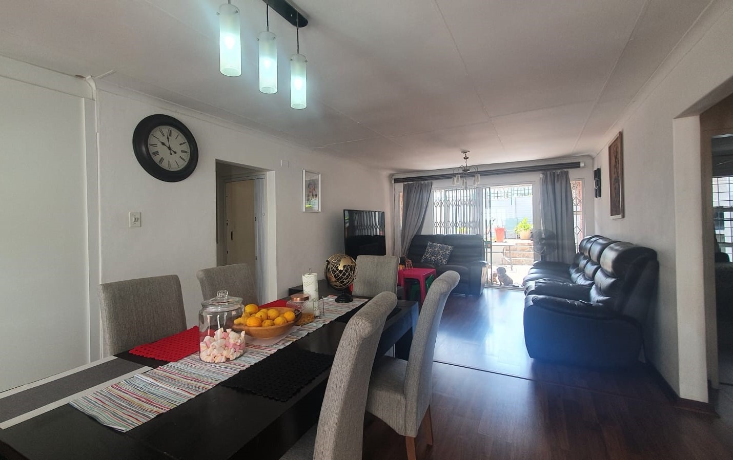 The living and dining room area flow out onto a lovely patio, garden, swimming pool and braai area, perfect to entertain the whole family.