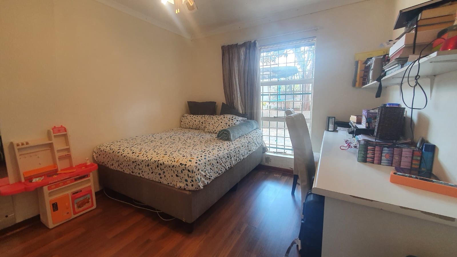 This house is spacious and sun-filled with laminated floors throughout the house.