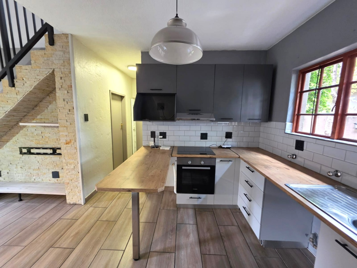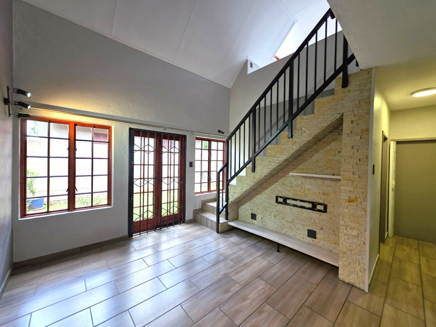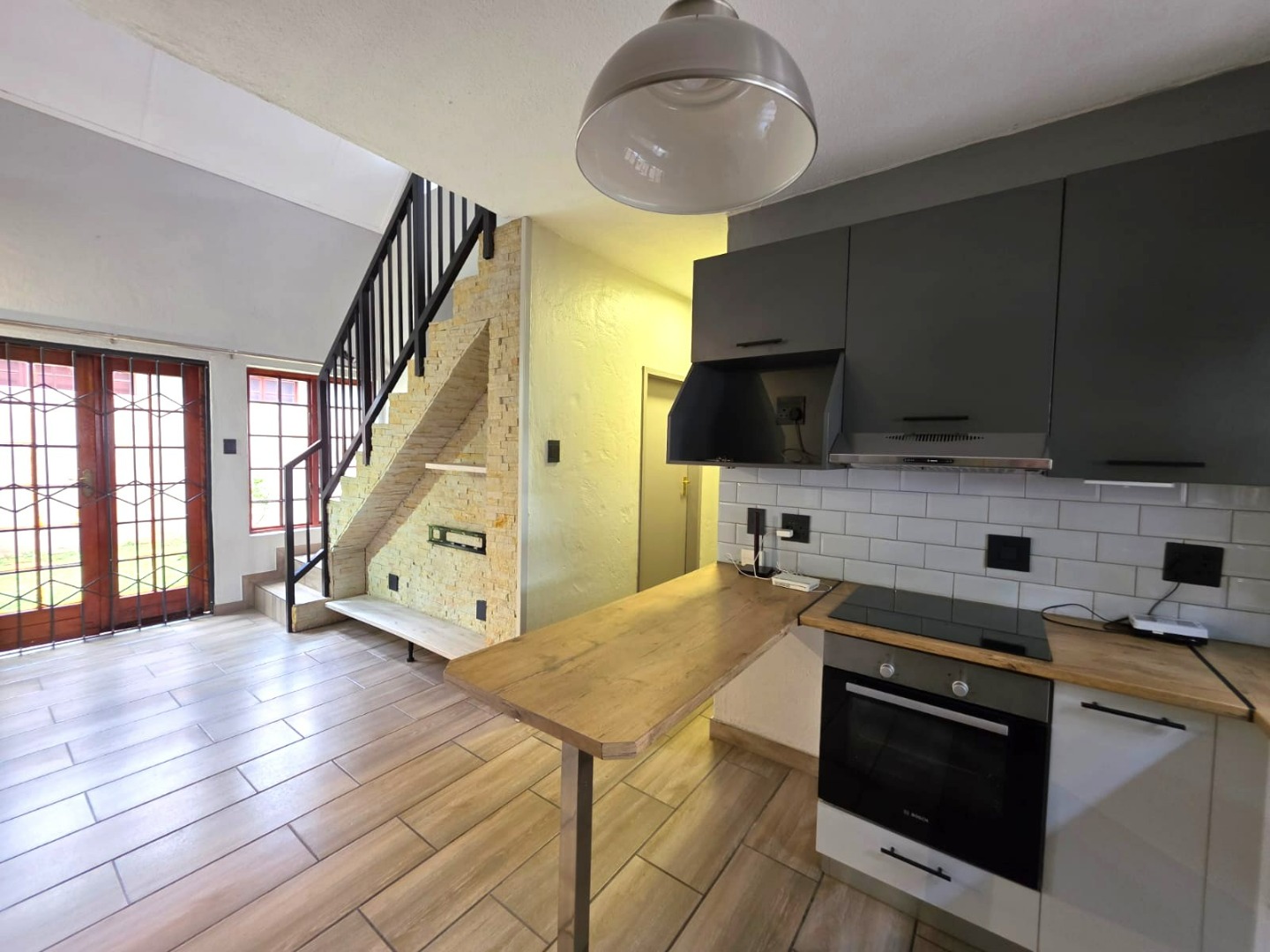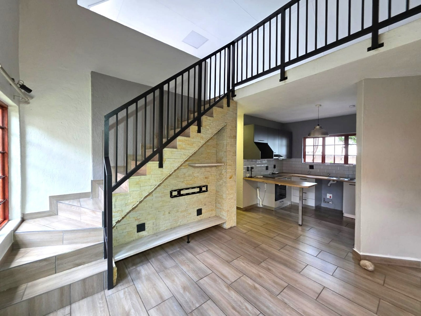 A standout feature is the spacious upstairs loft, which leads to a private deck equipped with a built-in braai, offering an ideal setting for outdoor entertainment.