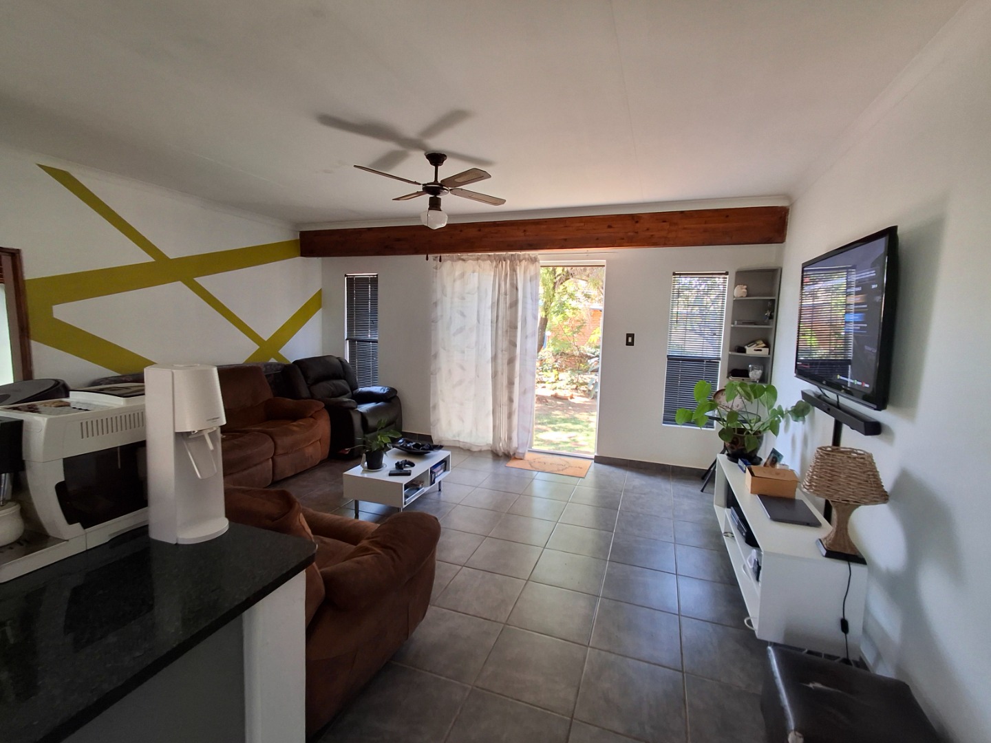 For peace of mind, the property is equipped with security bars on windows and doors, electric fencing, and an access gate. Modern conveniences include a gas geyser for energy efficiency and fibre connectivity, ensuring high-speed internet access for work or leisure.