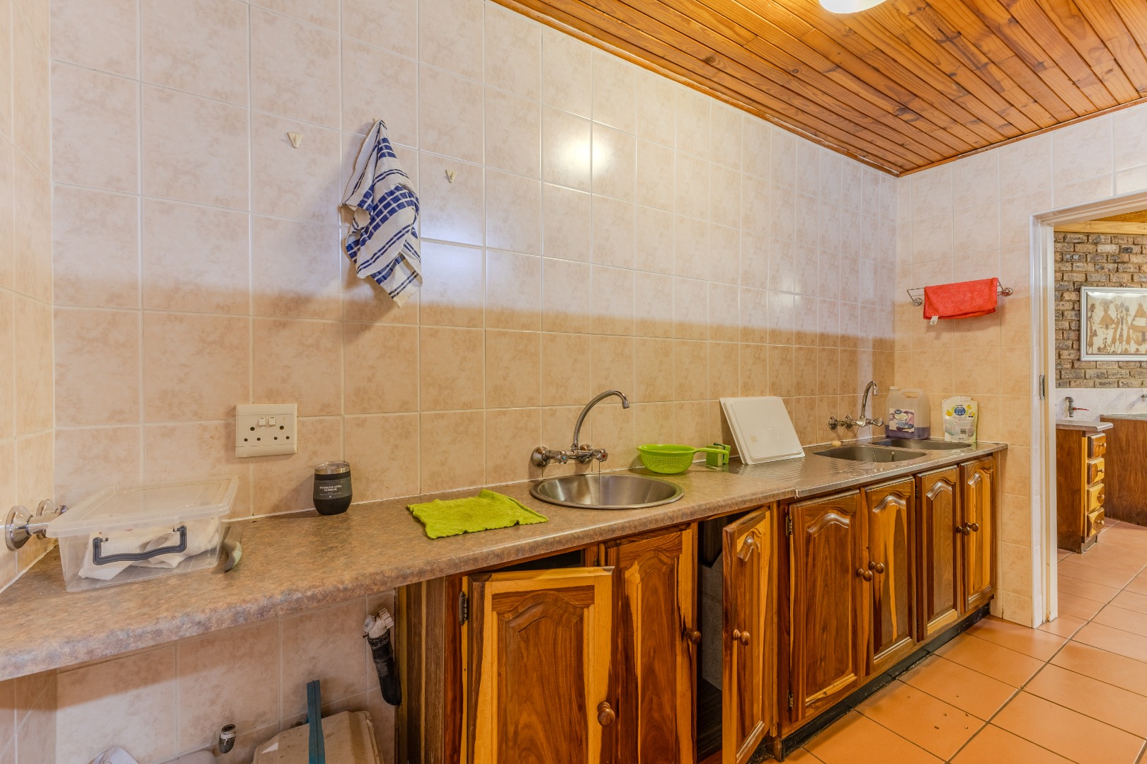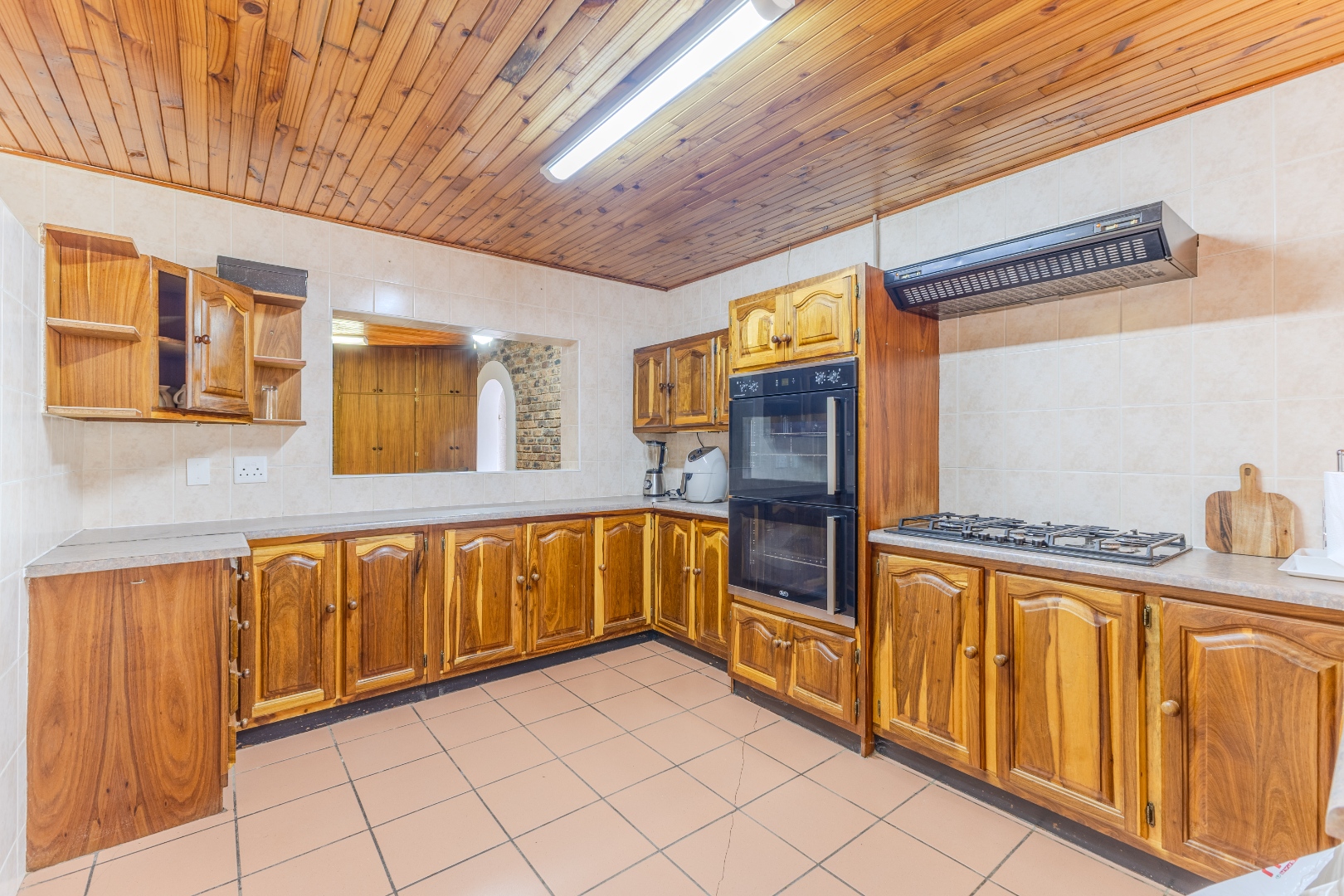 The interior comprises a dedicated lounge and dining room, complemented by additional versatile living areas that can adapt to various needs. The main kitchen is well-equipped with extensive wooden cabinetry and a built-in double oven, featuring a convenient pass-through window to an adjacent room. A functional scullery and laundry area provide practical support, ensuring household tasks are managed with ease. Electricity is prepaid.