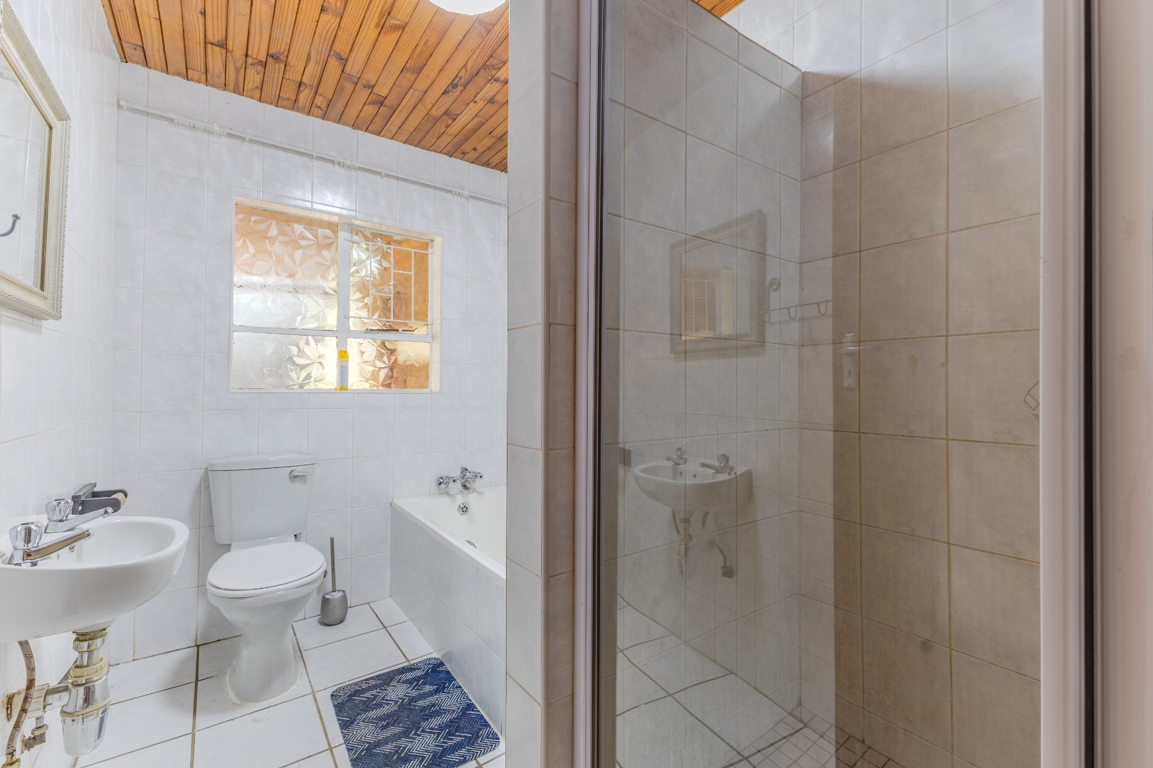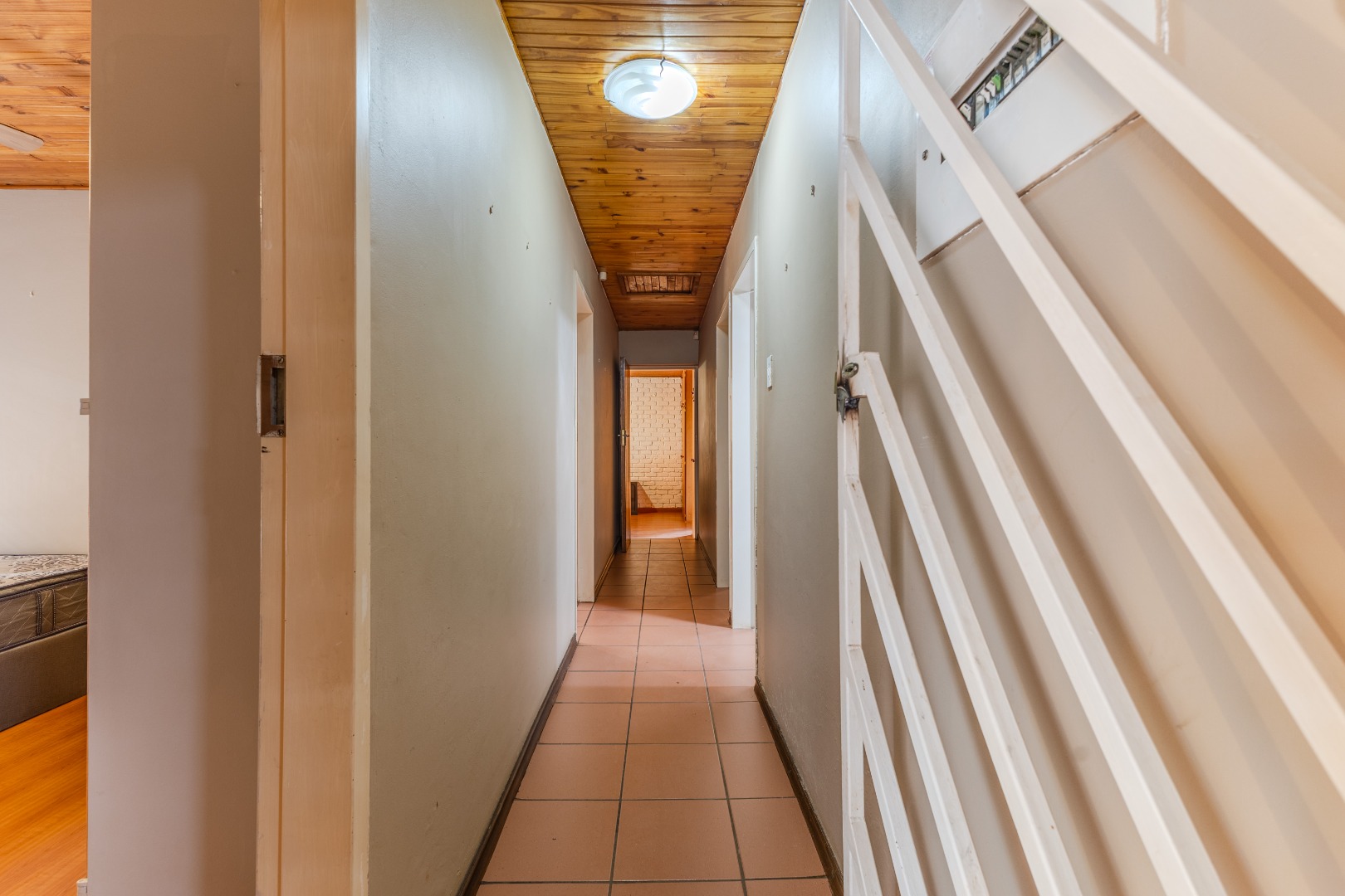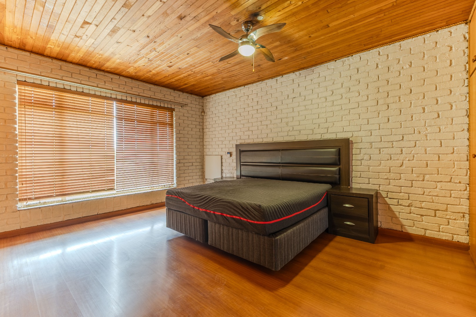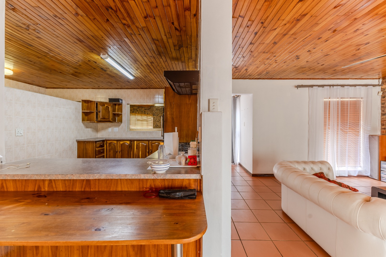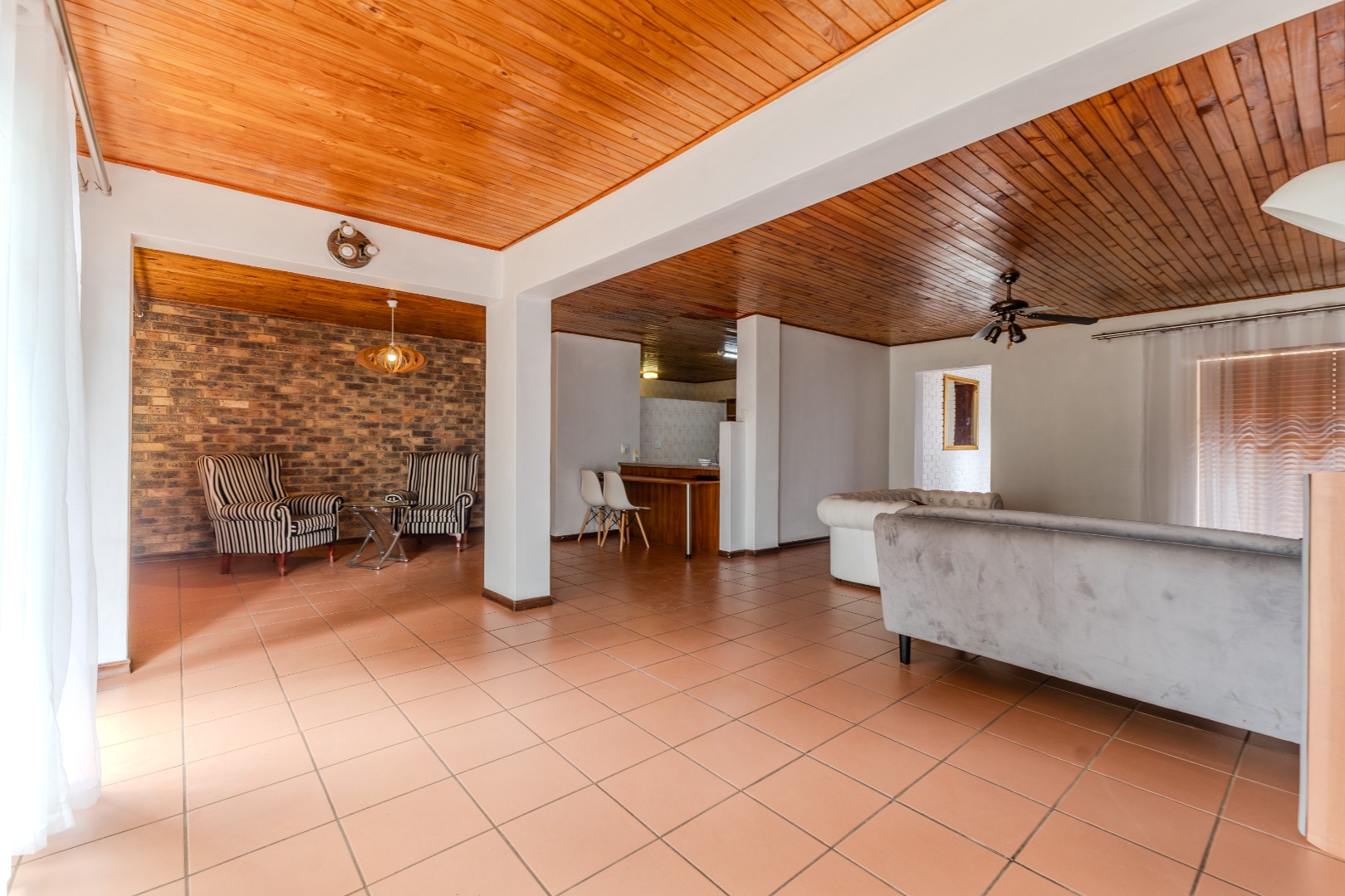 This expansive 5-bedroom, 4-bathroom residence in the sought-after Pretoria suburb of Garsfontein offers a generous living experience across its 1408 sqm floor area, set on a substantial 1410 sqm erf. The home features a distinctive character with warm wood-paneled ceilings, terracotta-tiled flooring, and exposed brick accent walls throughout, creating a unique and inviting atmosphere. An open-plan design enhances the flow between certain living spaces, ideal for comfortable family life.