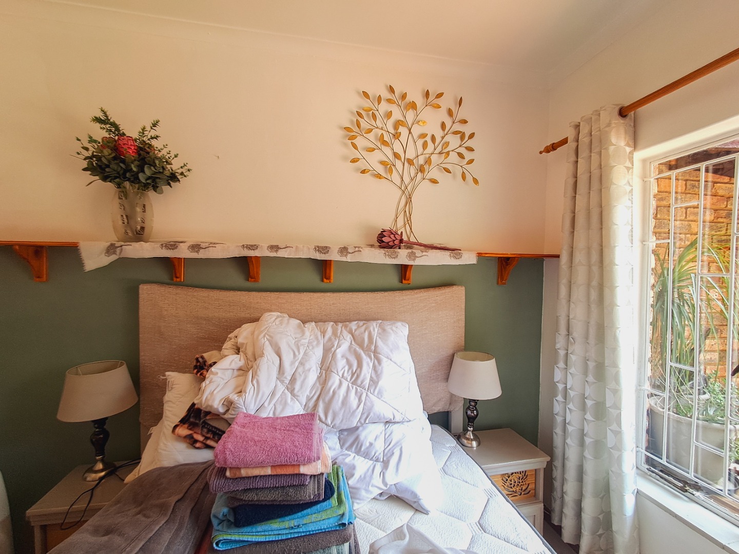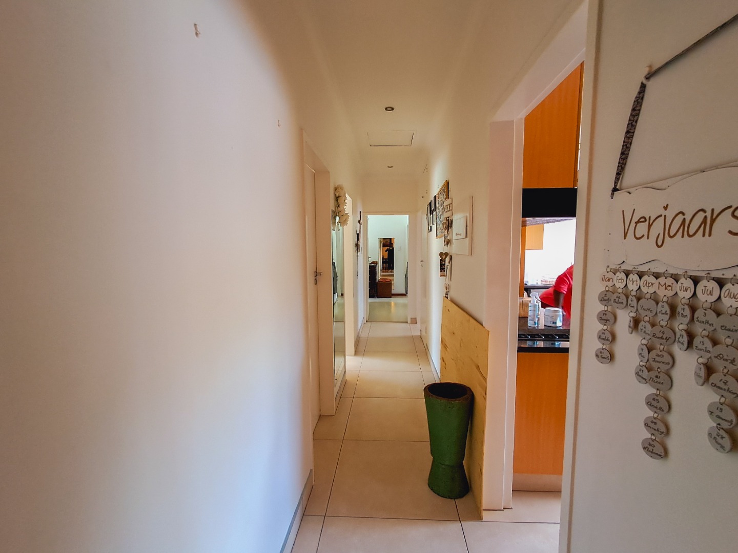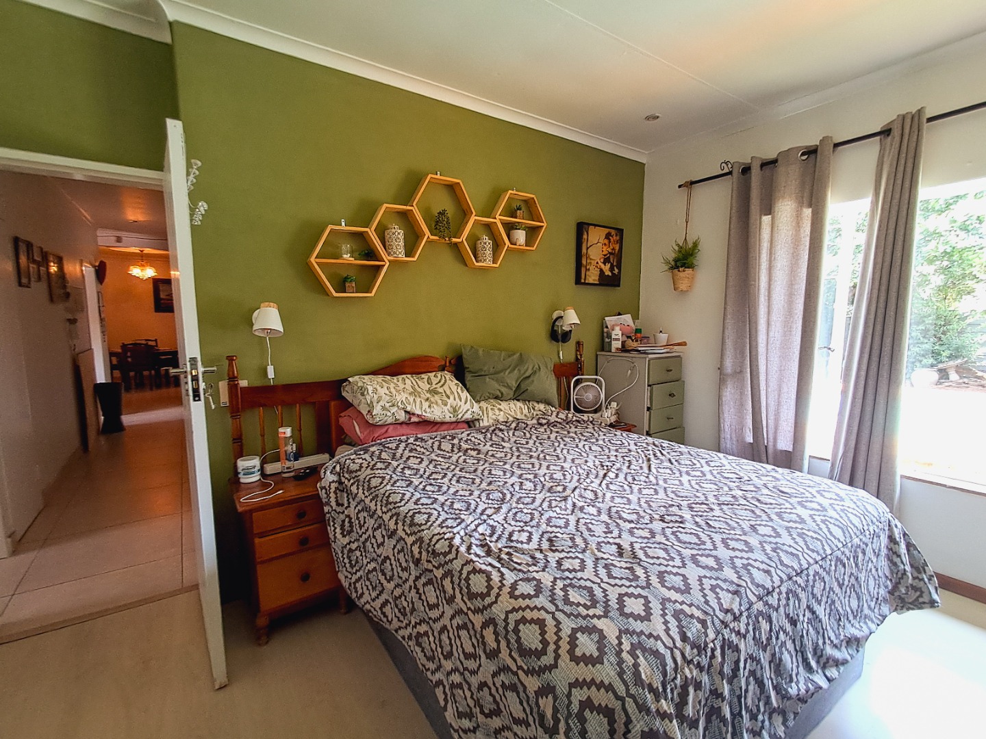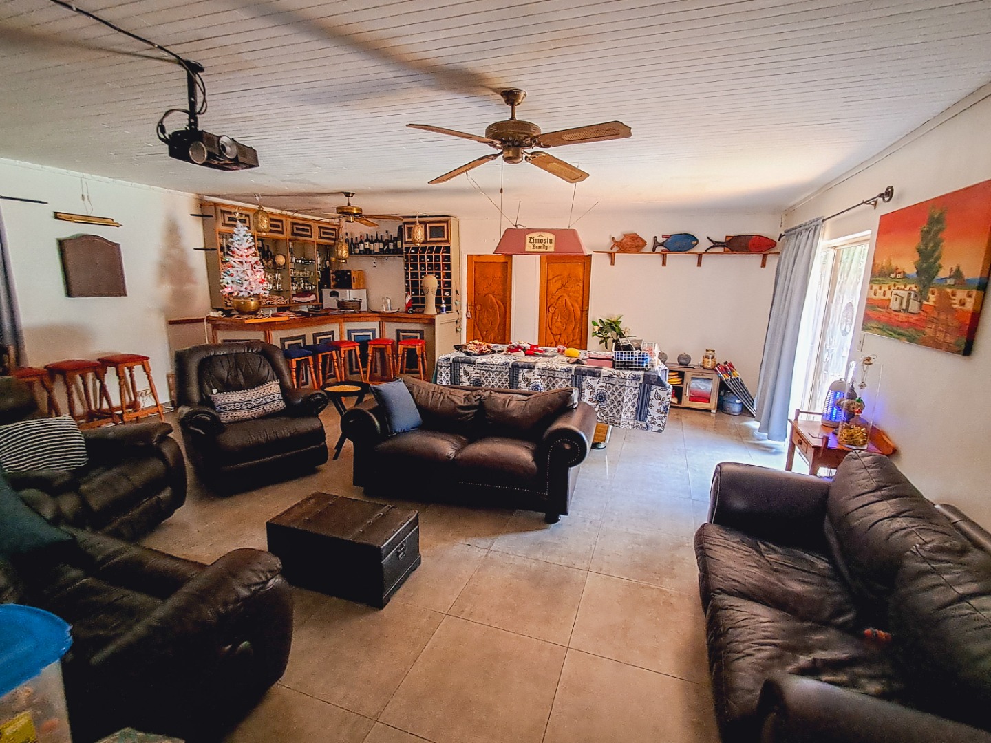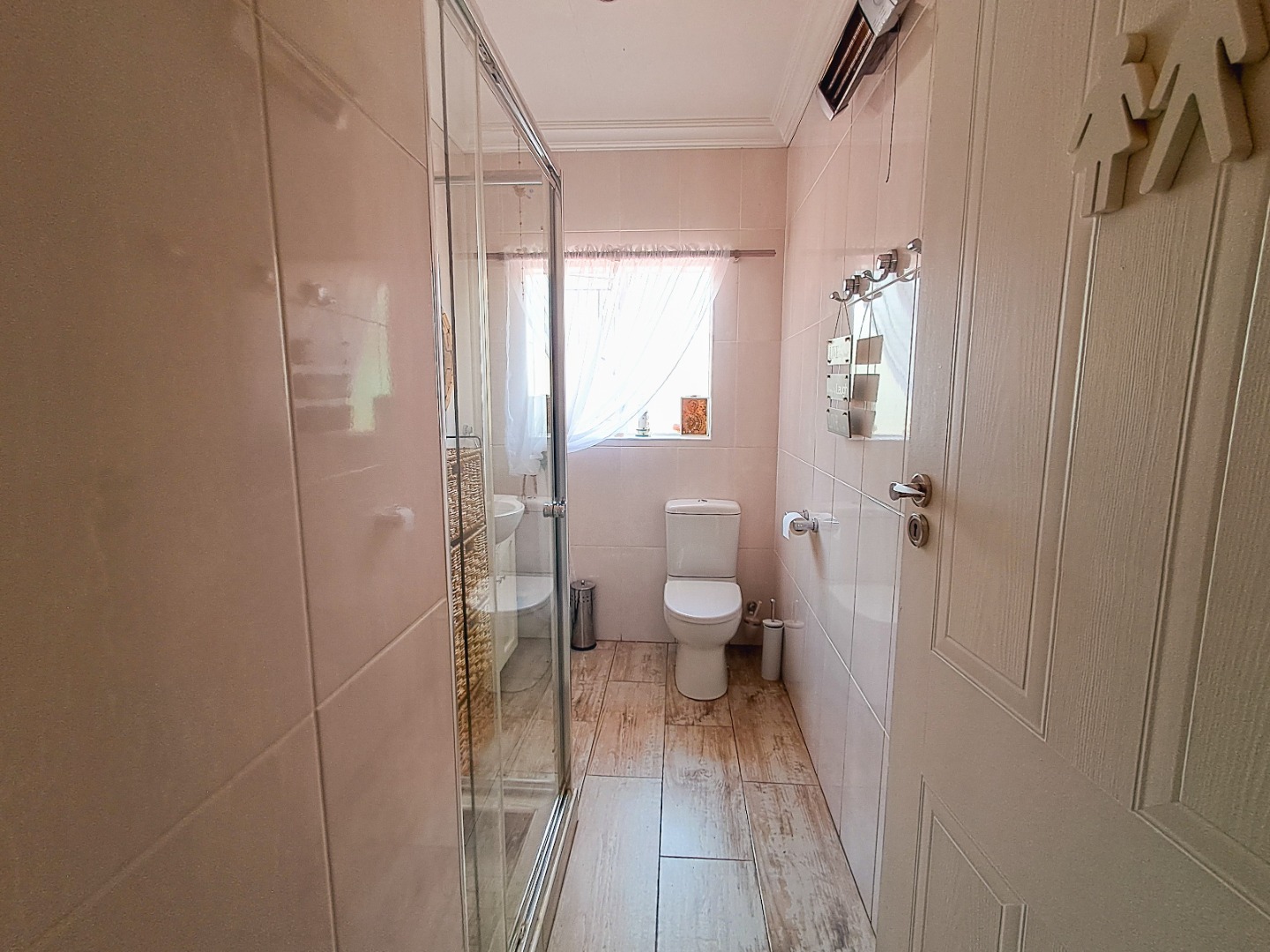 This expansive 5-bedroom, 2-bathroom residence in Garsfontein, Pretoria, offers a blend of comfortable living and vibrant entertainment spaces. The interior boasts two spacious lounges and a dedicated dining room, providing ample room for relaxation and gatherings. A highlight is the open-plan entertainment area featuring a built-in bar with seating and a projector, perfect for hosting. The functional kitchen is equipped with wooden cabinetry, tiled surfaces, a built-in oven, and a gas burner, alongside space for essential appliances like a dishwasher and washing machine. The bathrooms are well-appointed with modern glass-enclosed showers and clean tiled finishes. Step outside to discover a private outdoor oasis designed for leisure. An inviting swimming pool is surrounded by lush, mature trees and a spacious paved patio, offering an ideal setting for outdoor entertaining and a dedicated braai area. The property features a secure gated entrance, a well-maintained brick-paved driveway leading to two garages, and additional parking. Enhanced privacy and security are provided by high brick walls and security bars on windows, complemented by an ADT presence. Staff quarters add to the home's practicality, and pets are welcome. Situated within a desirable gated community on a quiet cul-de-sac, this metropolitan Pretoria home ensures a peaceful and secure lifestyle. The well-maintained street and established residential neighbourhood contribute to its appeal, offering a serene environment while remaining conveniently located. Key Features: • 5 Bedrooms, 2 Bathrooms • 2 Lounges, 1 Dining Room • Private Swimming Pool & Paved Patio • Dedicated Entertainment Bar & Projector • Secure Gated Entrance & 2 Garages • Staff Quarters • Pet-Friendly • Gated Community Location