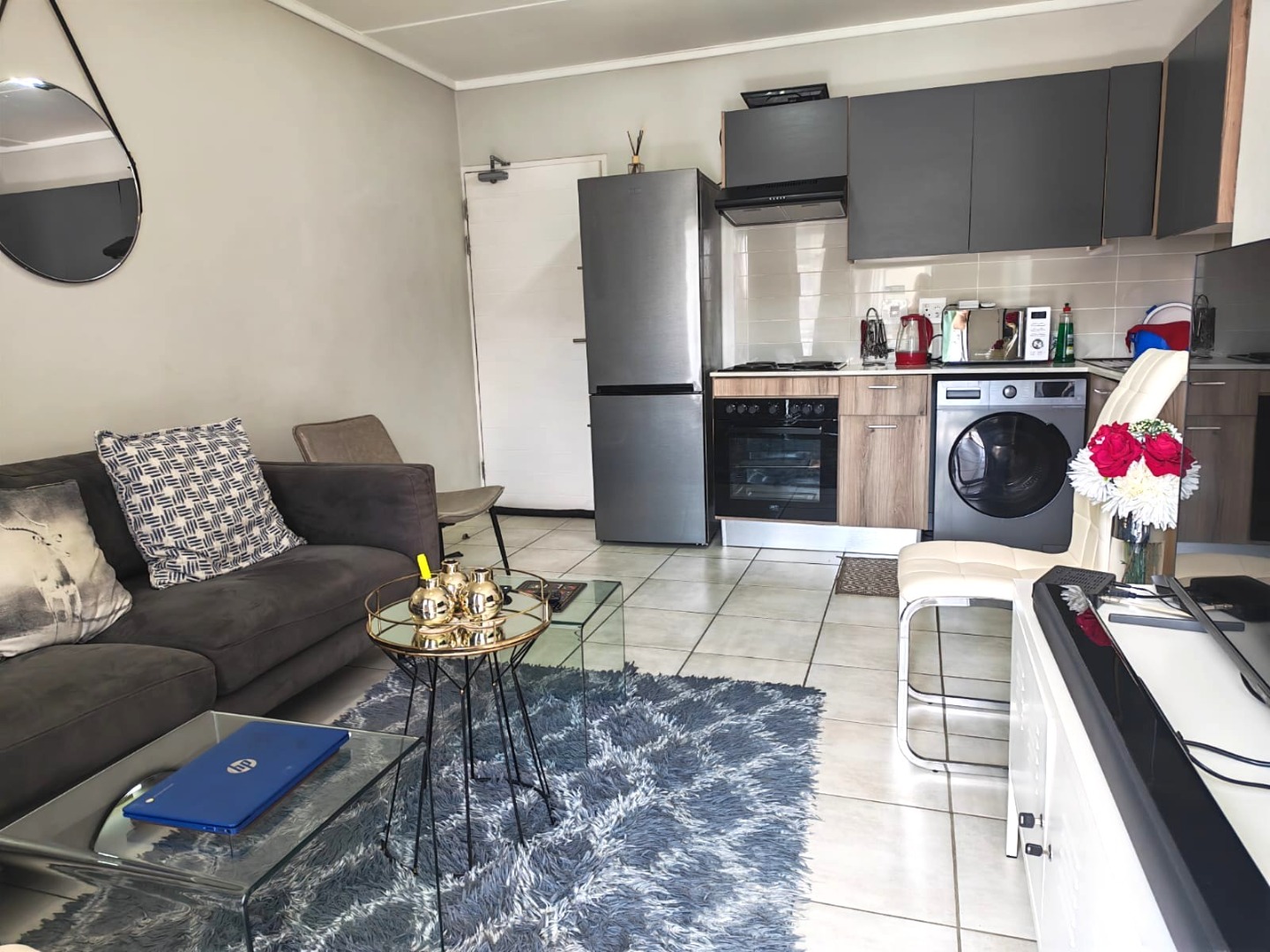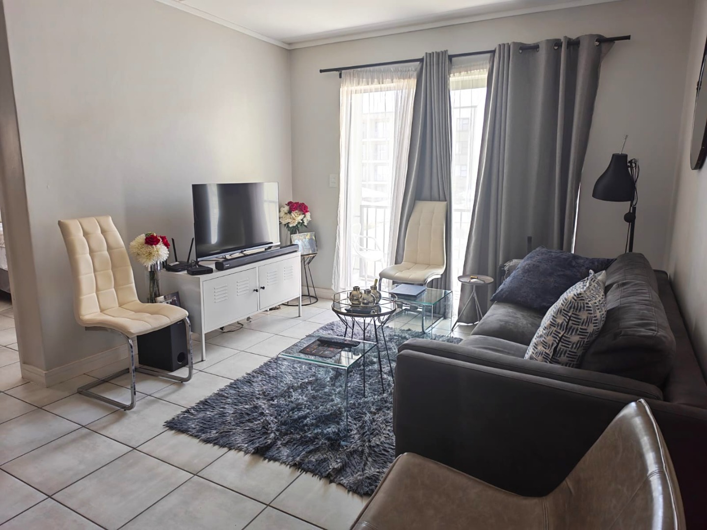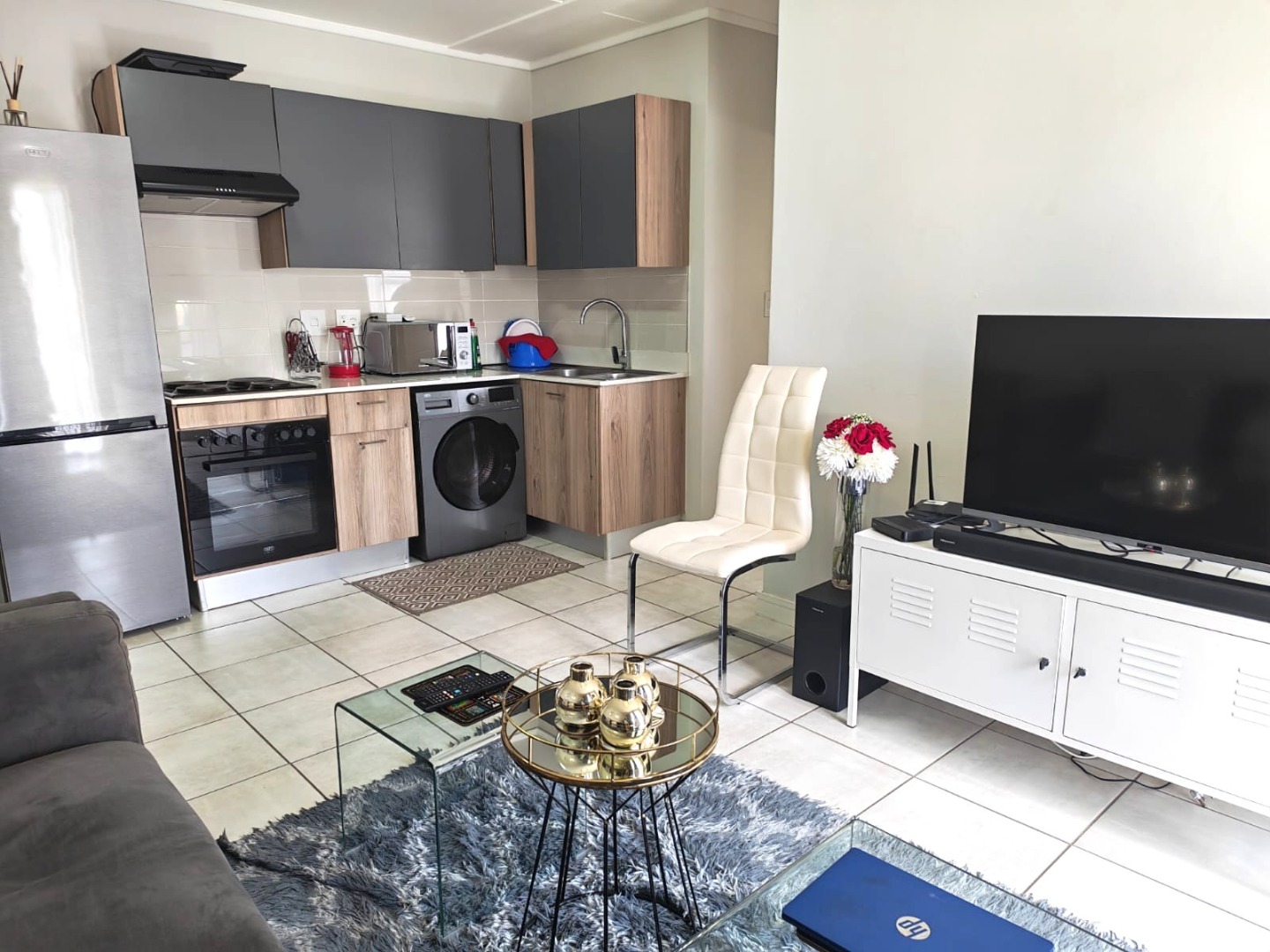 The apartment offers a modern open-plan kitchen that flows seamlessly into the living area, creating a bright and inviting space perfect