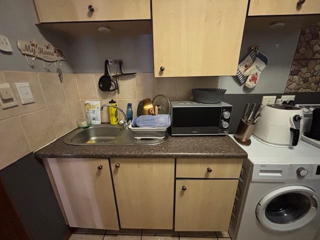 Perfect for a student! This spacious and well-kept bachelor flat offers a lovely kitchen with space for a washing machine, a neat bathroom fitted with a shower, bath and basin, and ample built-in cupboards for clothing.
