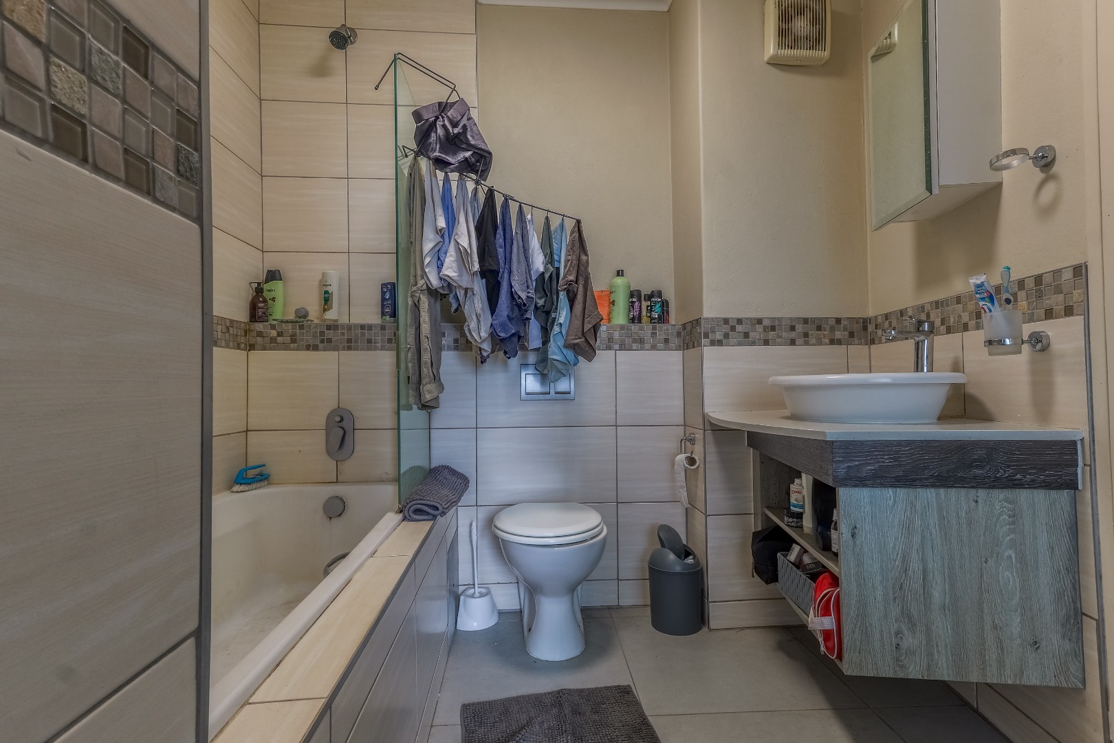 Discover this modern and functional 2-bedroom, 2-bathroom apartment available for rent in the vibrant Hatfield suburb of Pretoria. Designed for comfortable living, this unit offers an open-plan layout that seamlessly integrates the living spaces, making it ideal for students or young professionals seeking convenience and security. The compact yet efficient kitchen is a highlight, featuring contemporary white cabinetry, a stylish subway tile backsplash, and essential appliances including an oven, hob, microwave, fridge, and an integrated washing machine. The adjacent lounge area, complete with tiled flooring and a bold accent wall, provides a welcoming space for relaxation and leads directly to a private balcony, offering a pleasant outdoor retreat with green views. Each of the two bedrooms is well-appointed, offering built-in wardrobes for ample storage. Both bedrooms benefit from en-suite bathrooms, ensuring privacy and convenience. The bathrooms are fully tiled and feature modern fixtures, including a vessel sink, wall-mounted toilet, and a bathtub with an overhead shower, catering to all preferences. Situated within a secure complex, residents benefit from 24-hour security, an access gate, electric fencing, and a security post, providing peace of mind. The property also includes two dedicated parking bays. Its prime location in Hatfield makes it an excellent choice for student accommodation, offering easy access to local amenities and transport links. Hatfield is a dynamic area in Pretoria, known for its energetic atmosphere and proximity to educational institutions and various conveniences. This apartment offers a practical and secure living solution in a sought-after neighbourhood.