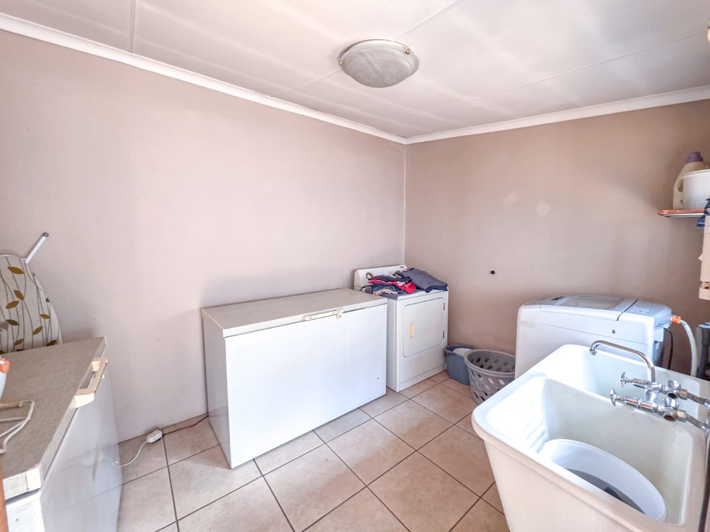 Security is a priority, with the property situated within a gated community. Visible security features such as security bars and a security gate enhance peace of mind. Furthermore, the property has a huge storage/workspace facility as well as a separate laundry room with ample space.