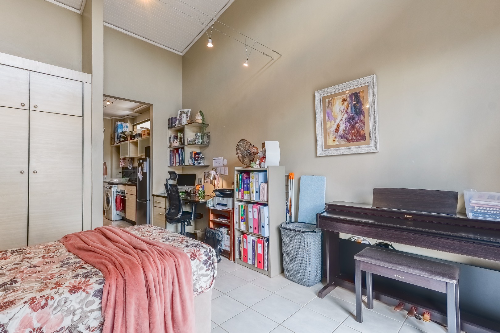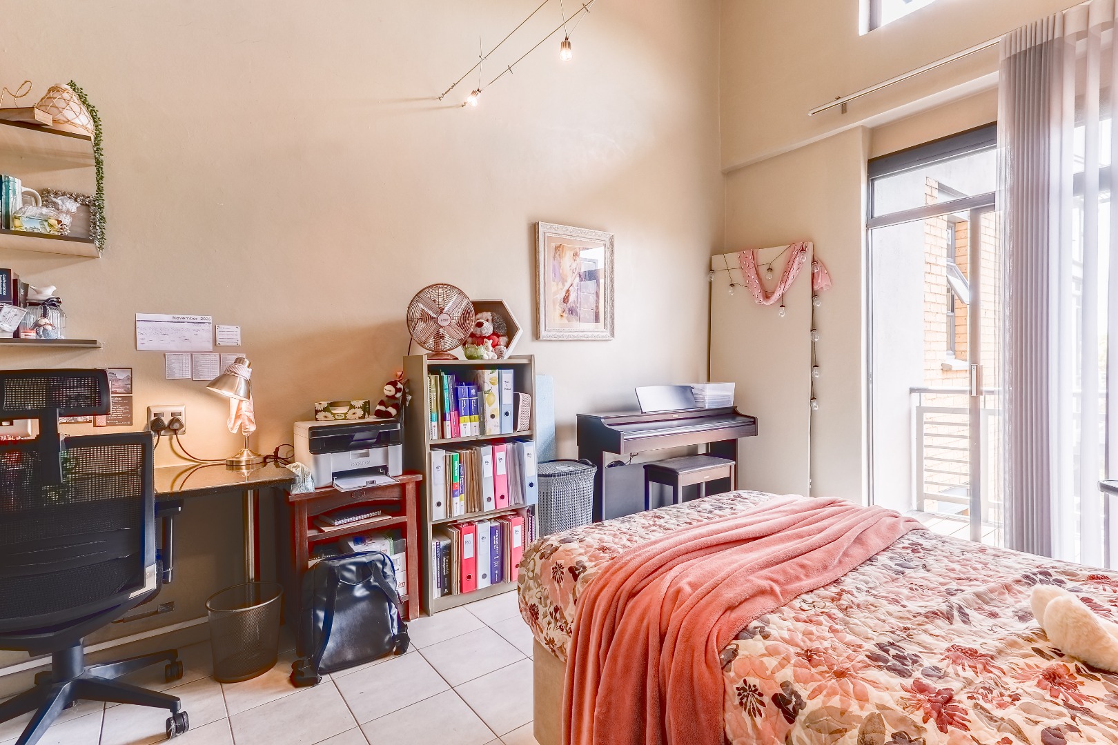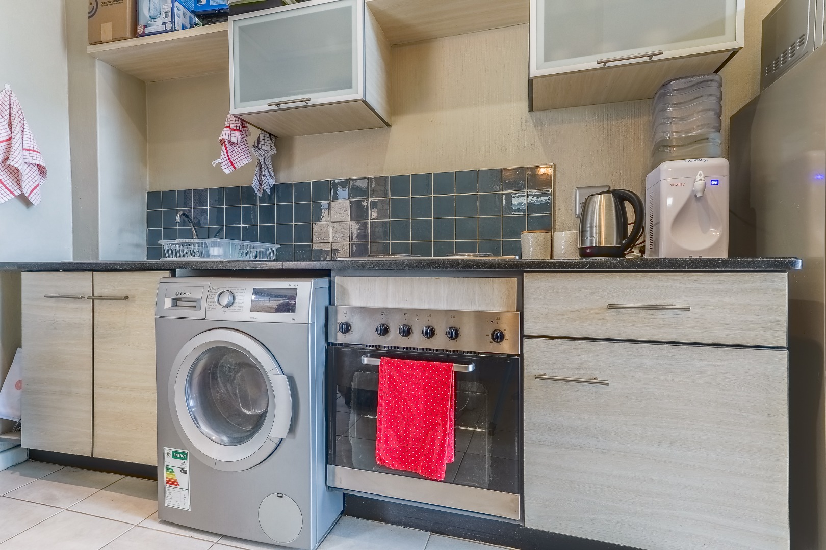 Discover this modern, furnished studio apartment available for rent in a secure complex in Lynnwood, Pretoria. Designed for convenience and comfort, this open-plan unit features a single bedroom, a well-appointed ensuite bathroom, and a functional lounge area. The compact kitchen is equipped with essential appliances, including an integrated washing machine and stove, complemented by modern countertops and a tiled backsplash. High vaulted ceilings and tiled flooring enhance the sense of space, while built-in wardrobes provide ample storage. Ideal for students or single professionals, this apartment offers a dedicated study/work area, perfect for productivity. Enjoy abundant natural light and scenic views from your private balcony, accessible via sliding doors. The unit is fully furnished, providing a hassle-free move-in experience. Residents benefit from excellent security features within the complex, including 24-hour security, a security post, access gates, electric fencing, and a security gate, ensuring peace of mind. One dedicated parking bay is included. Lynnwood offers a vibrant environment with convenient access to amenities and educational institutions.