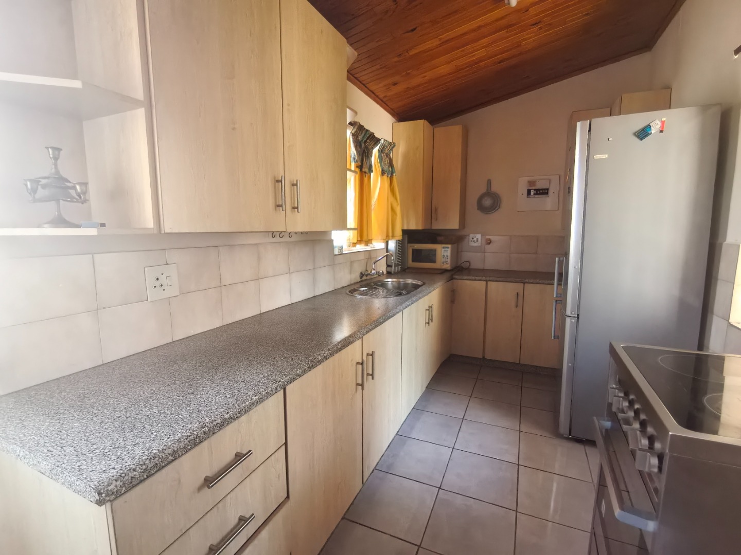 Discover this inviting 76 sqm furnished rental property in Pretoria, offering a comfortable and convenient living experience. This well-appointed unit features one bedroom, one bathroom, a dedicated lounge, and a dining room, all designed for practical living. Throughout the main living areas, distinctive vaulted wooden plank ceilings add character and a sense of spaciousness, complemented by ample natural light filtering through large windows. The functional kitchen is equipped with light wood-look cabinetry, speckled laminate countertops, and a tiled floor and backsplash for easy maintenance. It includes a modern freestanding oven/stove and a large stainless steel refrigerator, providing all essentials for daily meal preparation. The unique vaulted wooden ceiling extends into this space, maintaining a cohesive aesthetic. Ideal for professionals or individuals seeking a ready-to-move-in solution, this furnished property offers a hassle-free lifestyle. With three dedicated parking spaces, convenience is assured. Security is enhanced by an access gate and a totally walled perimeter, providing peace of mind in a suburban setting. Located in the desirable suburban area of Lynnwood, Pretoria, this property benefits from a tranquil environment, accessible to local amenities and offering convenient access within South Africa's capital city. Key Features: * One Bedroom, One Bathroom * 76 sqm Floor Size * Fully Furnished * Three Parking Spaces * Vaulted Wooden Ceilings * Equipped Kitchen with Modern Appliances * Access Gate and Walled Perimeter * Suburban Lynnwood Location