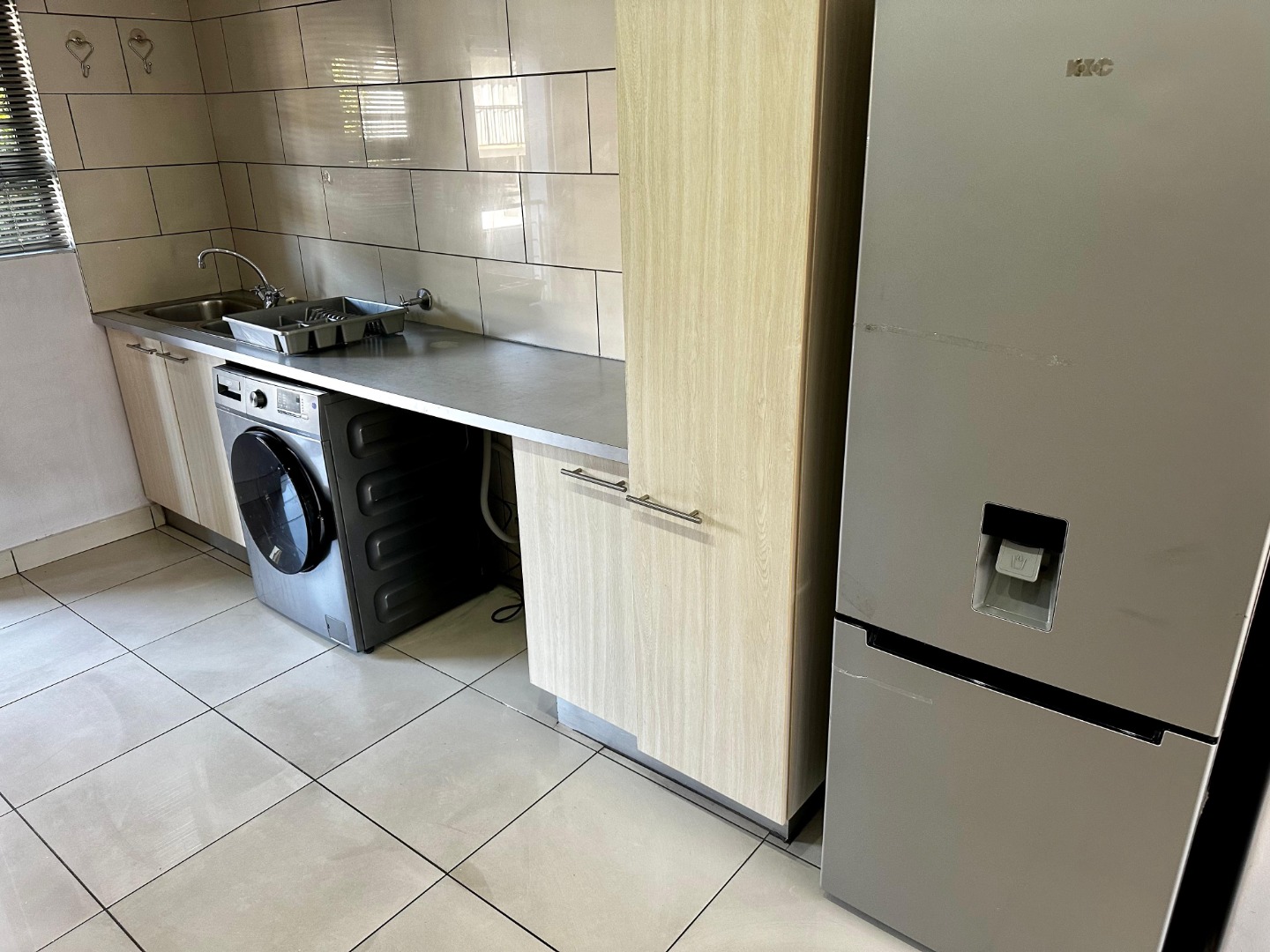 The kitchen is thoughtfully equipped with a single-door fridge, microwave, kettle, and space for two under-counter appliances, with a washing machine already provided. The living area is warm and inviting, complete with a TV, making it the perfect space to unwind or entertain.