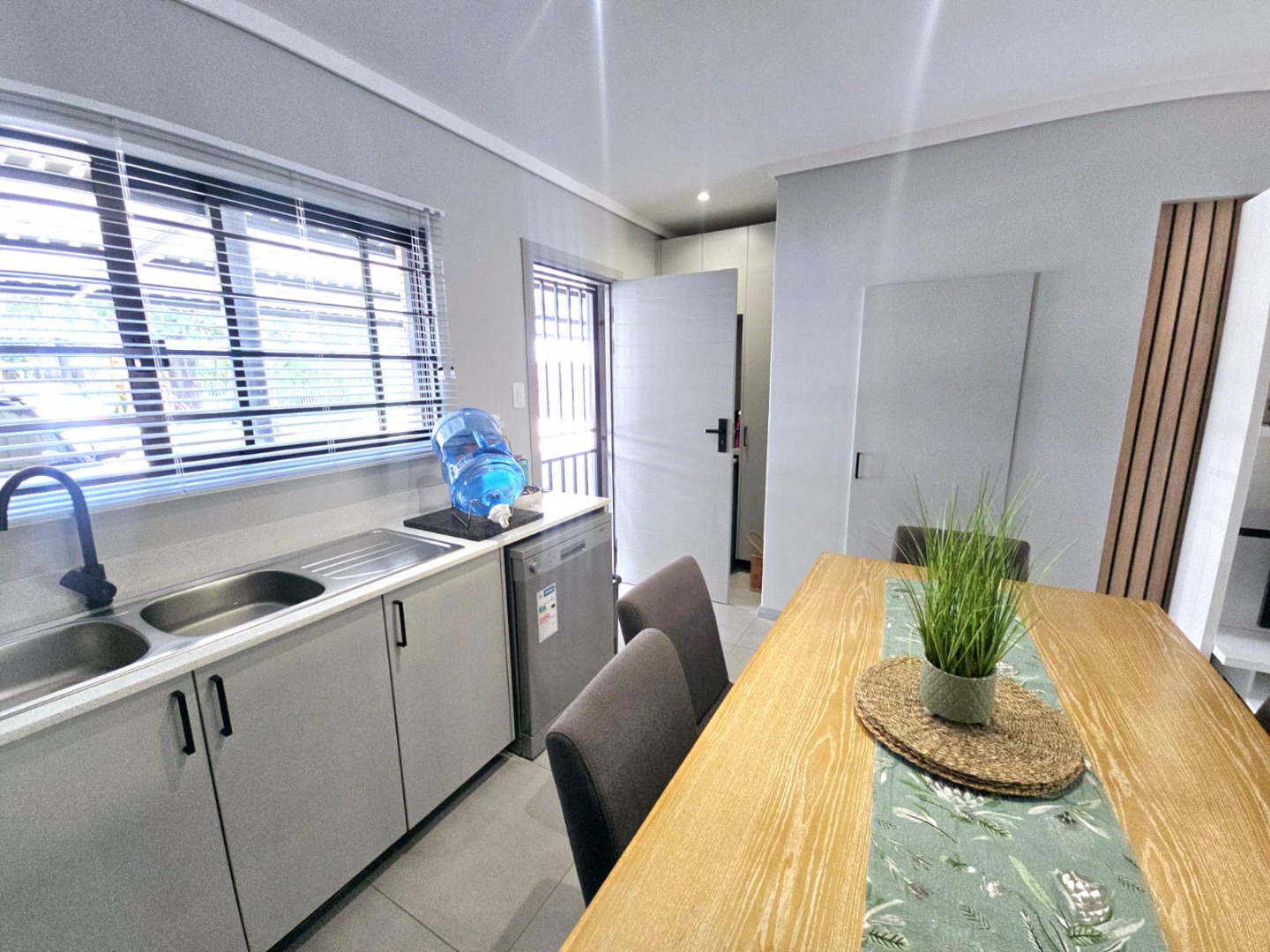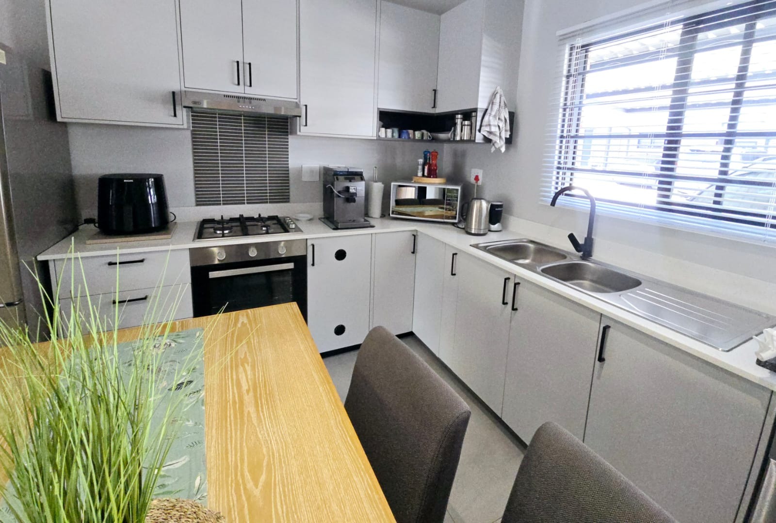 - Kitchen which accommodates 3 machines, a pantry area and well appointed laundry space with more than enough cupboard space.
