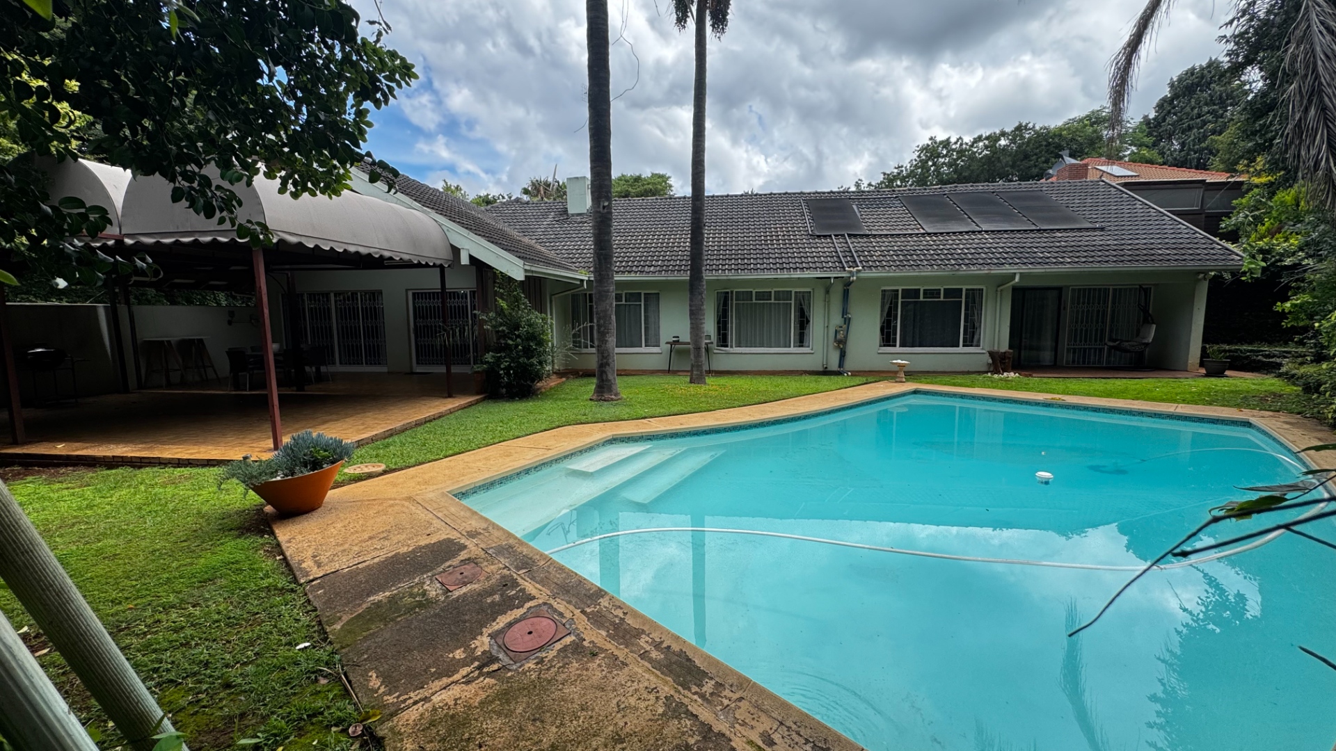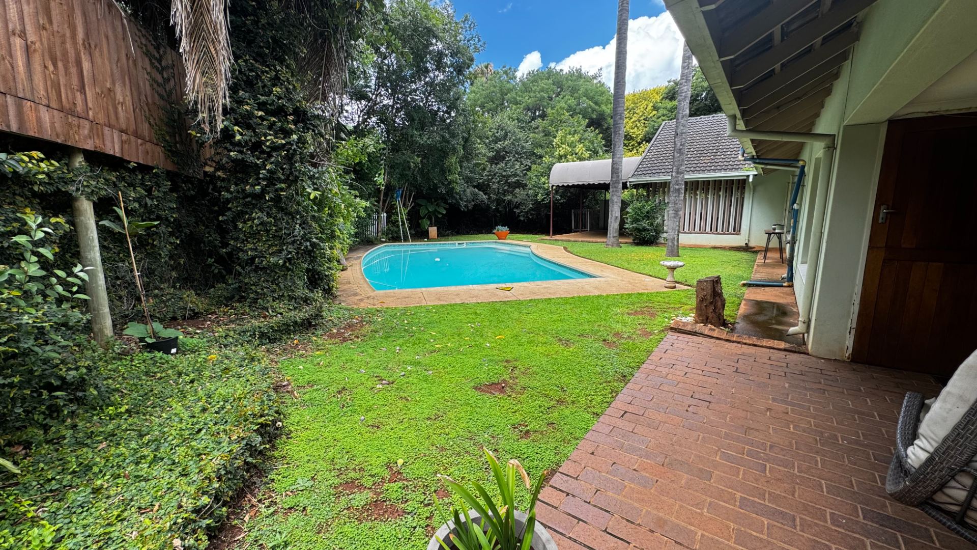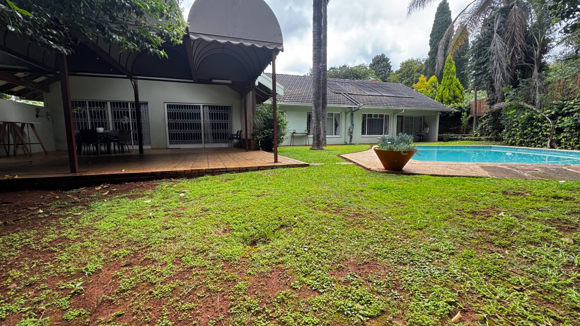 Discover this spacious 4-bedroom, 3-bathroom rental home located in the desirable suburb of Lynnwood, Pretoria. Upon entering through the welcoming entrance hall, you are greeted by an open-plan layout that seamlessly connects the living spaces. The property boasts two comfortable lounges, including a dedicated family TV room, all featuring practical tiled flooring and ample natural light. A fireplace adds a cozy touch to one of the living areas. The heart of the home is a spacious galley-style kitchen, equipped with a convenient pass-through window and breakfast bar, ideal for casual dining. Adjacent to the dining room, this functional kitchen offers plenty of counter and storage space. The residence includes four well-proportioned bedrooms, with one featuring an en-suite bathroom. A dedicated study provides an ideal space for remote work or quiet contemplation, complemented by built-in wardrobes. Set on a generous 1233 sqm erf with a floor size of 380 sqm, the property offers a lush, mature garden and a refreshing pool, perfect for outdoor enjoyment and entertaining. A private patio extends the living space outdoors. Parking is abundant with a double garage and additional driveway space for two vehicles. Pets are allowed, making this an ideal family home with a scenic view. Security is enhanced with security gates and security bars on windows, providing peace of mind. The home is fibre-ready, ensuring high-speed internet connectivity for all your digital needs. This suburban residence offers a comfortable and secure lifestyle in a well-established Pretoria neighbourhood. Key Features: * 4 Bedrooms, 3 Bathrooms (including 1 en-suite & guest toilet) * 2 Lounges & Family TV Room * Spacious Galley Kitchen with Breakfast Bar * Dedicated Study * Private Pool & Lush Garden * Double Garage & Ample Parking * Pet-Friendly * Fibre-Ready Connectivity * Security Gates & Window Bars