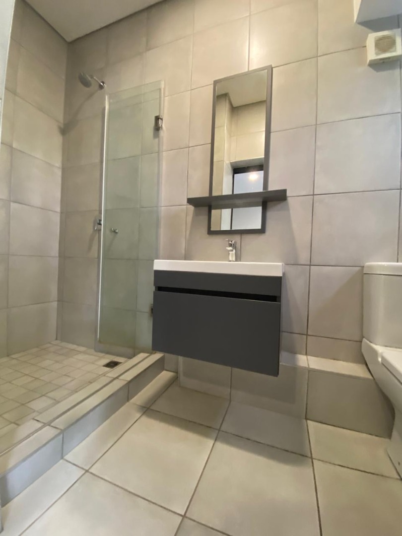 Discover modern living in this stylish 1-bedroom, 1-bathroom apartment, perfectly situated in the sought-after Menlo Park, Pretoria. Designed for contemporary convenience, this open-plan residence features a sleek kitchen equipped with two-tone grey and white cabinetry, integrated oven, microwave, and a dedicated space for a washing machine. A crisp white subway tile backsplash complements the design, while clean tiled flooring extends throughout the living areas, illuminated by recessed and under-cabinet lighting. The inviting lounge area boasts a striking exposed brick accent wall, complete with a floating media shelf, adding character and a modern industrial touch. The comfortable bedroom offers ample natural light through a large window and includes practical, built-in grey and white wardrobes for efficient storage. The modern bathroom is finished with light grey tiled walls and floor, featuring a glass-enclosed shower, a wall-mounted vanity, and a high-set window for natural ventilation, alongside an extractor fan. Enjoy a private balcony, perfect for relaxation. Ideal for students or young professionals, this apartment offers a desirable lock-up-and-go lifestyle within a secure complex. Residents benefit from 24-hour security, controlled access gates, and a dedicated security gate, ensuring peace of mind. The property also includes one convenient parking bay and is fibre-ready, providing high-speed internet connectivity essential for today's demands. Menlo Park is a vibrant and well-located suburb, known for its accessibility and appeal, particularly as a hub for student accommodation. This property combines modern amenities with a secure environment, making it an excellent rental opportunity in Pretoria. Key Features: * 1 Bedroom, 1 Bathroom * Modern Open-Plan Living * Integrated Kitchen Appliances (Oven, Microwave, Washing Machine) * Stylish Exposed Brick Accent Wall * Built-in Wardrobes * Private Balcony * Dedicated Parking Bay * Fibre Connectivity * 24-Hour Security Complex