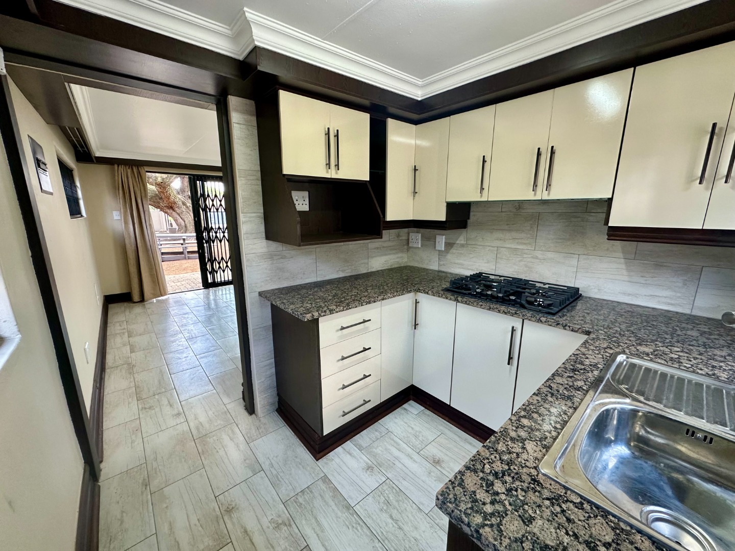 Security is paramount, with 24-hour security, CCTV surveillance, and an access gate. The unit itself features security gates on the main entrance and burglar bars on windows, enhancing peace of mind. Enjoy sustainable living with the inclusion of solar panels, a battery inverter, and a borehole, contributing to reduced utility costs and reliable services. Fibre connectivity is also available, ensuring high-speed internet access. Two dedicated parking spaces are provided for convenience.