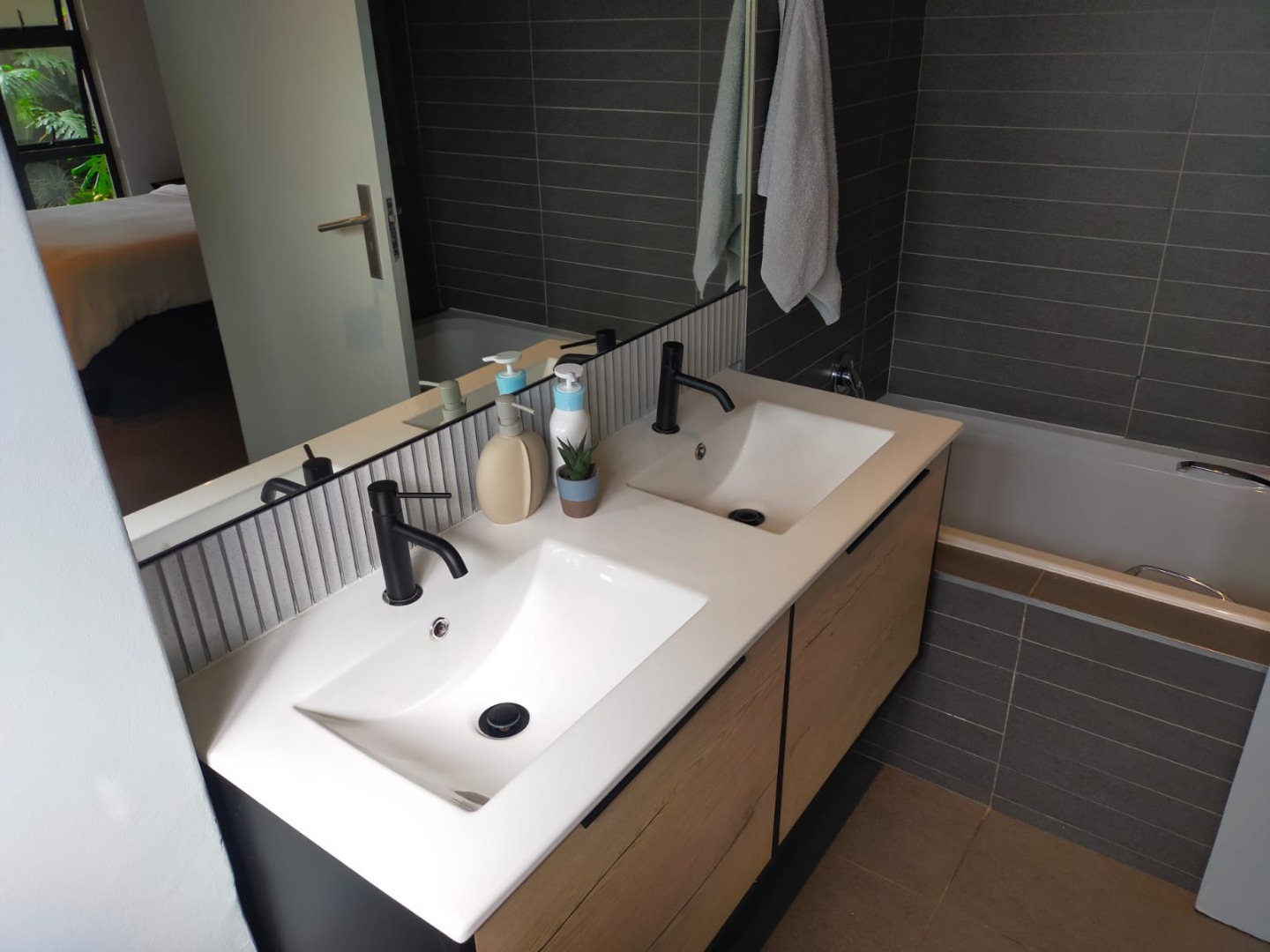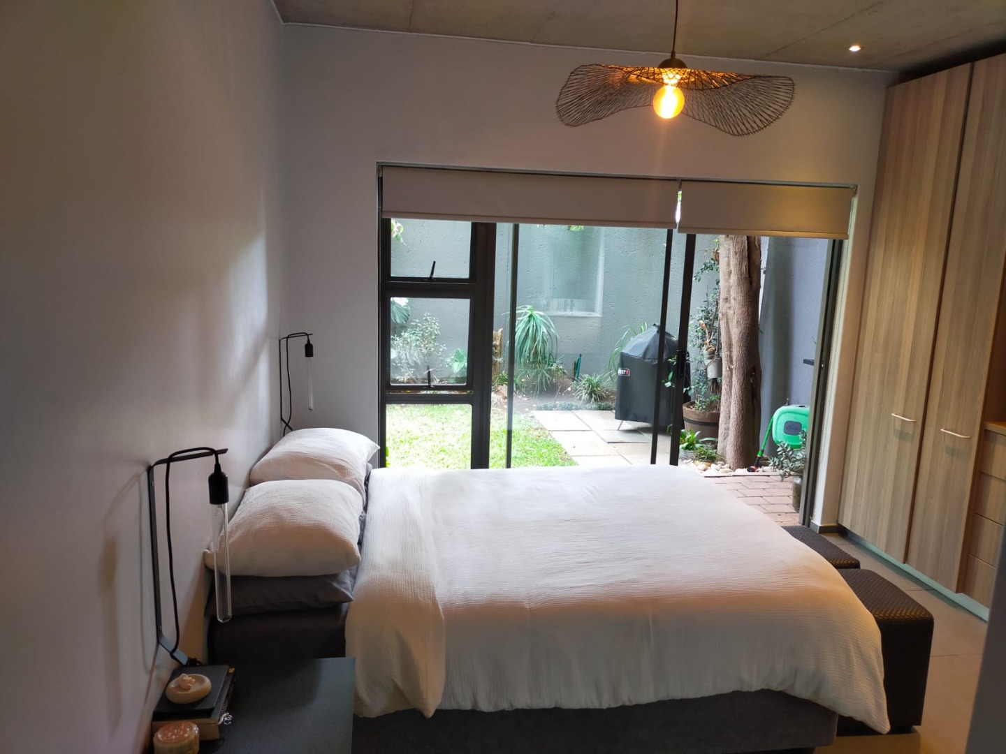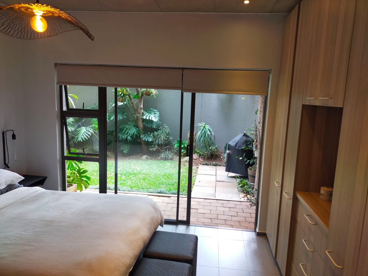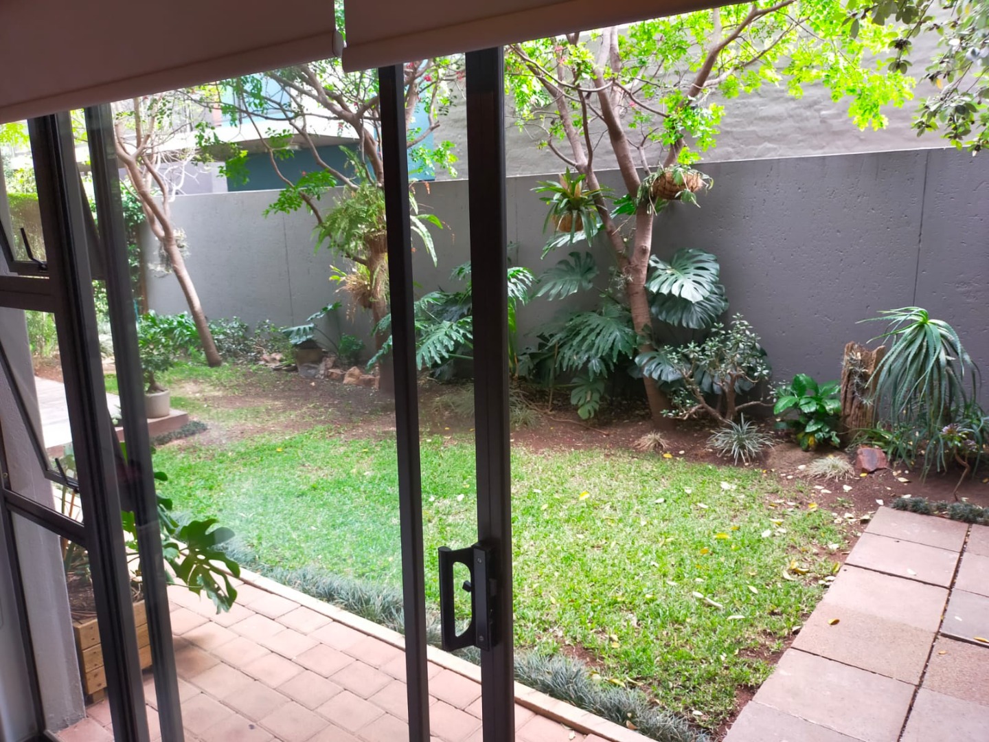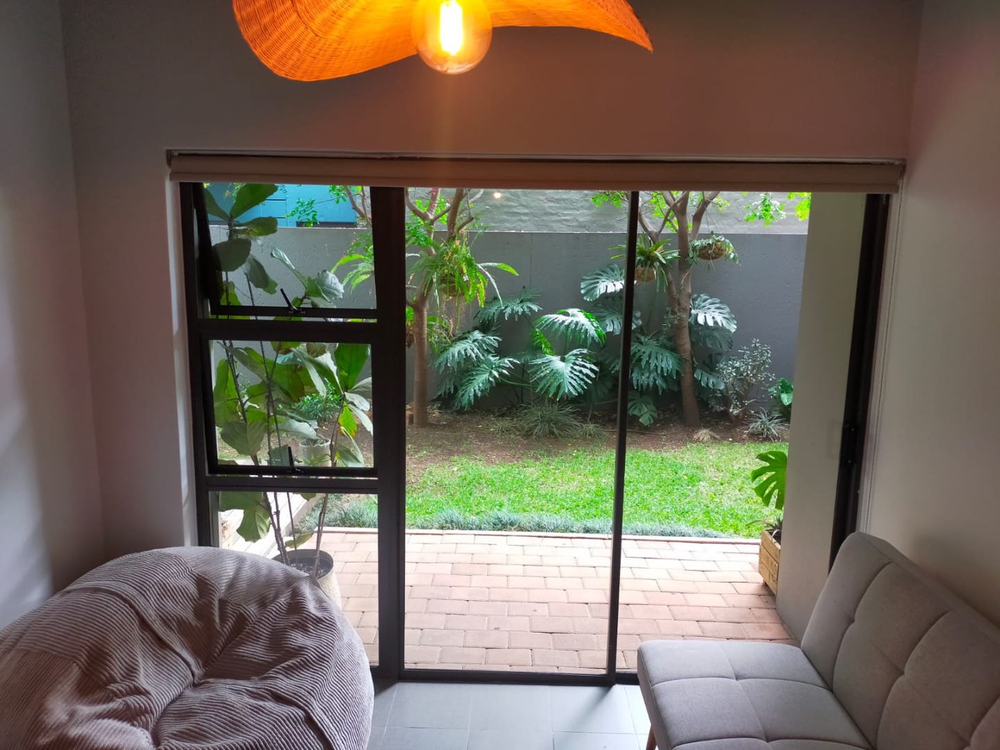 The property boasts a lush, tropical-style garden featuring a wooden deck and paved areas, ideal for relaxation and entertaining. Enjoy alfresco dining with the included modern outdoor set, or host a braai in your secluded space, surrounded by mature greenery and high privacy walls. The garden provides a serene escape, making it perfect for those who appreciate outdoor living.
