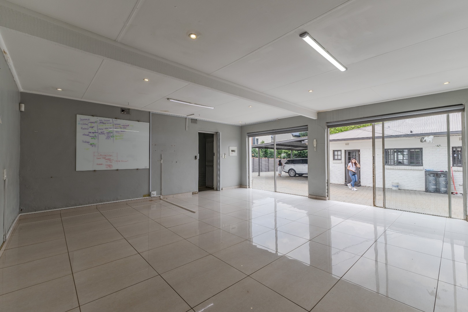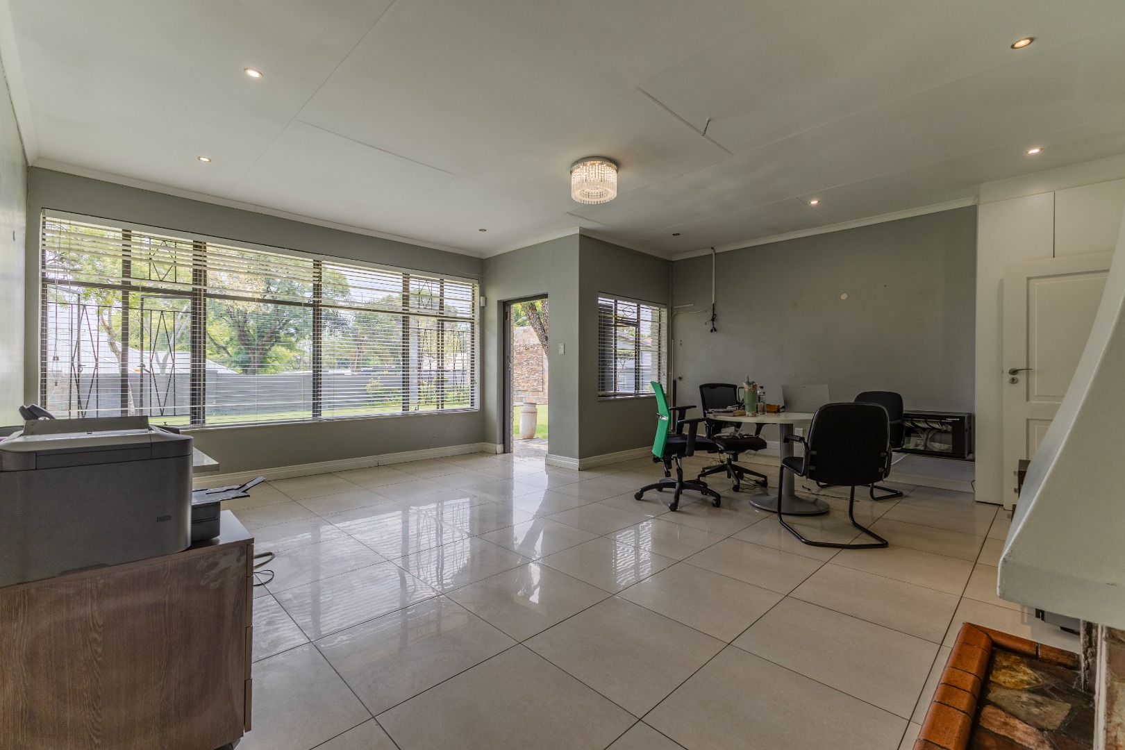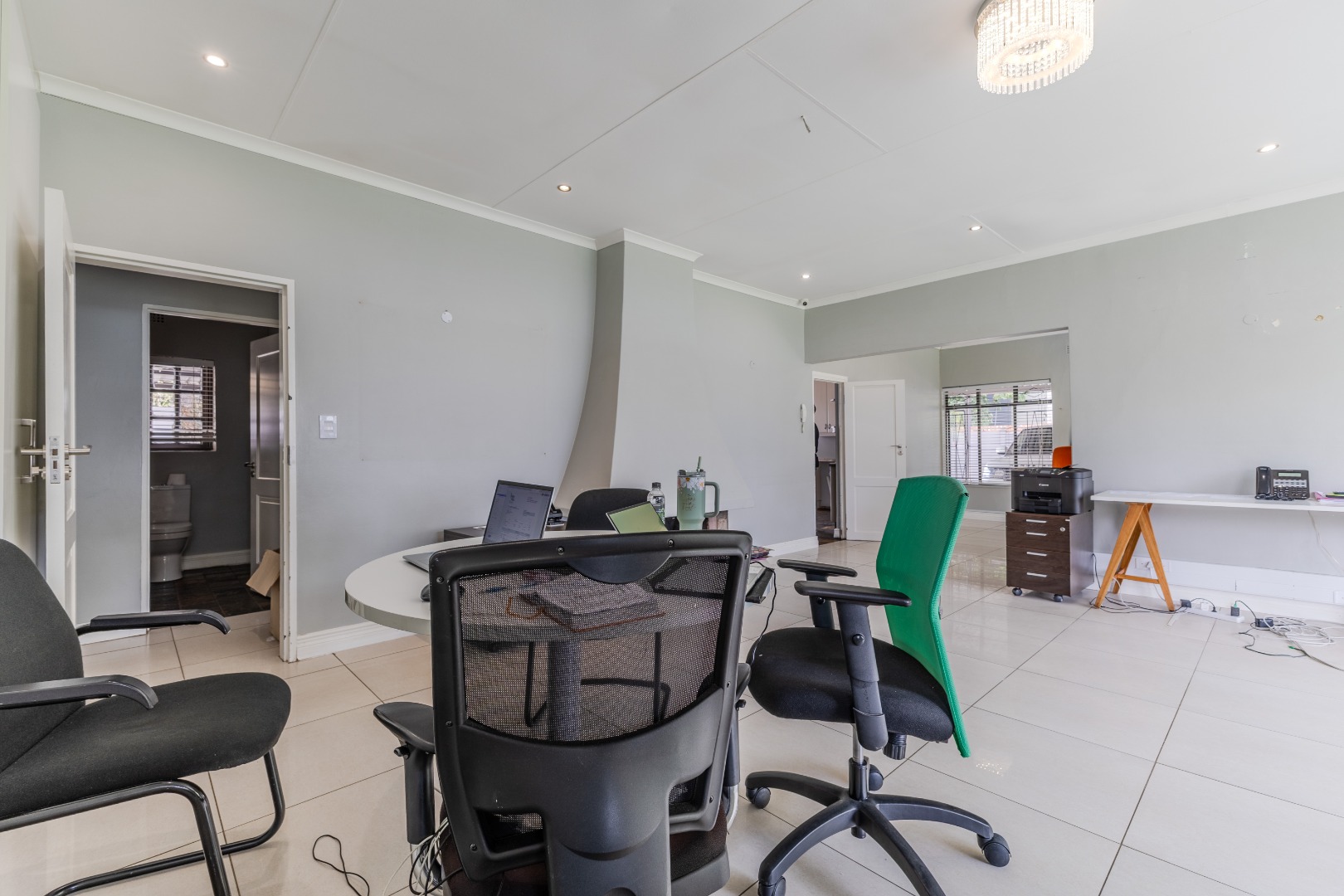 Set on a generous 2 234 sqm erf with 291 sqm under roof, the property boasts an abundance of space both inside and out. The interior is thoughtfully configured to accommodate a range of business operations, featuring a large boardroom, an open-plan office area, three private offices, and a spacious double-volume executive office. A notable advantage is the double garage that has been converted into additional office space, further enhancing the property's flexibility. Additional features include a secure vault, storage room, three restrooms, and a well-appointed kitchen with granite countertops and a separate scullery.