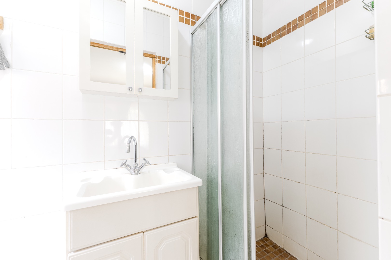 The kitchen is fitted with a gas stove and is positioned separately from the living areas, providing a practical and functional layout.