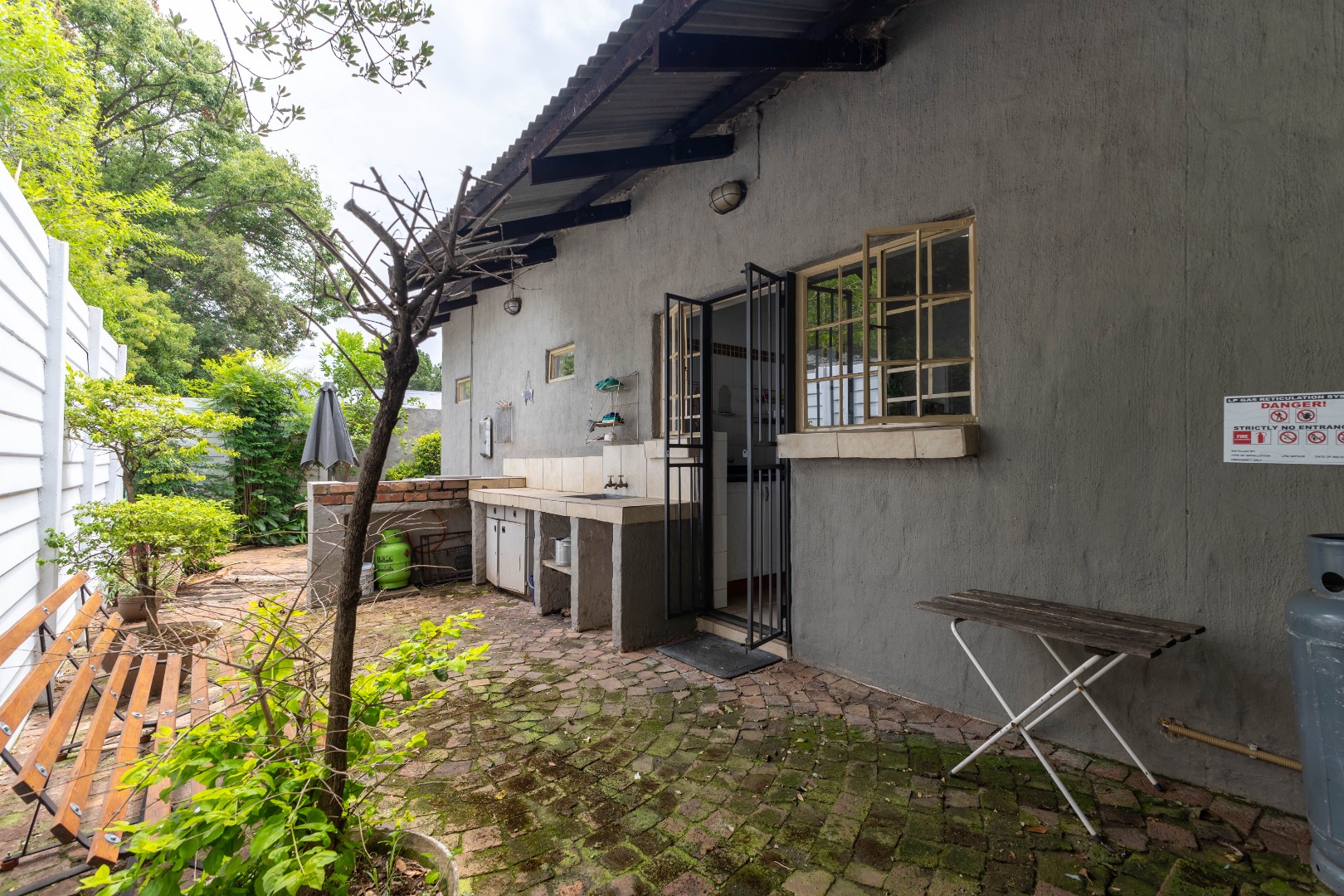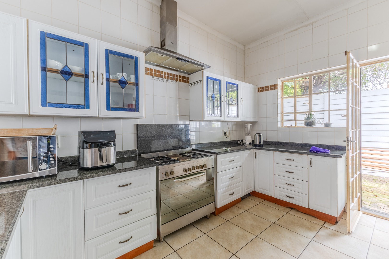 The outdoor area offers a swimming pool, well-maintained garden, outdoor braai area, outdoor kitchen, and a Wendy house, making the home perfect for families and entertainers alike.