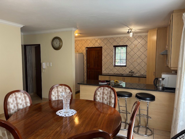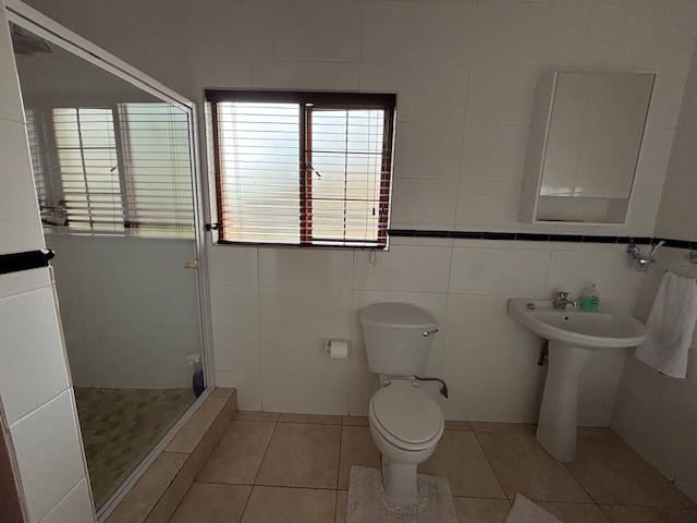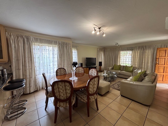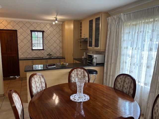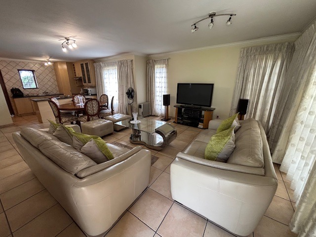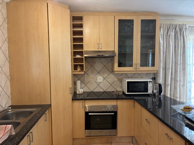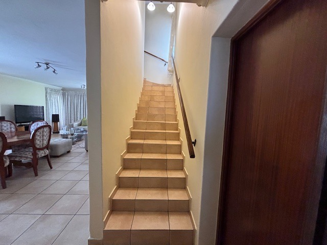 Downstairs you’ll find a guest toilet, an automated garage, plenty of cupboard space, and a lovely kitchen equipped with an oven and electric hob. The open-plan kitchen, dining, and lounge area flows seamlessly onto the braai patio—perfect for entertaining.