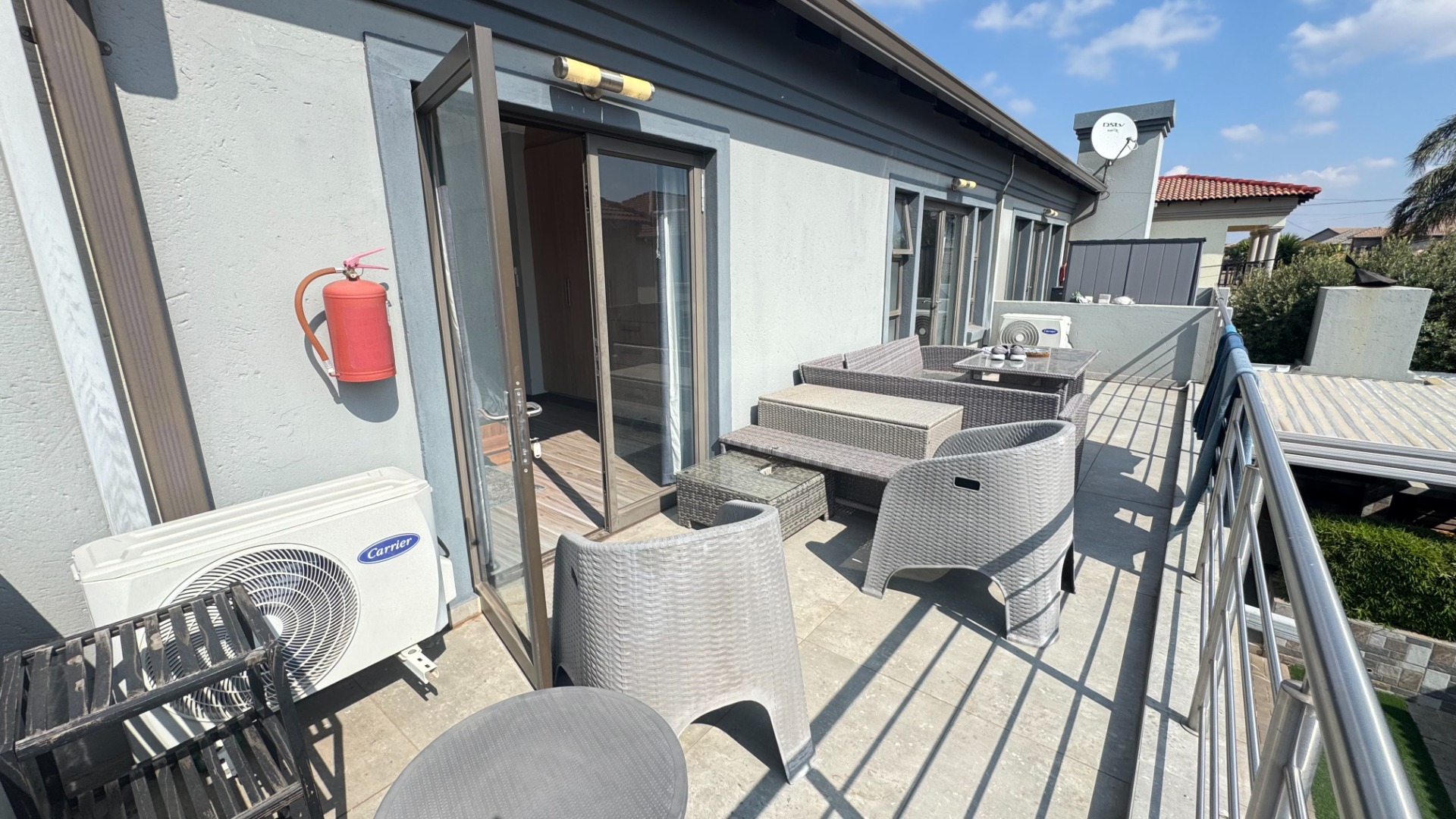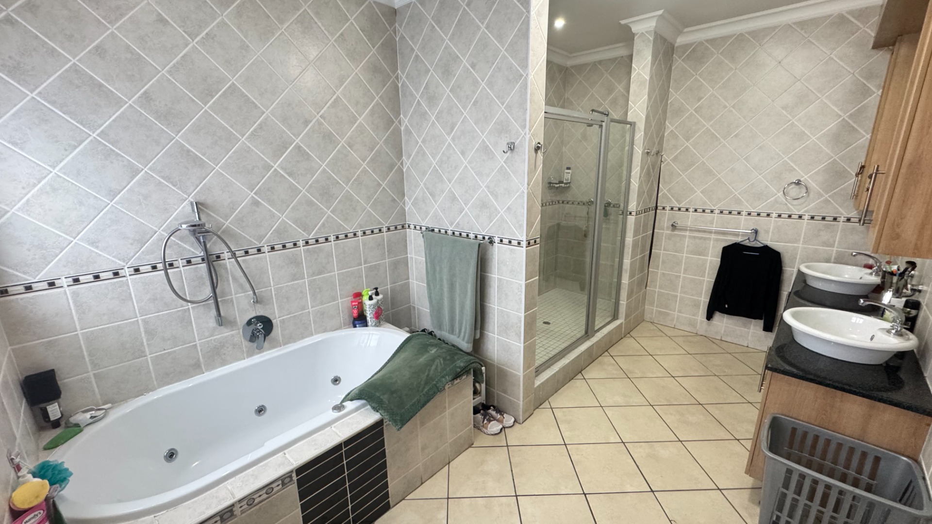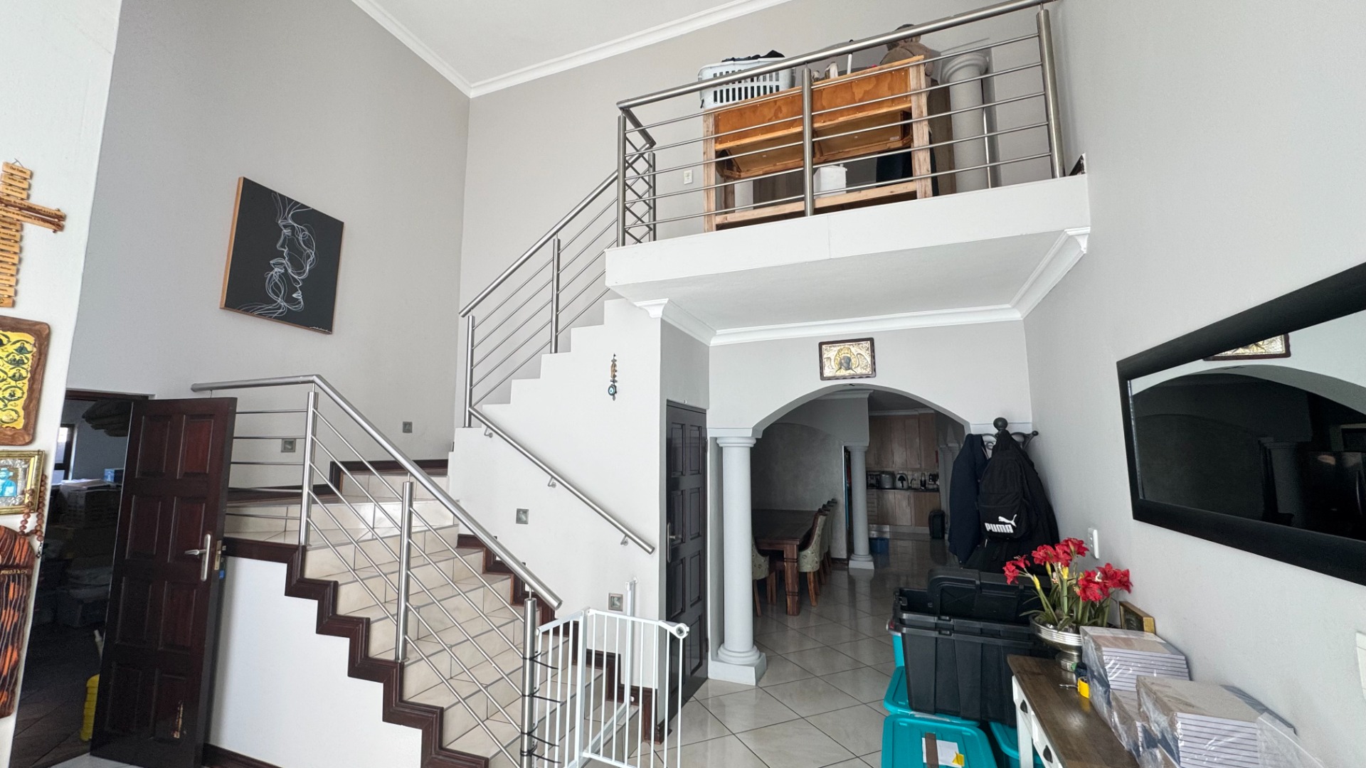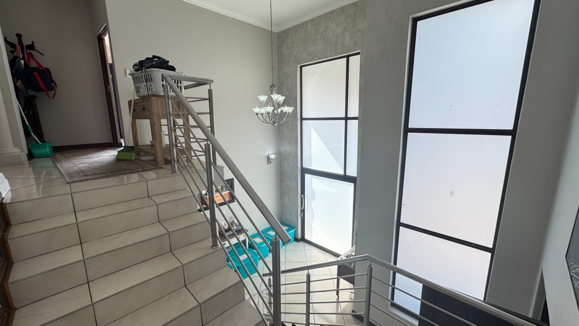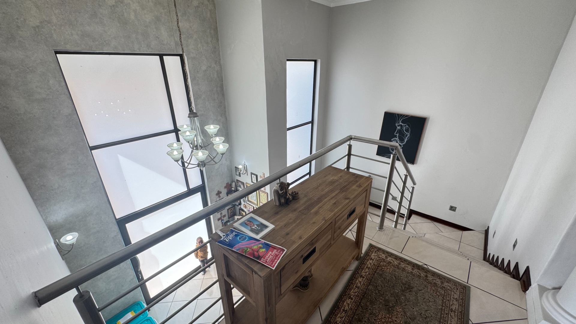 Discover this modern and spacious 4-bedroom, 4.5-bathroom home available for rent in a secure estate in Montana, Pretoria. This two-story residence boasts a contemporary grey exterior with architectural pillars and large windows, ensuring abundant natural light. Inside, high ceilings and tiled flooring create an airy ambiance, complemented by a sleek staircase with stainless steel railings. The property features two lounges, a dining room, and a well-appointed kitchen with ample storage, a large island, granite countertops, and a pantry. Designed for family living, this home includes four en-suite bathrooms and a guest toilet. Enjoy outdoor living with a private patio and a dedicated braai room. The property is pet-friendly and comes equipped with a double garage and four additional parking spaces, alongside a paved driveway. Situated in the desirable Montana suburb, this estate offers a tranquil yet connected lifestyle. Residents benefit from robust security features including 24-hour security, CCTV, an access gate, security post, electric fencing, and an intercom system, ensuring peace of mind. The home is also fibre-ready and includes a battery inverter for enhanced convenience. Key Features: * 4 Bedrooms, 4.5 Bathrooms (4 En-suite) * 2 Lounges, Dining Room, Modern Kitchen with Pantry * Study, Balcony, Patio, Braai Room * Double Garage & 4 Parking Spaces * Secure Estate with 24-hour Security, CCTV, Electric Fencing * Fibre-Ready & Battery Inverter * Pet-Friendly * Erf Size: 600 sqm, Floor Size: 400 sqm