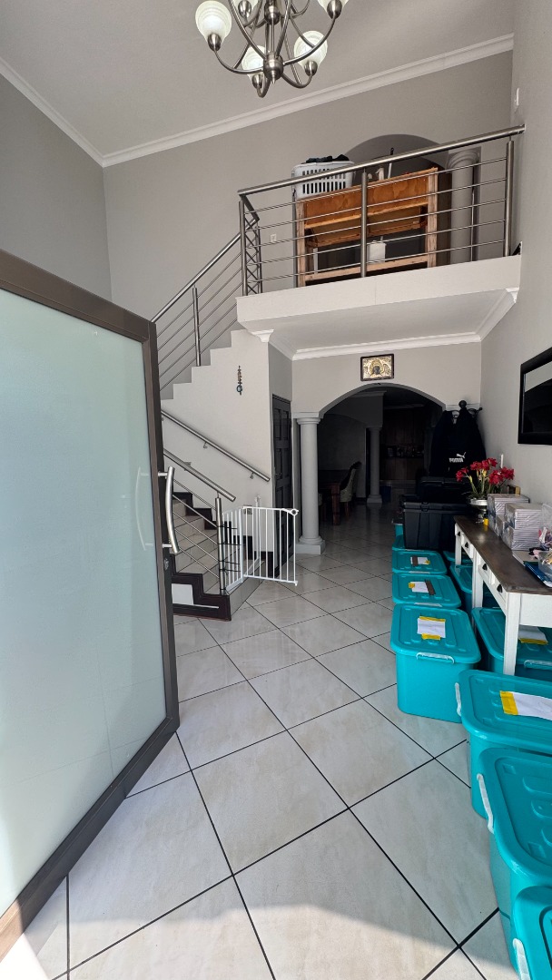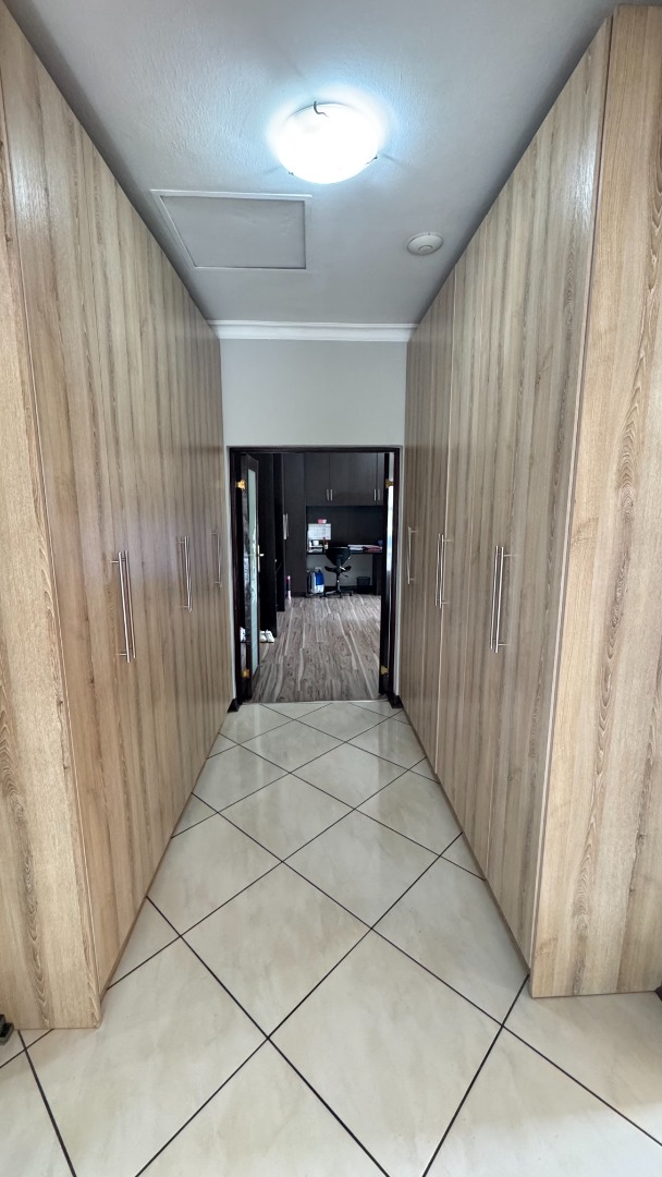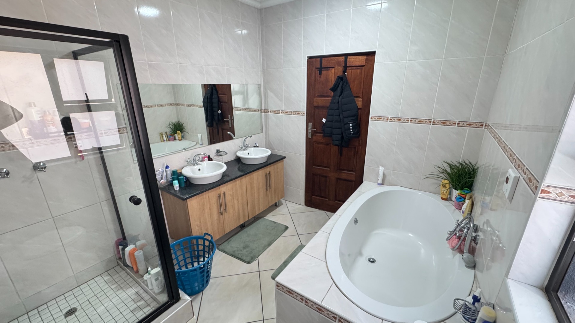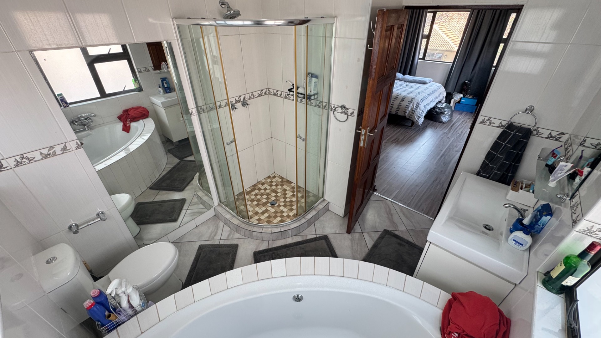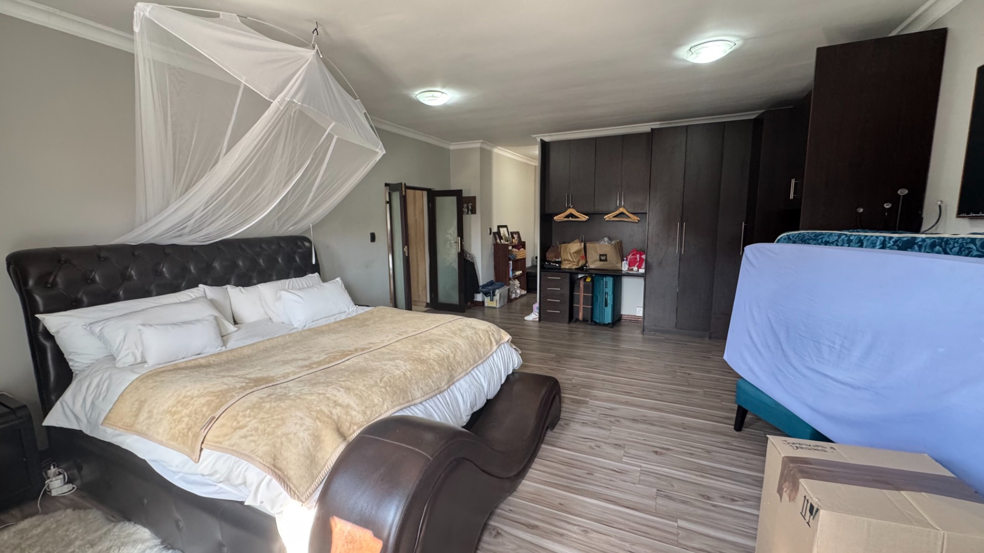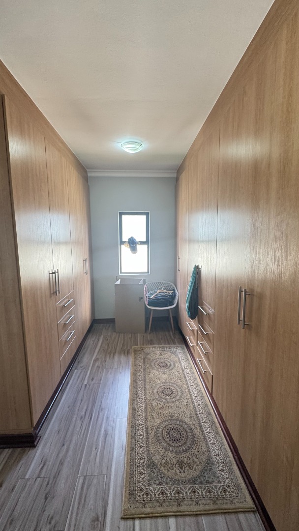 Discover this modern and spacious 4-bedroom, 4.5-bathroom home available for rent in a secure estate in Montana, Pretoria. This two-story residence boasts a contemporary grey exterior with architectural pillars and large windows, ensuring abundant natural light. Inside, high ceilings and tiled flooring create an airy ambiance, complemented by a sleek staircase with stainless steel railings. The property features two lounges, a dining room, and a well-appointed kitchen with ample storage, a large island, granite countertops, and a pantry. Designed for family living, this home includes four en-suite bathrooms and a guest toilet. Enjoy outdoor living with a private patio and a dedicated braai room. The property is pet-friendly and comes equipped with a double garage and four additional parking spaces, alongside a paved driveway. Situated in the desirable Montana suburb, this estate offers a tranquil yet connected lifestyle. Residents benefit from robust security features including 24-hour security, CCTV, an access gate, security post, electric fencing, and an intercom system, ensuring peace of mind. The home is also fibre-ready and includes a battery inverter for enhanced convenience. Key Features: * 4 Bedrooms, 4.5 Bathrooms (4 En-suite) * 2 Lounges, Dining Room, Modern Kitchen with Pantry * Study, Balcony, Patio, Braai Room * Double Garage & 4 Parking Spaces * Secure Estate with 24-hour Security, CCTV, Electric Fencing * Fibre-Ready & Battery Inverter * Pet-Friendly * Erf Size: 600 sqm, Floor Size: 400 sqm