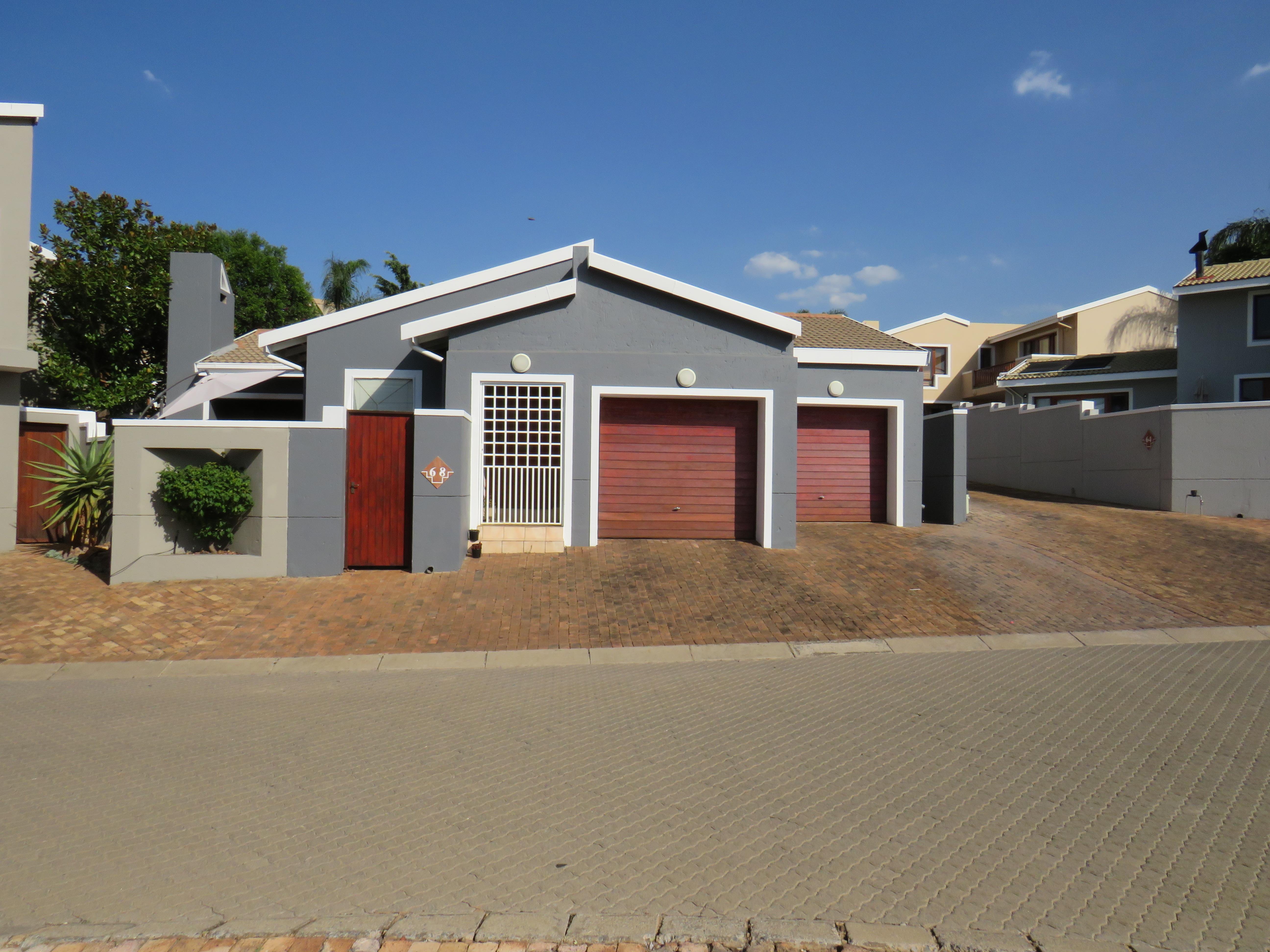 RE/MAX INFOGLOBE HAS AN EXCLUSIVE RENTAL MANDATE ON THE TOWNHOUSE. Perfect, spacious and neat. The single storey townhouse is available from 1 MARCH 2026. Excellent security ( security doors, alarm system, trellidor doors, burglar bars ). Spacious single storey townhouse with 2 bedrooms and 2 bathrooms to let in the popular 24/7 Waterkloof Vallei Security Complex in the heart of Monument Park. Perfect for Diplomats or Members of International Organisations or South African Citizens. The huge main bedroom with a full en-suite bathroom ( shower, bath, toilet and basin ) and lots of cupboards. Beautiful spacious open-plan kitchen with a pantry and space for all your appliances. Open- plan dining room and lounge/TV room with double wooden doors leading to the covered patio with a built-in braai. Two ( 2 ) garages with automated doors. The second garage can also be used as a third bedroom or private scullery. Small garden very easy to maintain. The townhouse is also pet friendly ( 2 small dogs are allowed ). Easy access to all the main highways R21 and N1, the CBD of Pretoria and all the Embassies. Close to the Monument Park Primary School ( 2km ) and the Monument Park Shopping Mall. Please call me to make an appointment to view this beautiful single storey townhouse. Waiting for your call or email/Whatsapp message.