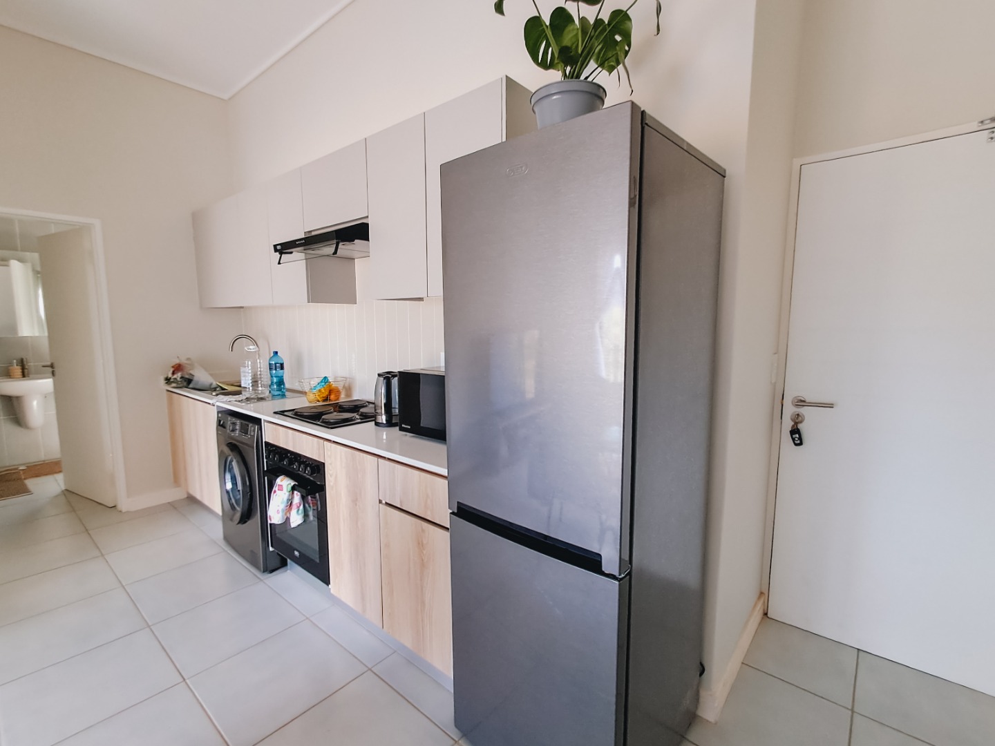 Discover modern living in this inviting 1-bedroom, 1-bathroom apartment, perfectly designed for comfort and convenience. Spanning 49 square metres, this residence offers a thoughtfully appointed layout. The contemporary kitchen is a highlight, featuring sleek light cabinetry, wood-look accents, and a suite of integrated appliances including a washing machine, oven, hob, microwave, and a full-size refrigerator, ensuring both style and functionality. Durable tiled flooring extends throughout the apartment, creating a clean and cohesive aesthetic in every room. The comfortable bedroom boasts a spacious wood-look wardrobe for ample storage and a large window that invites abundant natural light. The modern bathroom is finished with elegant grey tiling and features a glass-enclosed shower, providing a refreshing and practical space. Step out onto your private balcony, offering views over the surrounding area and covered parking, ideal for enjoying a morning coffee or evening breeze. This apartment is designed for a convenient lock-up-and-go lifestyle, appealing to single professionals or couples seeking comfort and ease in Pretoria. Located in the desirable Mooikloof Manor, a secure complex in Pretoria, this property offers peace of mind with its robust estate security, including an access gate and security post. The well-maintained, paved parking area includes a dedicated bay for your vehicle, providing protection. Enjoy the benefits of metropolitan living within a cul-de-sac setting, offering a tranquil retreat while remaining connected to city amenities. The estate also offers aquatic activities, enhancing the overall lifestyle appeal for residents. Key Features: * 1 Bedroom, 1 Bathroom Apartment * Modern Kitchen with Integrated Appliances * Private Balcony Access * Secure Estate Living * Dedicated Parking Bay * Contemporary Tiled Flooring * Access to Aquatic Activities * Ideal Lock-Up-and-Go Residence