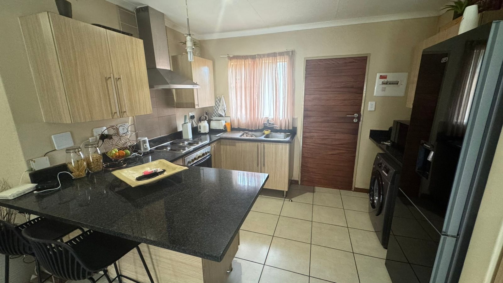 Hey there! Looking for a comfy spot to rent in Pretoria? This lovely 2-bedroom, 1-bathroom home in Mooikloof Ridge might be just what you need. Spanning 106 sqm, it offers a super relaxed open-plan living space with easy-to-maintain tiled flooring throughout. The modern kitchen is a real highlight, featuring light wood cabinets and sleek dark granite countertops – perfect for your culinary adventures. Both bedrooms come with handy built-in wardrobes, and you'll find a cozy lounge and family/TV room for all your chill-out moments. Outside, you get your own private garden, plus the estate boasts a fantastic communal pool for those hot Pretoria days. With two garages, parking is a breeze. You can truly relax here, thanks to 24-hour security, an access gate, and security gates on the sliding doors. And yes, it's fibre-ready, so staying connected is super easy! This popular security estate offers a peaceful and convenient lifestyle in Pretoria.